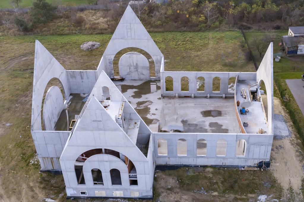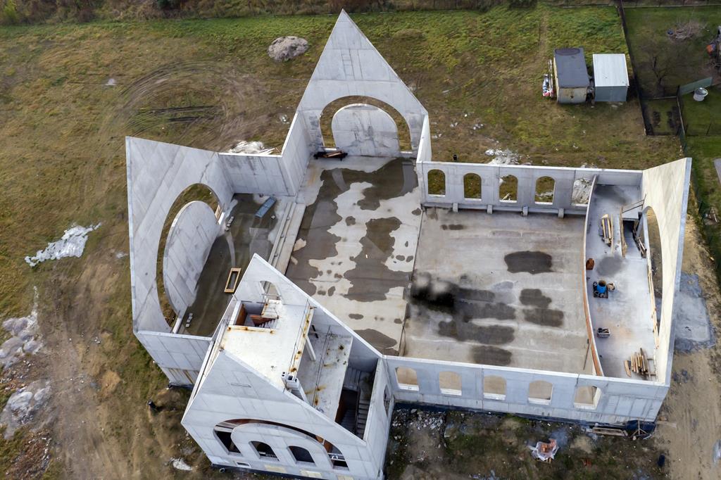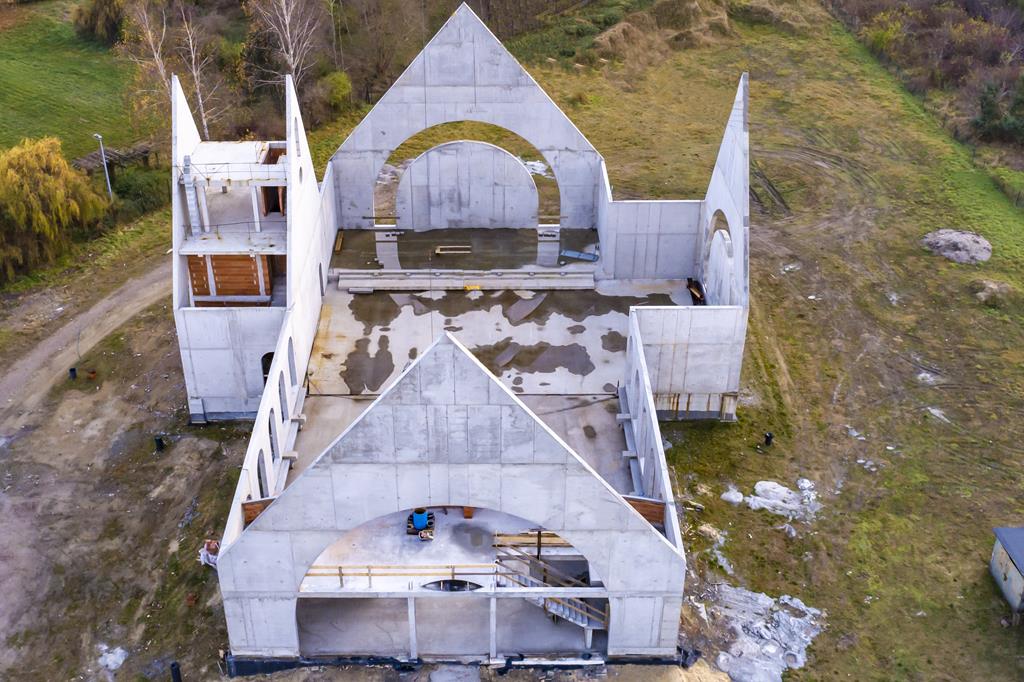 28 października zakończył się kolejny etap budowy, zostały wzniesione mury nowej światyni. Oto kilka aktualnych zdjęć z lotu ptaka
