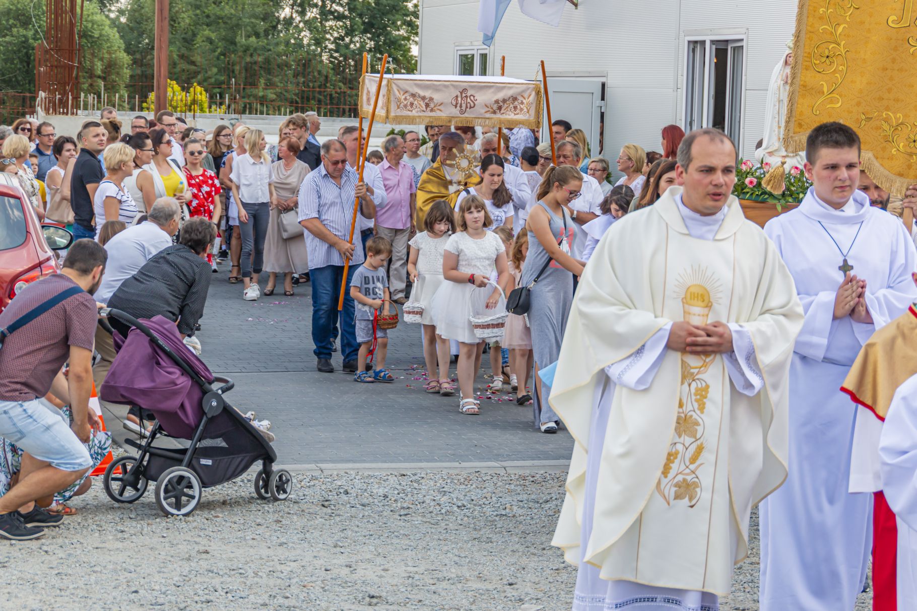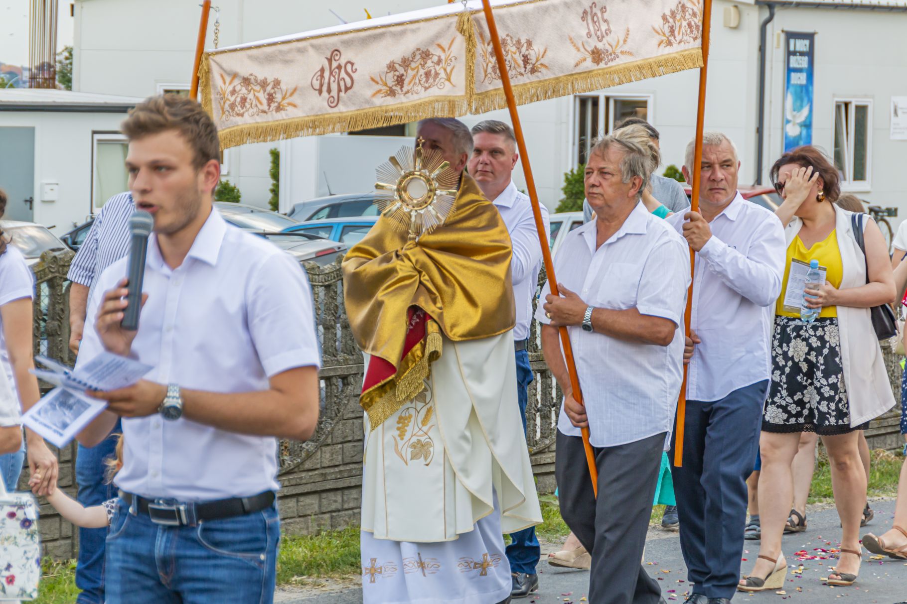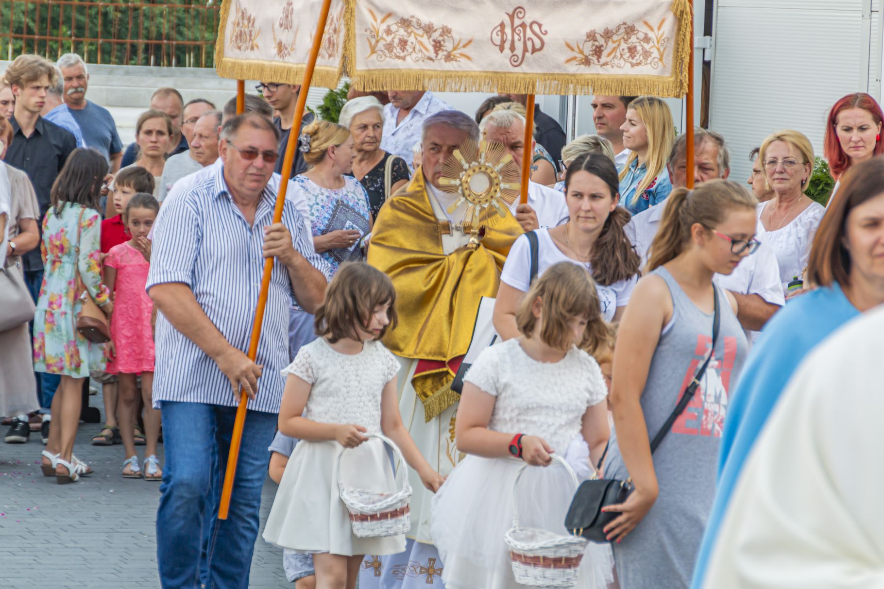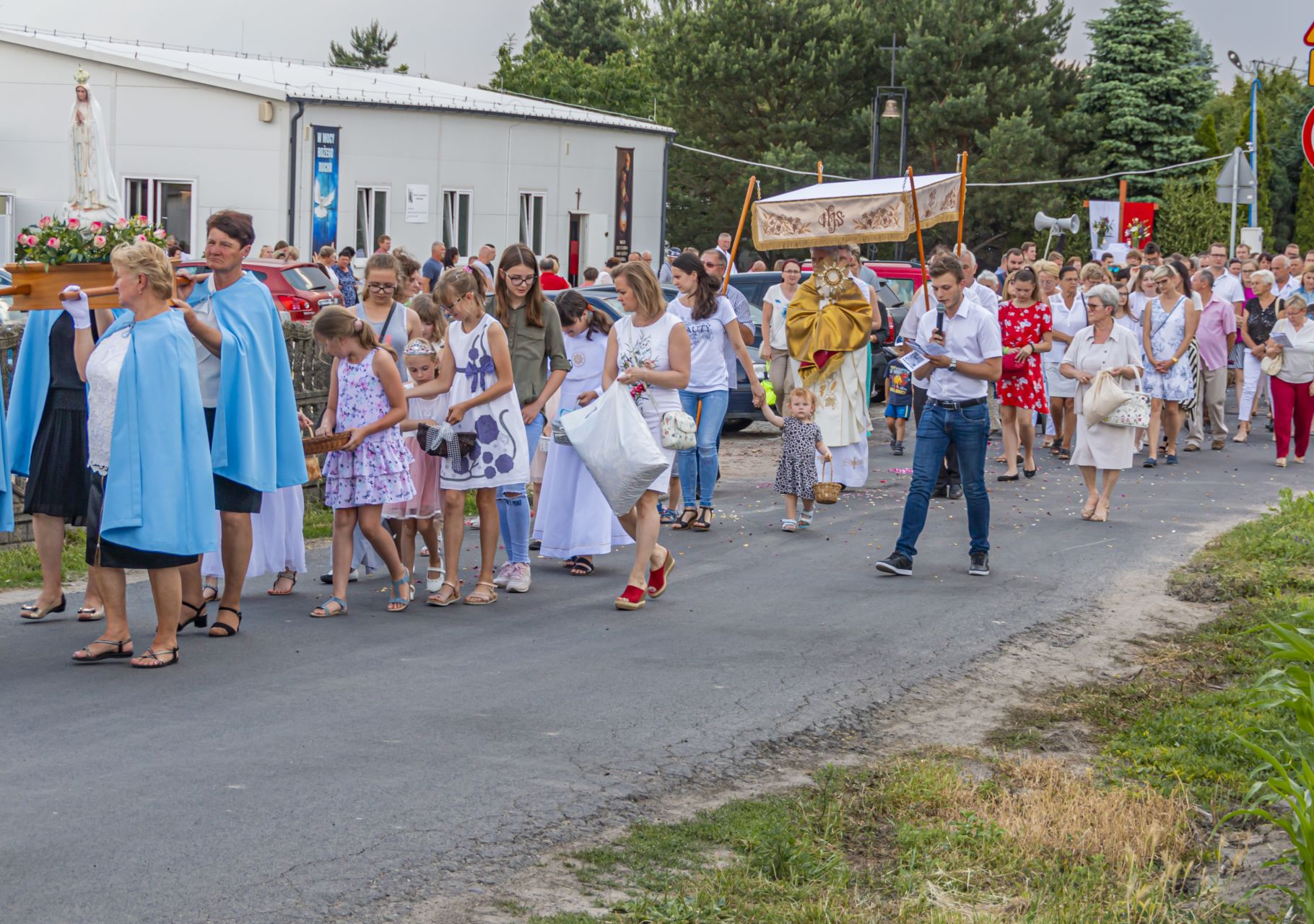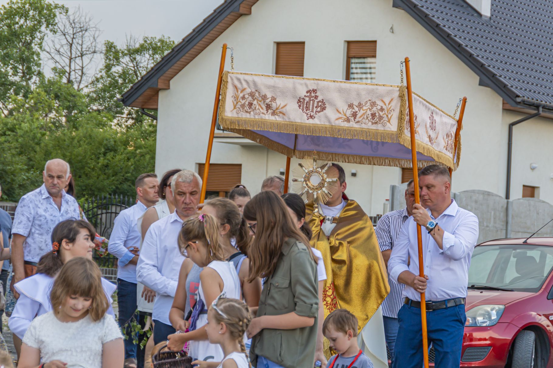 Uroczystość Najświętszego Ciała i Krwi Pańskiej. Raz w roku uroczysta procesja wędruje ulicami naszych parafii z Najświętszym Sakramentem. Wszystko po to, by wyznać wiarę w realną obecność Boga w małym kawałku chleba. Po Mszy św. o godz. 16.00 wyruszyła procesja do czterech ołtarzy. Szliśmy śpiewając pieśni Eucharystyczne i modląc się o błogosławieństwo Boże dla rodzin naszej parafii. . Dziękujemy wszystkim, którzy zaangażowali się w przygotowanie procesji.