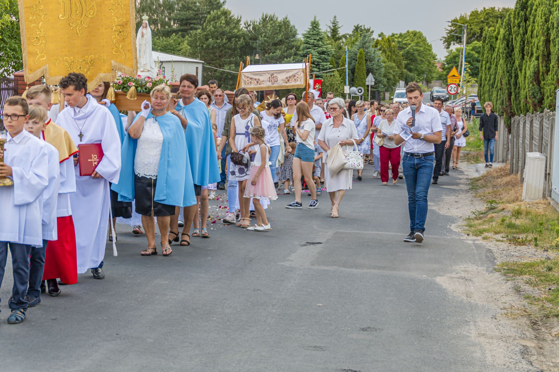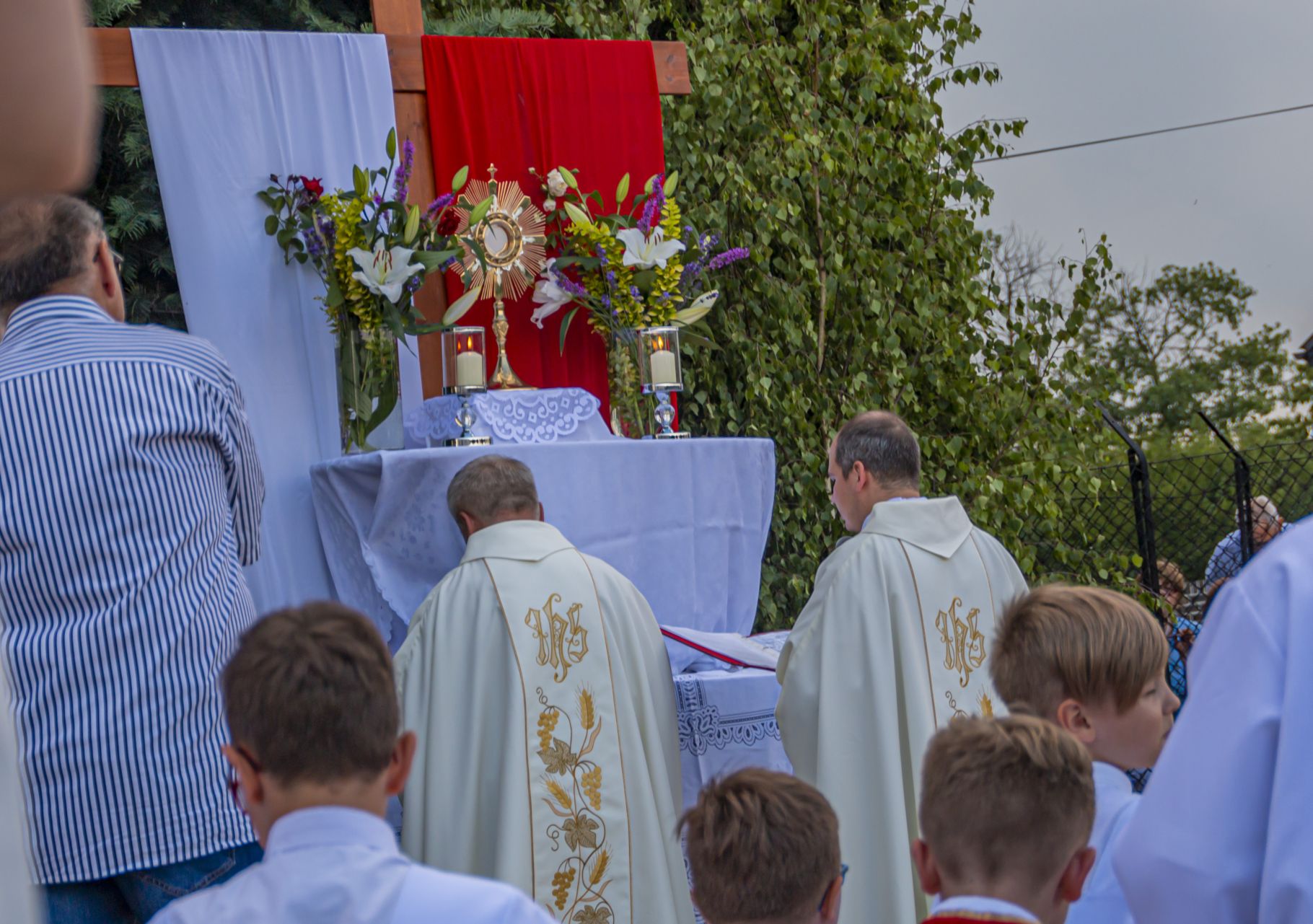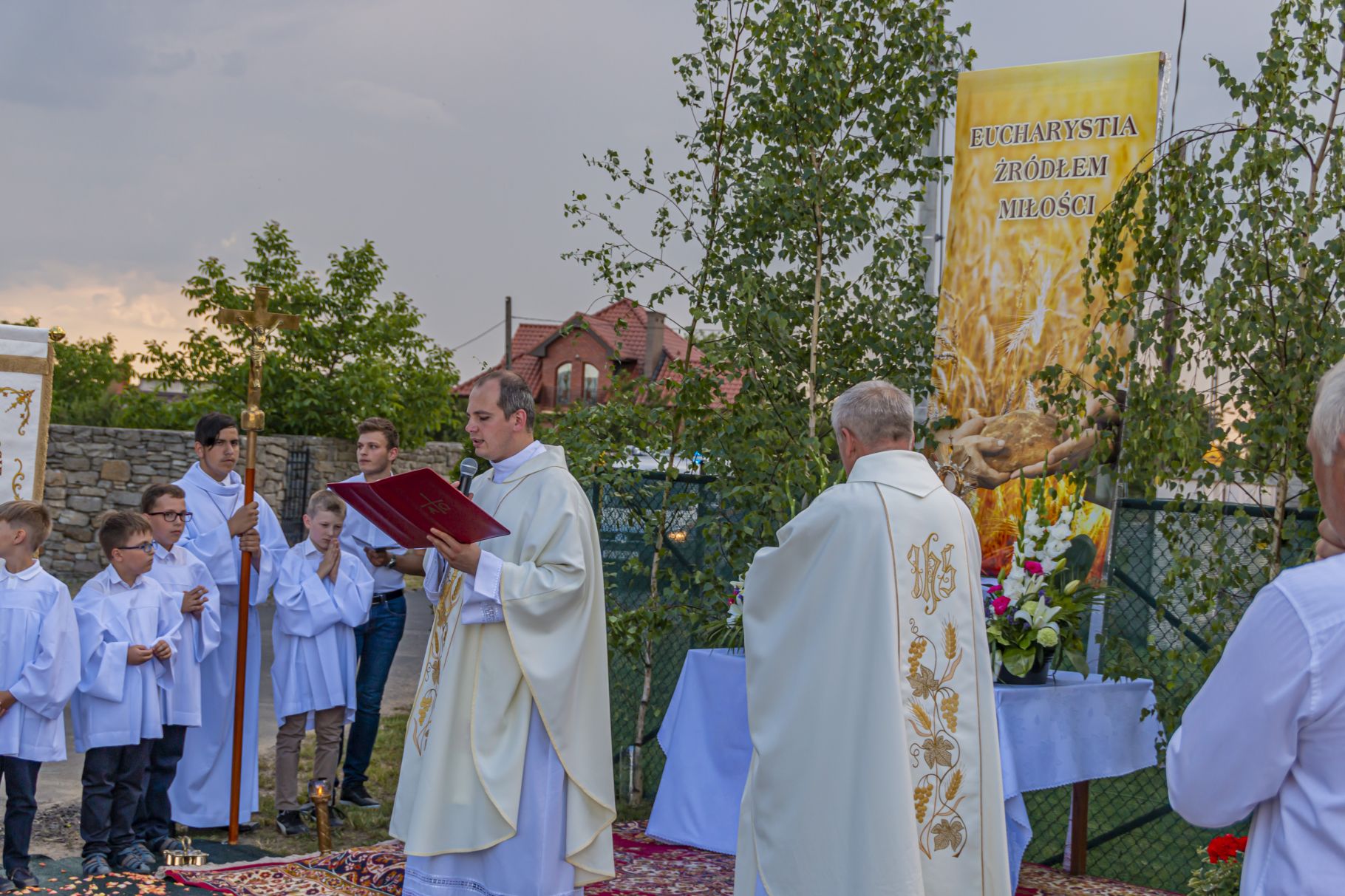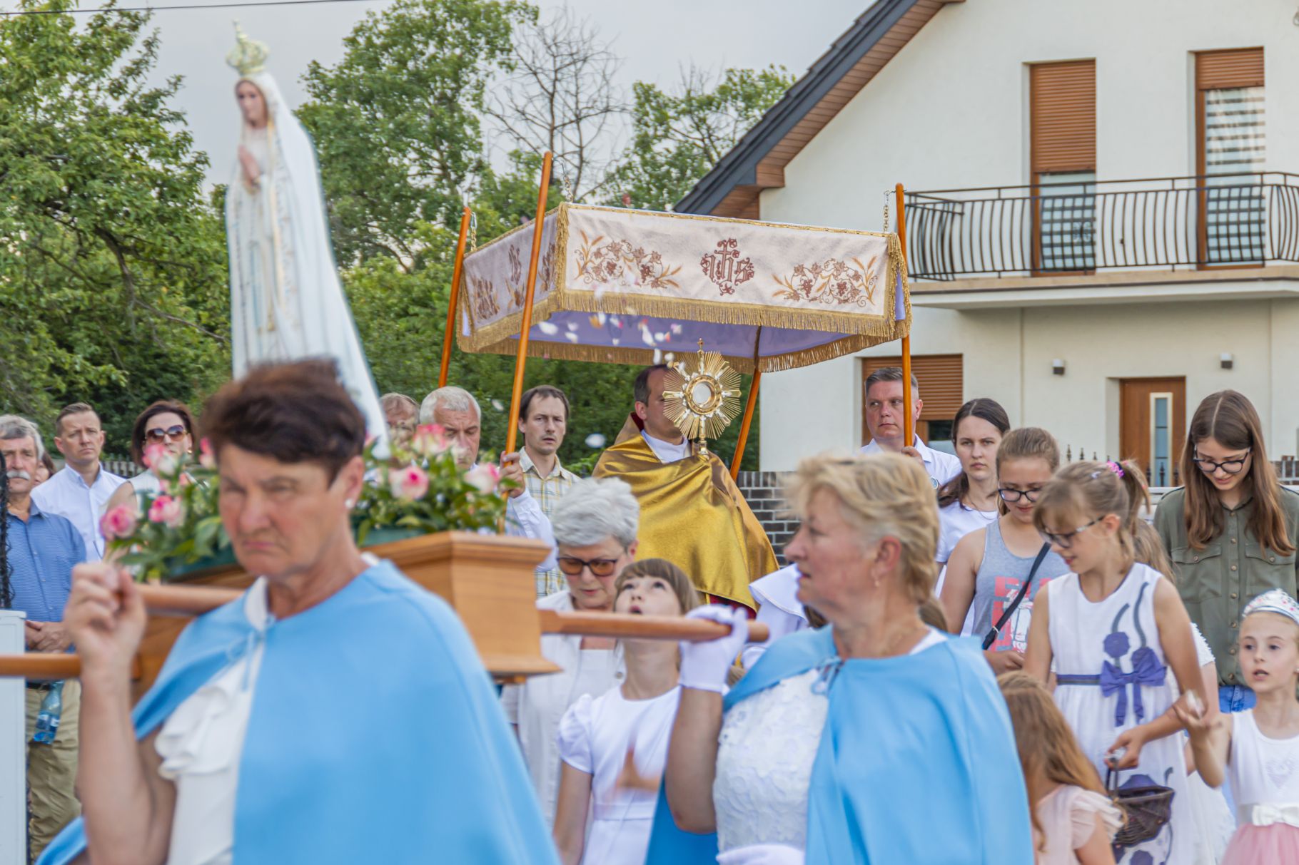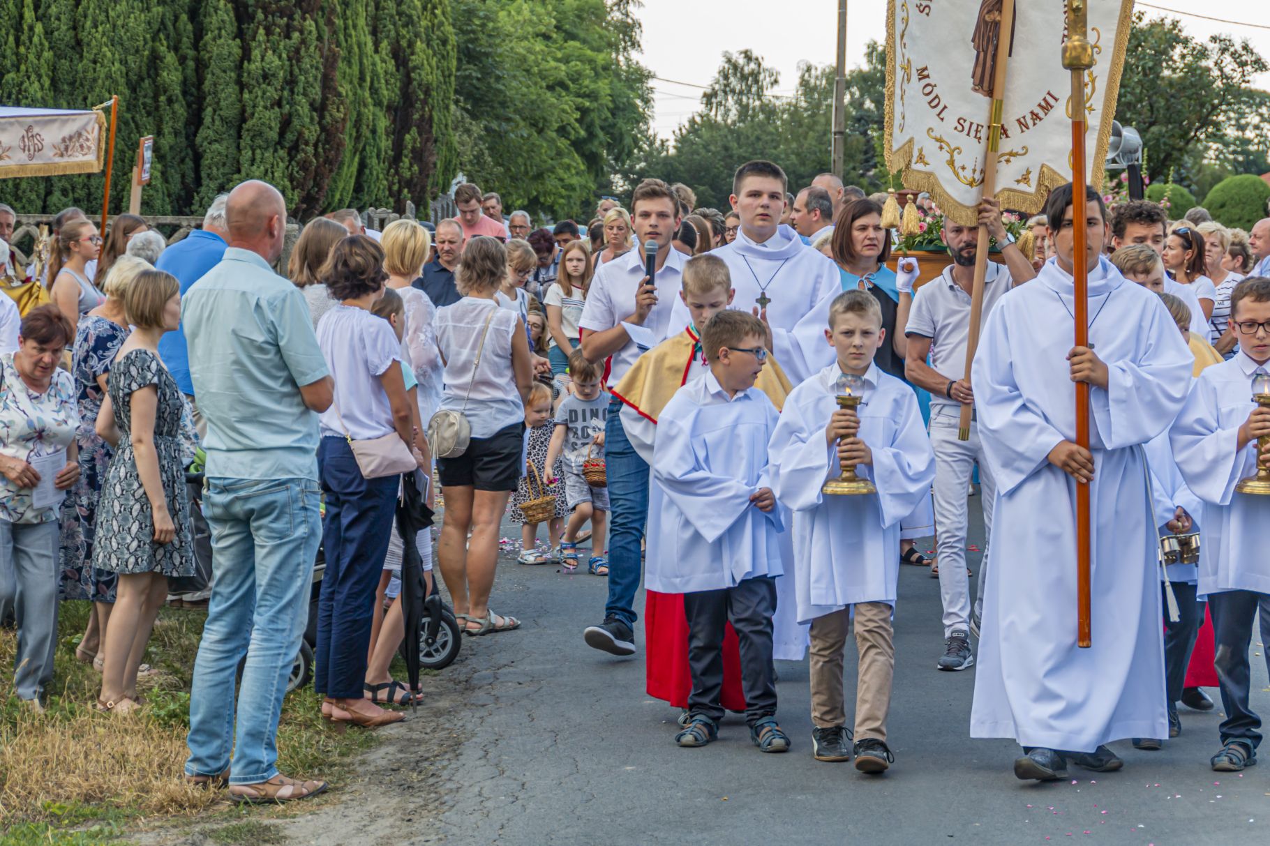 Uroczystość Najświętszego Ciała i Krwi Pańskiej. Raz w roku uroczysta procesja wędruje ulicami naszych parafii z Najświętszym Sakramentem. Wszystko po to, by wyznać wiarę w realną obecność Boga w małym kawałku chleba. Po Mszy św. o godz. 16.00 wyruszyła procesja do czterech ołtarzy. Szliśmy śpiewając pieśni Eucharystyczne i modląc się o błogosławieństwo Boże dla rodzin naszej parafii. . Dziękujemy wszystkim, którzy zaangażowali się w przygotowanie procesji.