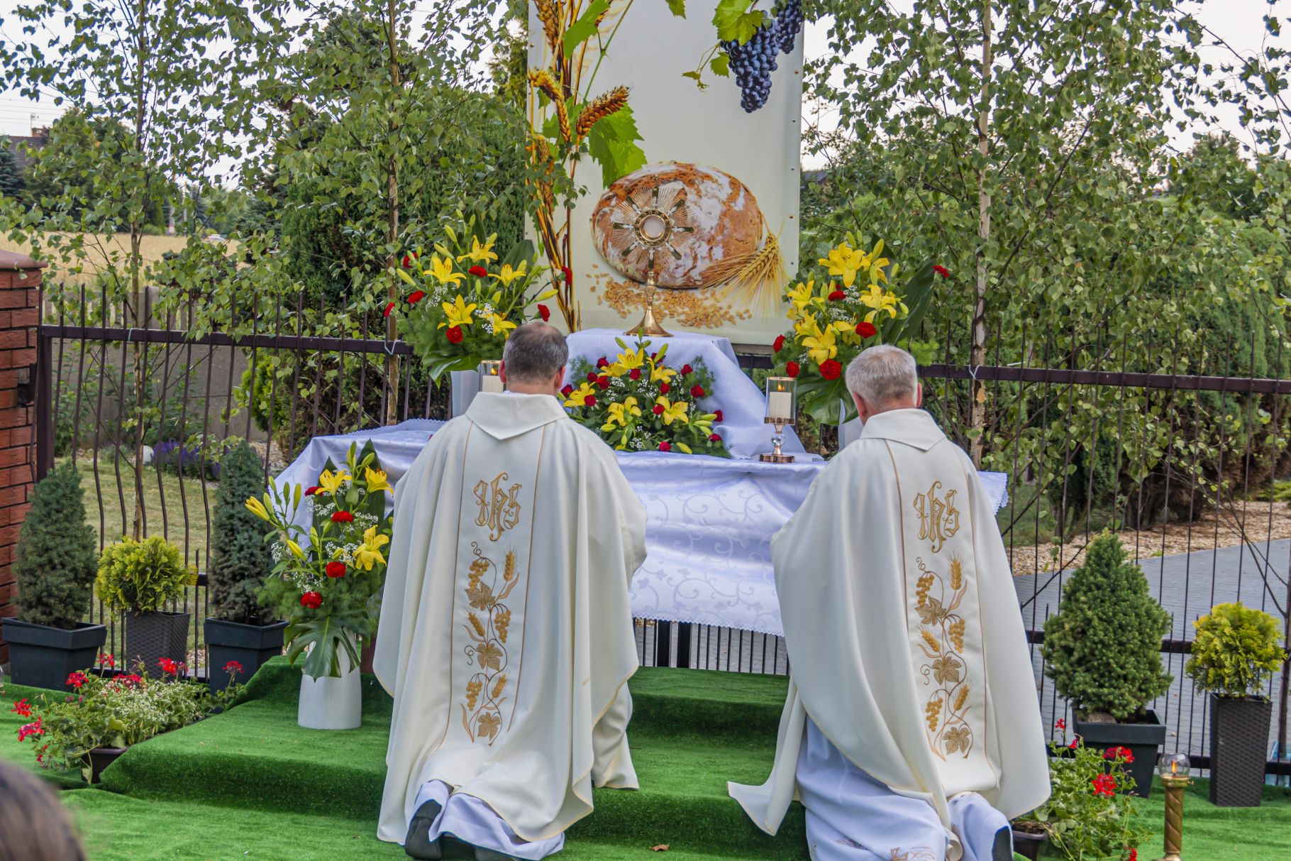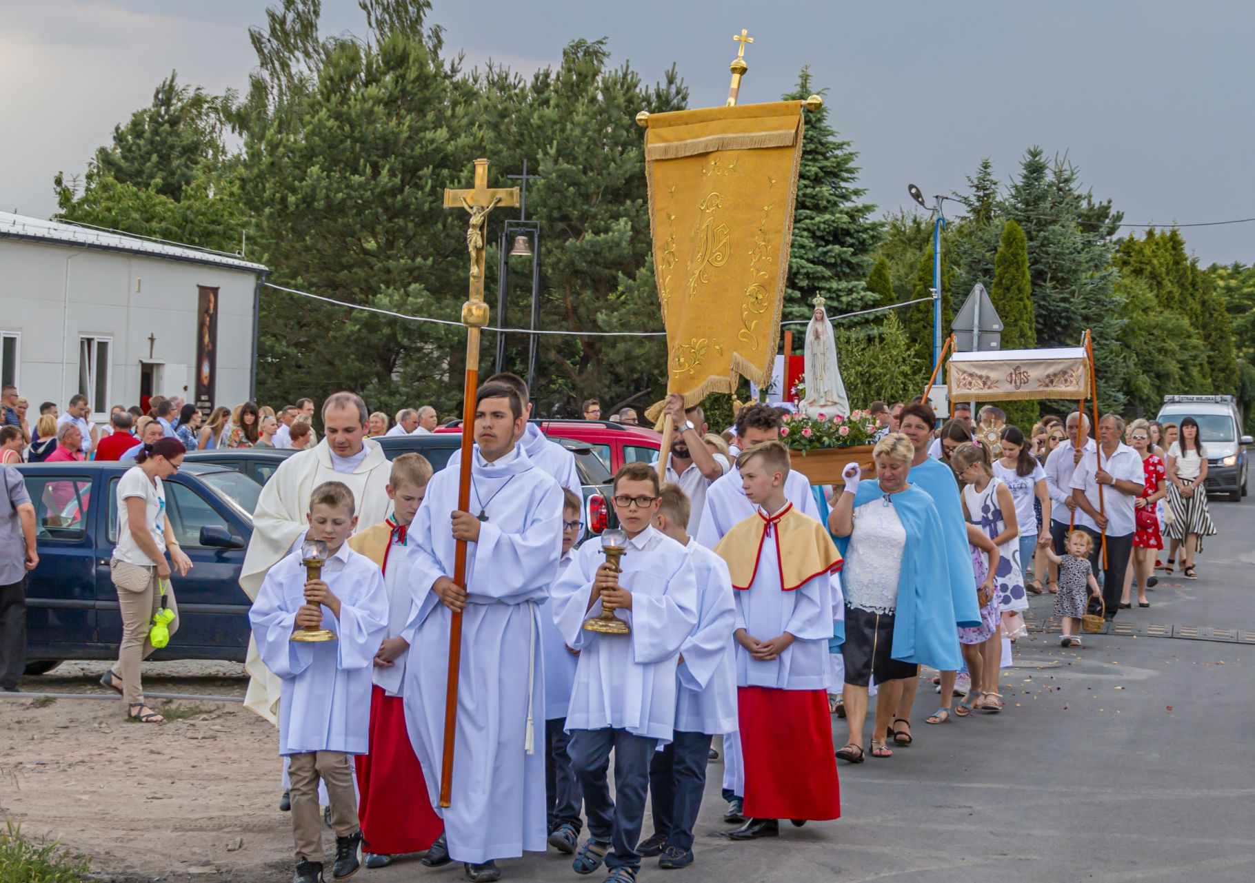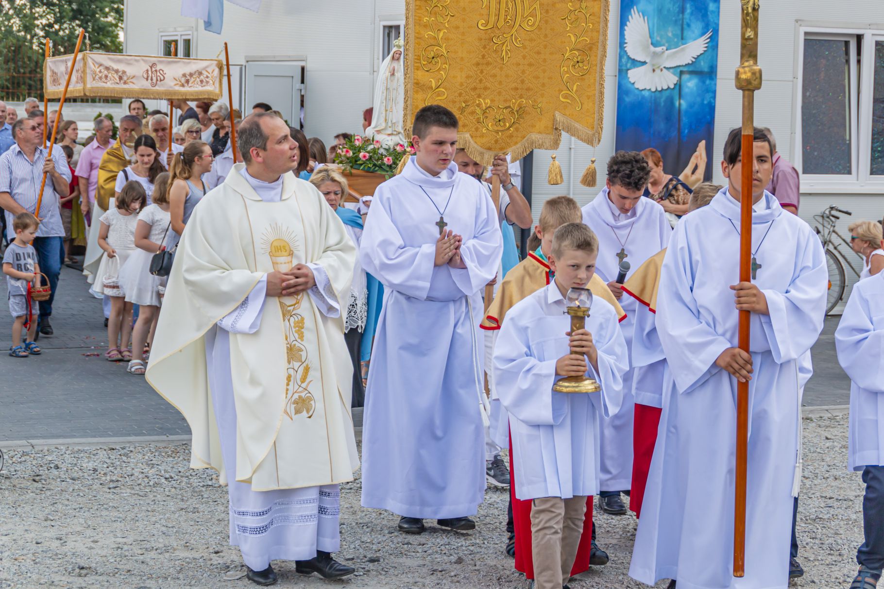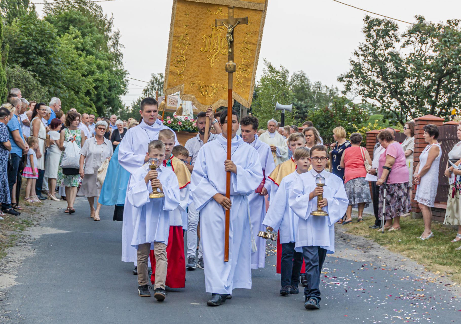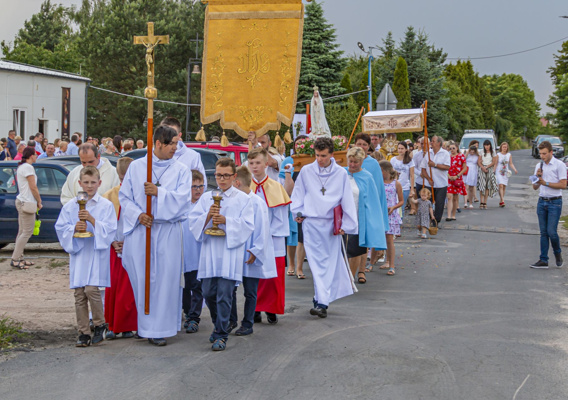 Uroczystość Najświętszego Ciała i Krwi Pańskiej. Raz w roku uroczysta procesja wędruje ulicami naszych parafii z Najświętszym Sakramentem. Wszystko po to, by wyznać wiarę w realną obecność Boga w małym kawałku chleba. Po Mszy św. o godz. 16.00 wyruszyła procesja do czterech ołtarzy. Szliśmy śpiewając pieśni Eucharystyczne i modląc się o błogosławieństwo Boże dla rodzin naszej parafii. . Dziękujemy wszystkim, którzy zaangażowali się w przygotowanie procesji.