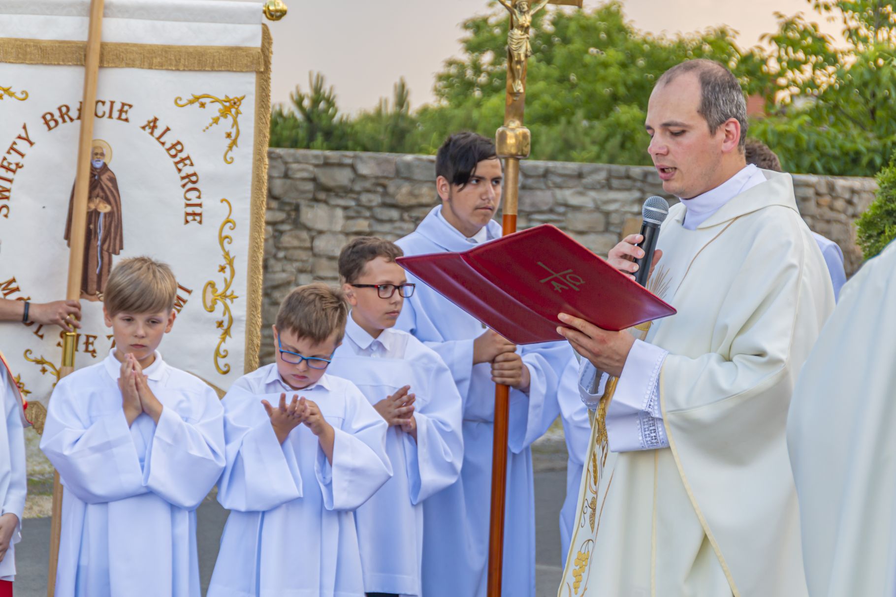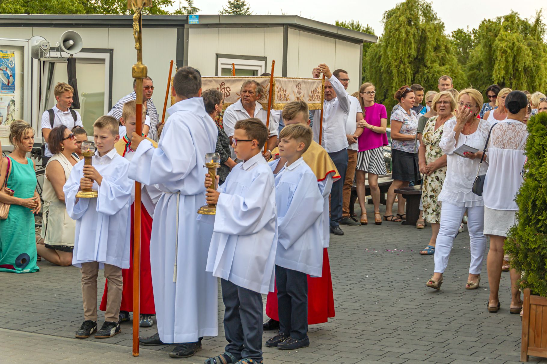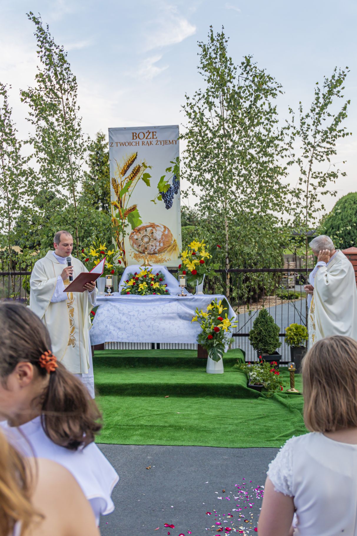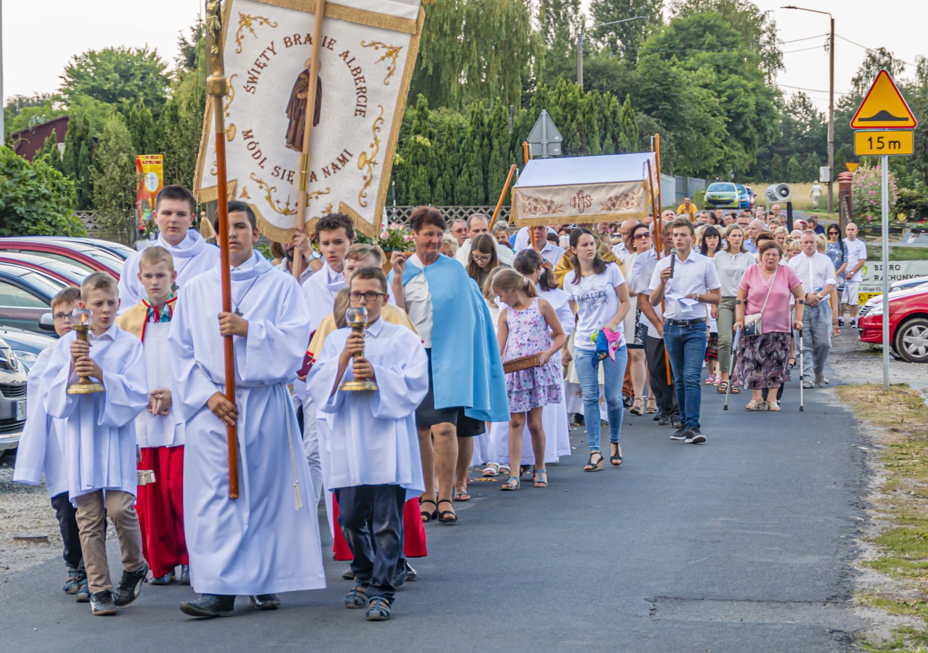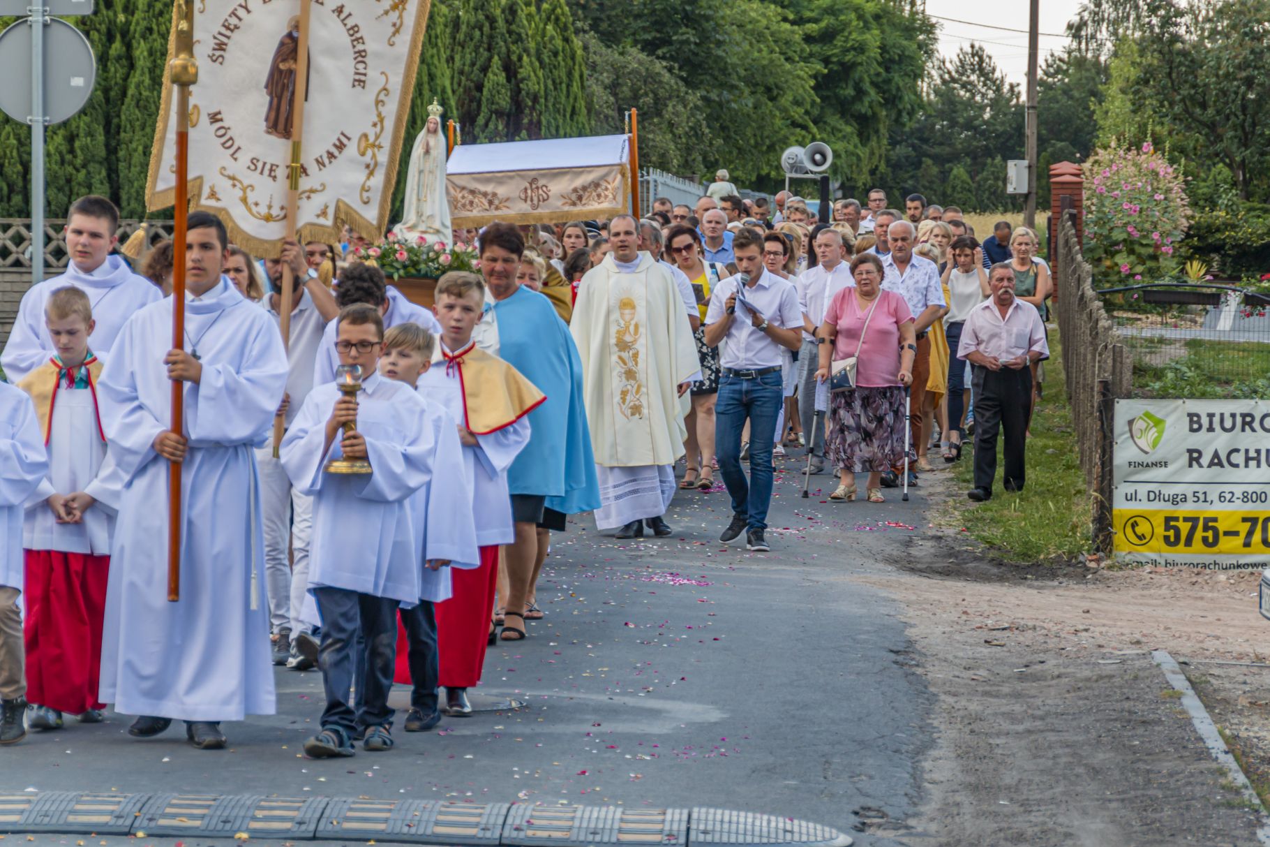Uroczystość Najświętszego Ciała i Krwi Pańskiej. Raz w roku uroczysta procesja wędruje ulicami naszych parafii z Najświętszym Sakramentem. Wszystko po to, by wyznać wiarę w realną obecność Boga w małym kawałku chleba. Po Mszy św. o godz. 16.00 wyruszyła procesja do czterech ołtarzy. Szliśmy śpiewając pieśni Eucharystyczne i modląc się o błogosławieństwo Boże dla rodzin naszej parafii. . Dziękujemy wszystkim, którzy zaangażowali się w przygotowanie procesji.