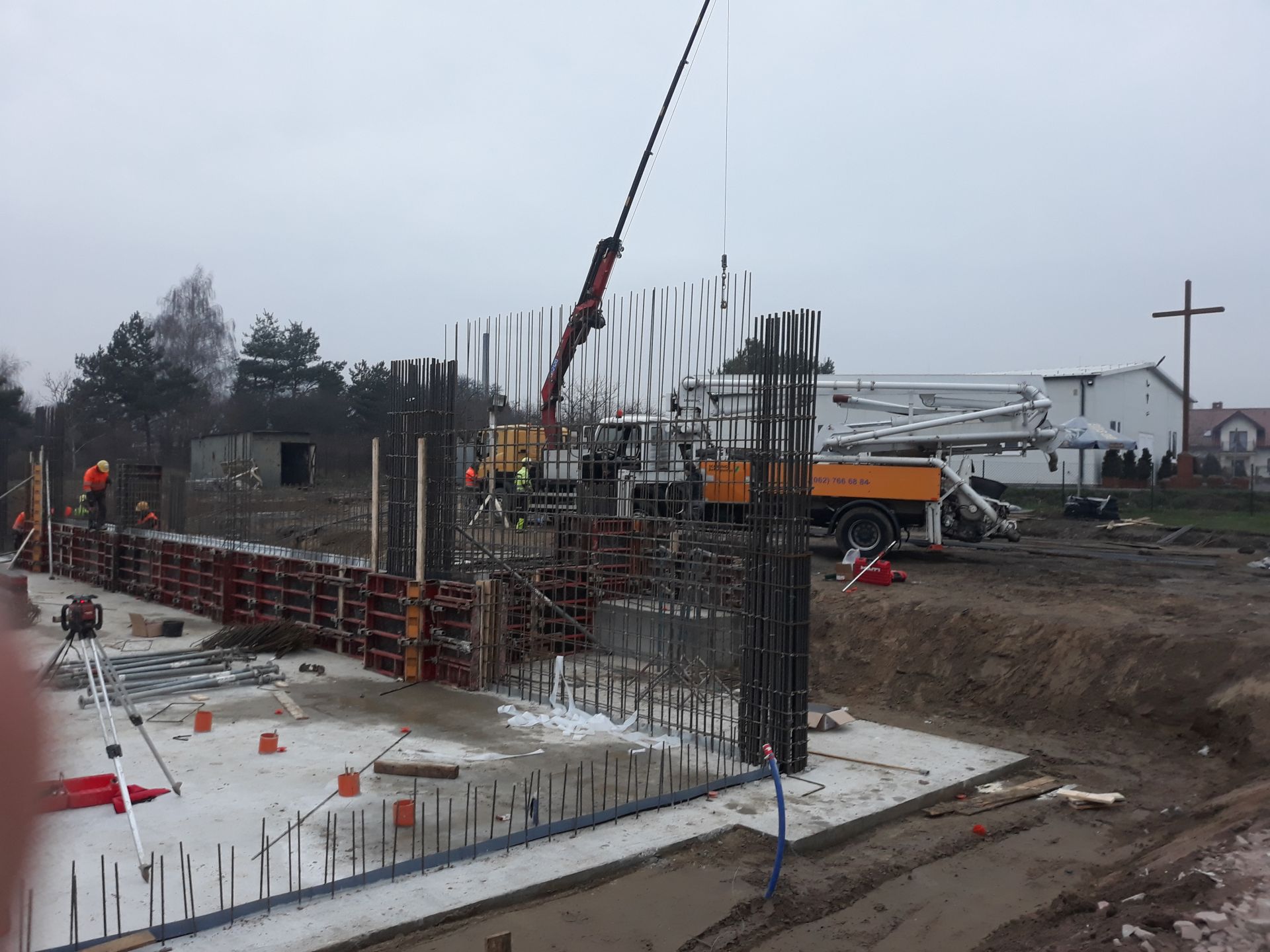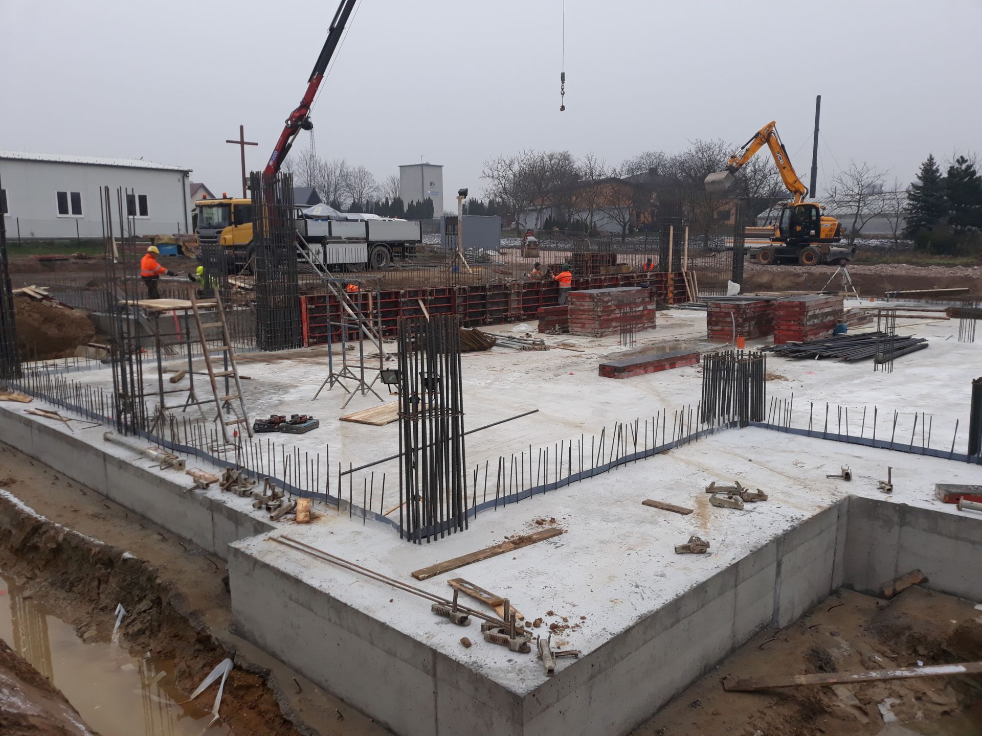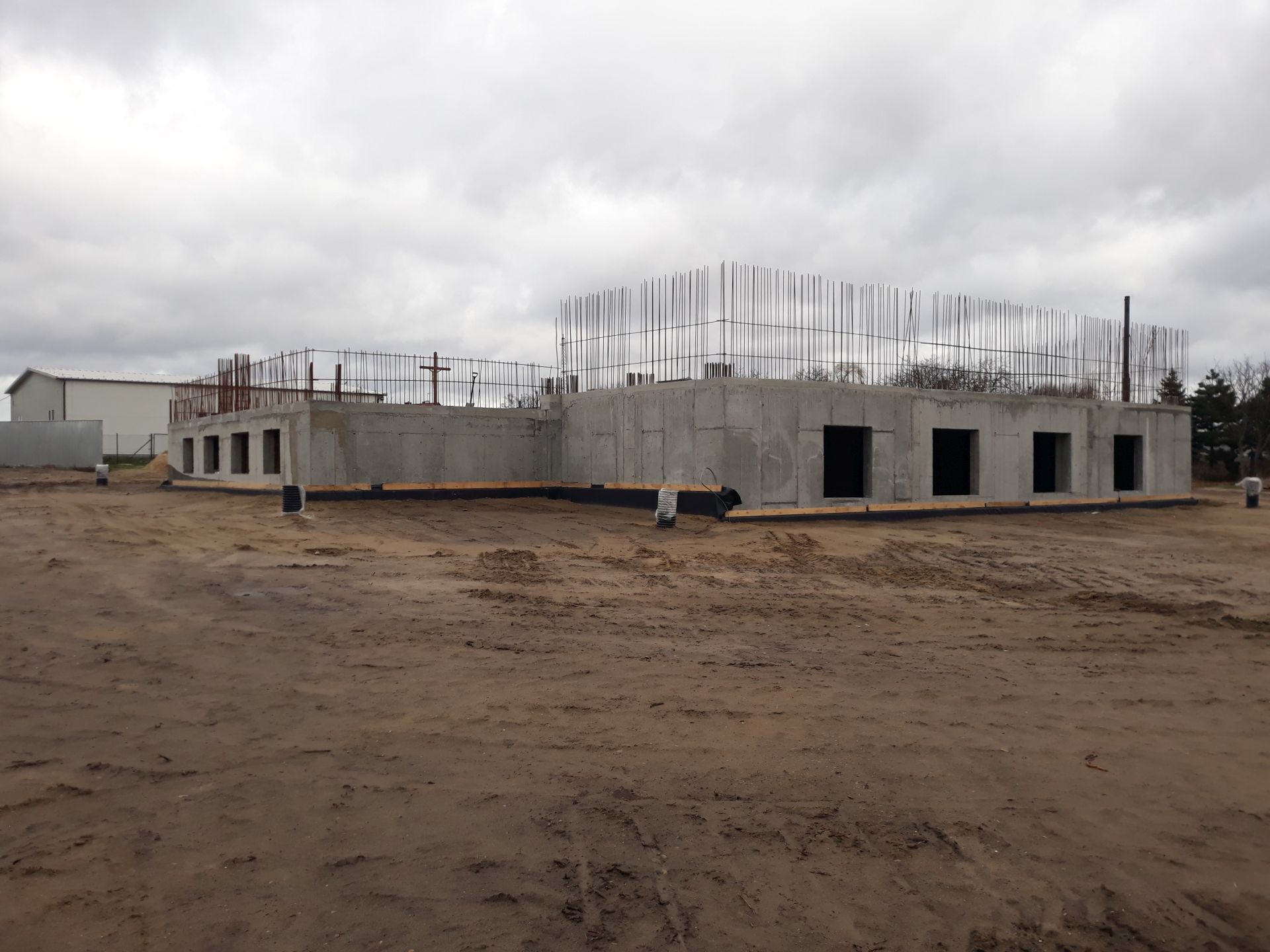 Po bardzo wielu trudnościach związanych z otrzymaniem pozwolenia na budowę 26 listopada 2018 r. rozpoczęła się budowa nowego kościoła. Pierwszy etap budowy objął wykonanie fundamentów, płyty głównej oraz zaplecza użytkowego, na które składają się pomieszczenia gospodarcze, salki oraz sanitariaty, które umieszczone są w podpiwniczonej części kościoła. Wokół budującej się świątyni wykonano także odwodnienie. Ten pierwszy etap budowy naszej świątyni zakończył się 8 marca 2019 r.