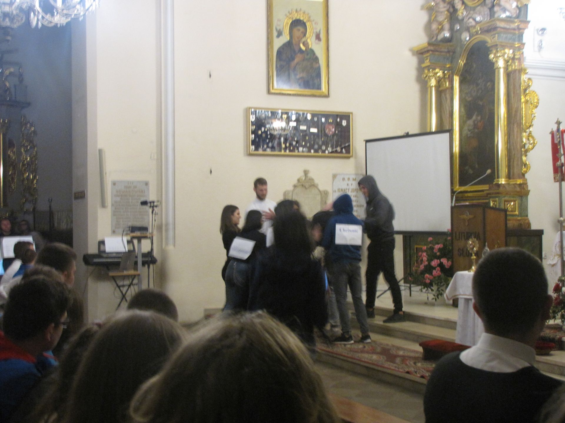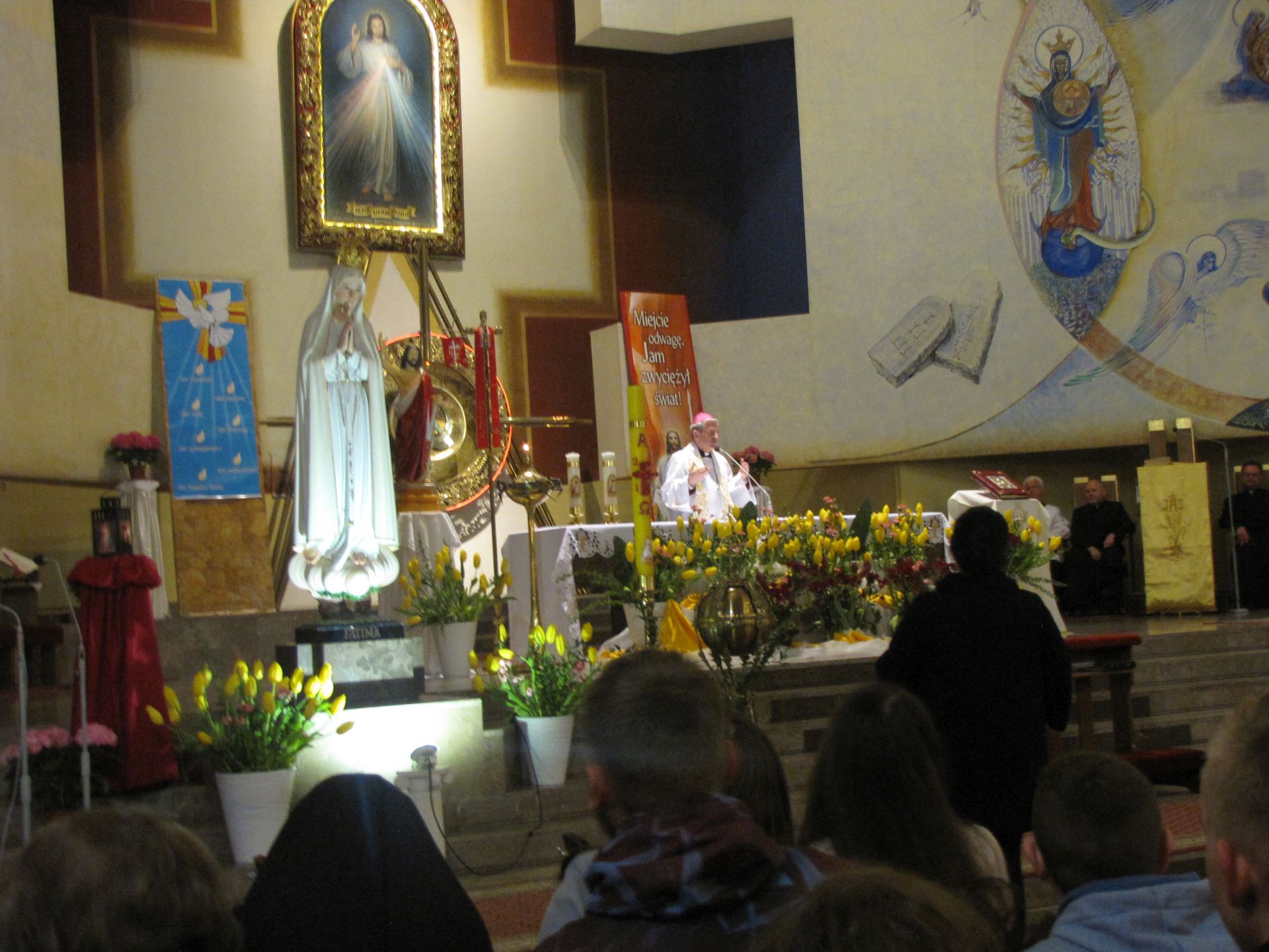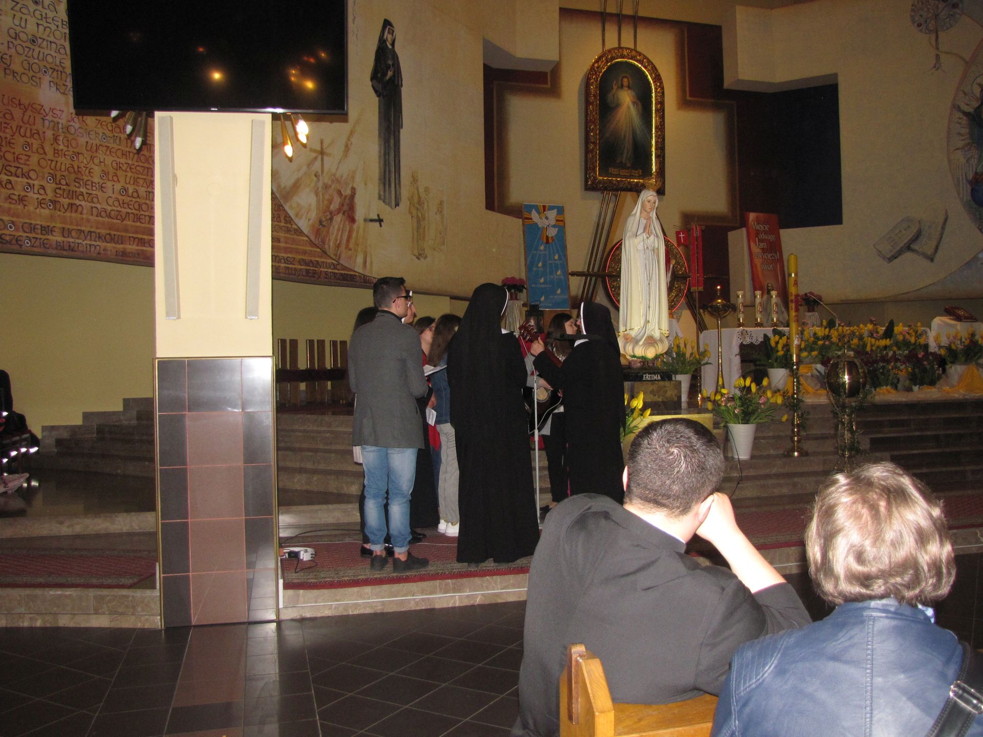 "Bądźcie miłosierni..." - pod tym hasłem w nocy z 27 na 28 kwietnia odbyło się kolejne Sercańskie Czuwanie Młodzieżowe. Tym razem wraz z młodzieżą udaliśmy się do Ostrowca Świętokrzyskiego, by tam wraz z ponad 400 młodymi ludźmi uczyć się jak być miłosiernym na wzór samego Boga. Czuwanie rozpoczęło się w centrum Ostrowca. Na dobry start było śpiewanie, konferencja ks. Dariusza Lewczaka i spotkanie z ks. biskupem. Następnie w procesji przeszliśmy do par. św. Stanisława w Denkowie, gdzie miała miejsce pozostała część naszego spotkania. Mieliśmy okazję wysłuchać świadectwa dwóch chłopaków z domu poprawczego mówiących o ich spotkaniu z Miłosierdziem, oraz księdza posługującego w hospicjum i siostry zakonnej pracującej w domu dziecka. Oboje mówili o tym jak miłosierdzie czynić w praktyce. Po posiłku spotkaliśmy się ponownie w kościele na cudownym czasie spowiedzi i Eucharystii kończącej nasze spotkanie.