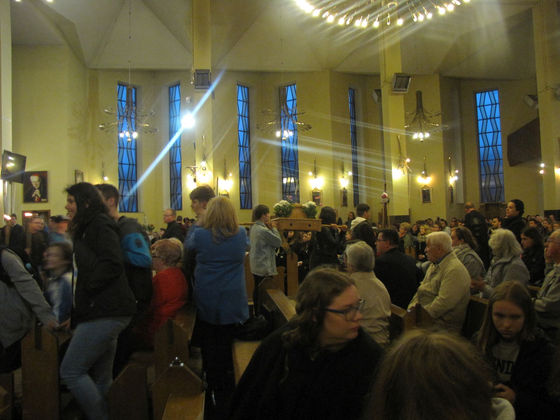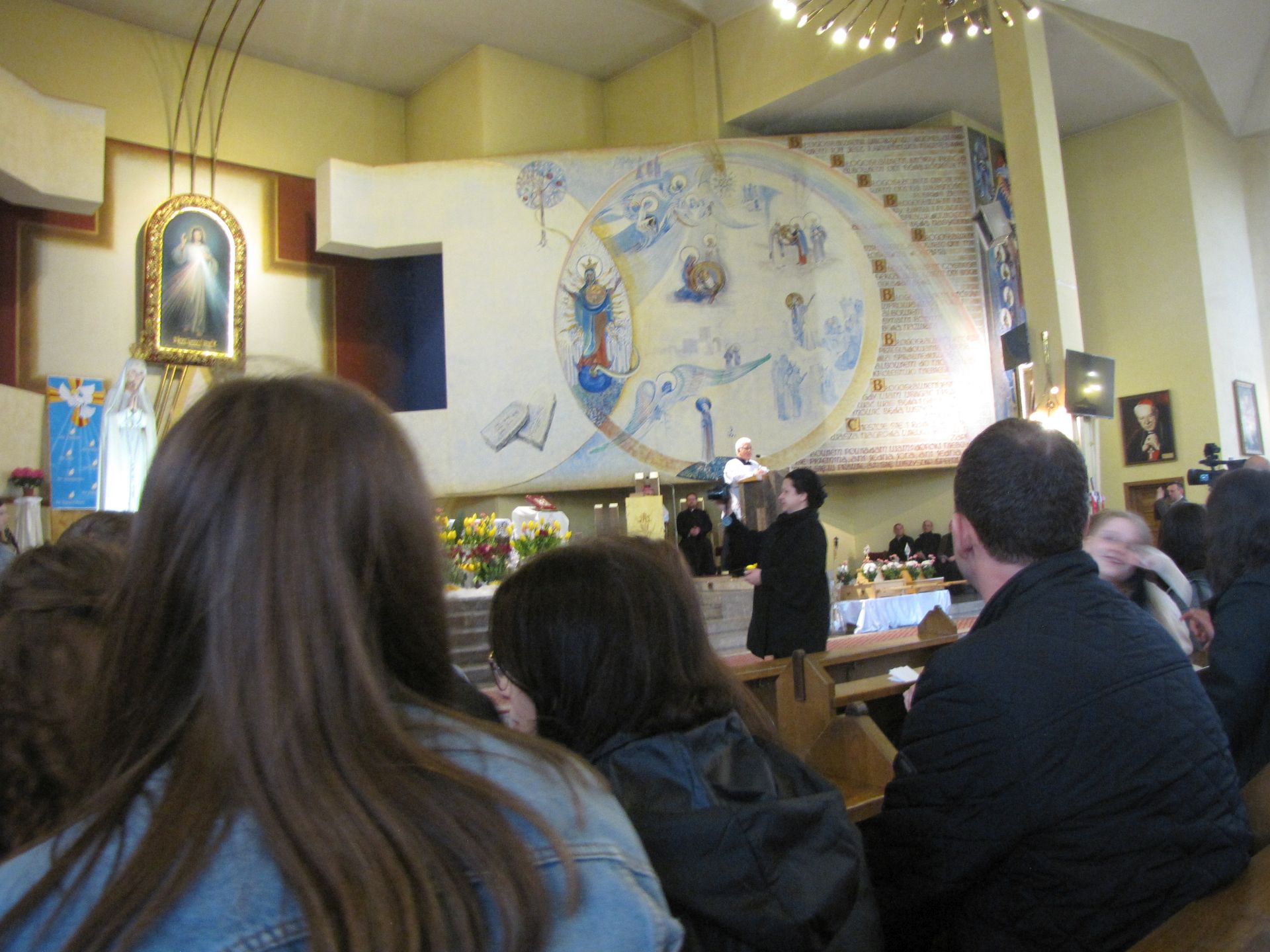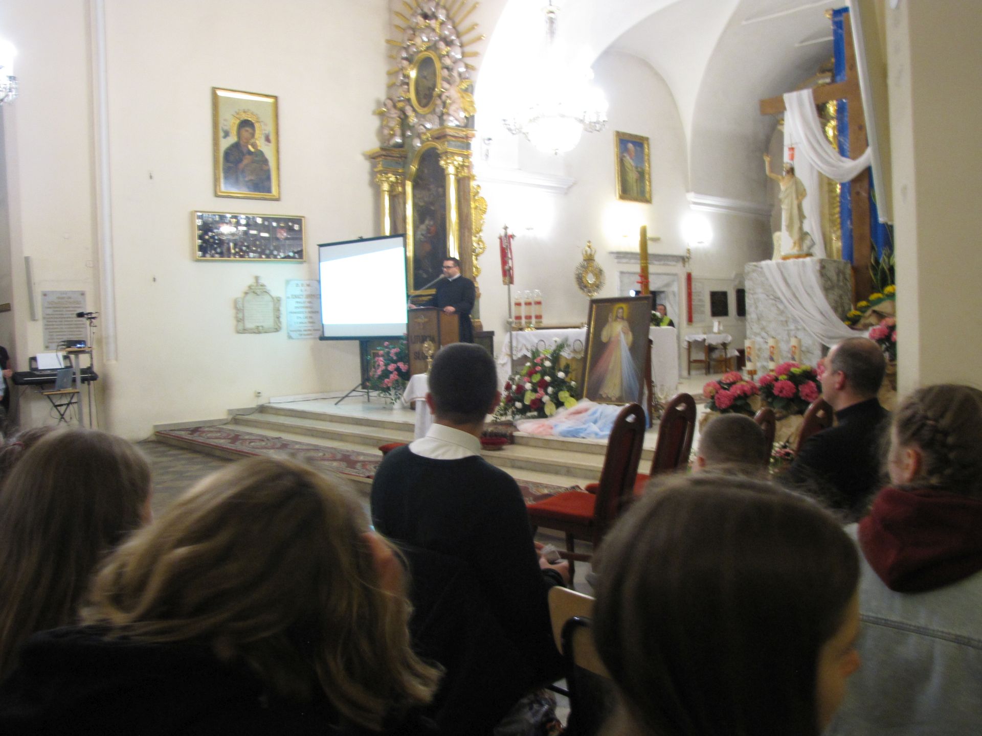 "Bądźcie miłosierni..." - pod tym hasłem w nocy z 27 na 28 kwietnia odbyło się kolejne Sercańskie Czuwanie Młodzieżowe. Tym razem wraz z młodzieżą udaliśmy się do Ostrowca Świętokrzyskiego, by tam wraz z ponad 400 młodymi ludźmi uczyć się jak być miłosiernym na wzór samego Boga. Czuwanie rozpoczęło się w centrum Ostrowca. Na dobry start było śpiewanie, konferencja ks. Dariusza Lewczaka i spotkanie z ks. biskupem. Następnie w procesji przeszliśmy do par. św. Stanisława w Denkowie, gdzie miała miejsce pozostała część naszego spotkania. Mieliśmy okazję wysłuchać świadectwa dwóch chłopaków z domu poprawczego mówiących o ich spotkaniu z Miłosierdziem, oraz księdza posługującego w hospicjum i siostry zakonnej pracującej w domu dziecka. Oboje mówili o tym jak miłosierdzie czynić w praktyce. Po posiłku spotkaliśmy się ponownie w kościele na cudownym czasie spowiedzi i Eucharystii kończącej nasze spotkanie.