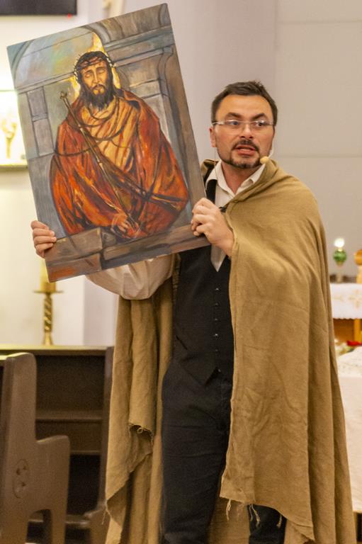 Wykonawca zaprezentował najpiękniejsze modlitwy ułożone przez brata Alberta. W spektaklu znalazły się też fragmenty „Brata naszego Boga” Karola Wojtyły ukazujące przełom i przemianę artysty w sługę ubogich. Wszystko to rozgrywało się przed obrazem „Ecce Homo”.