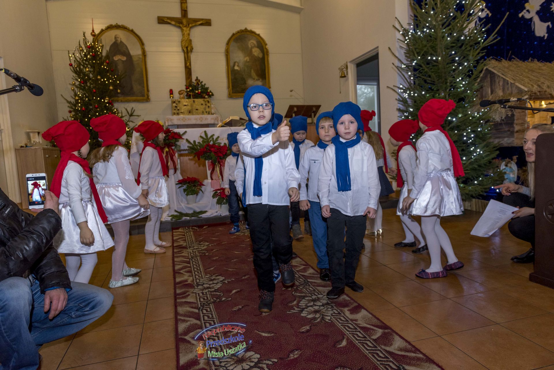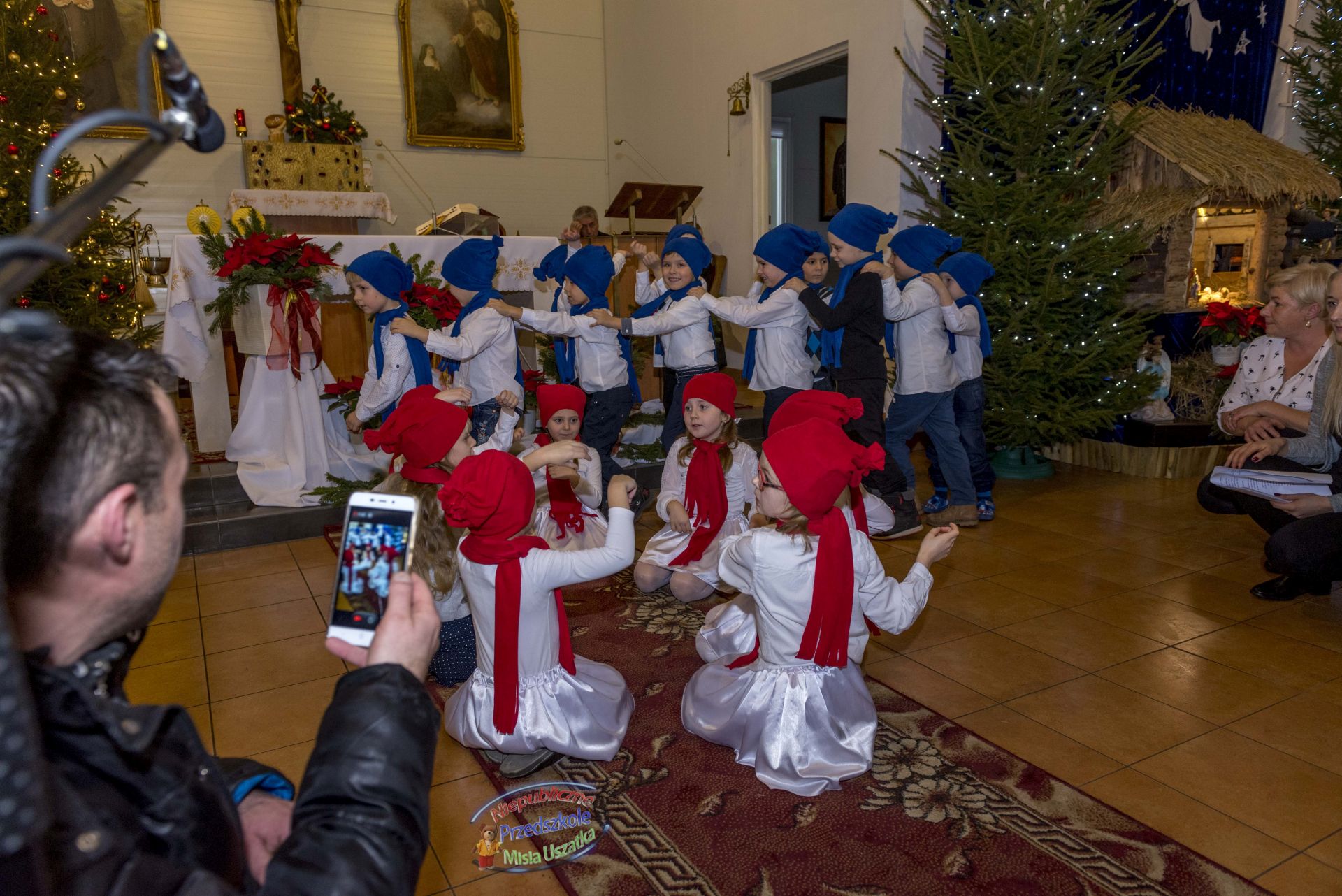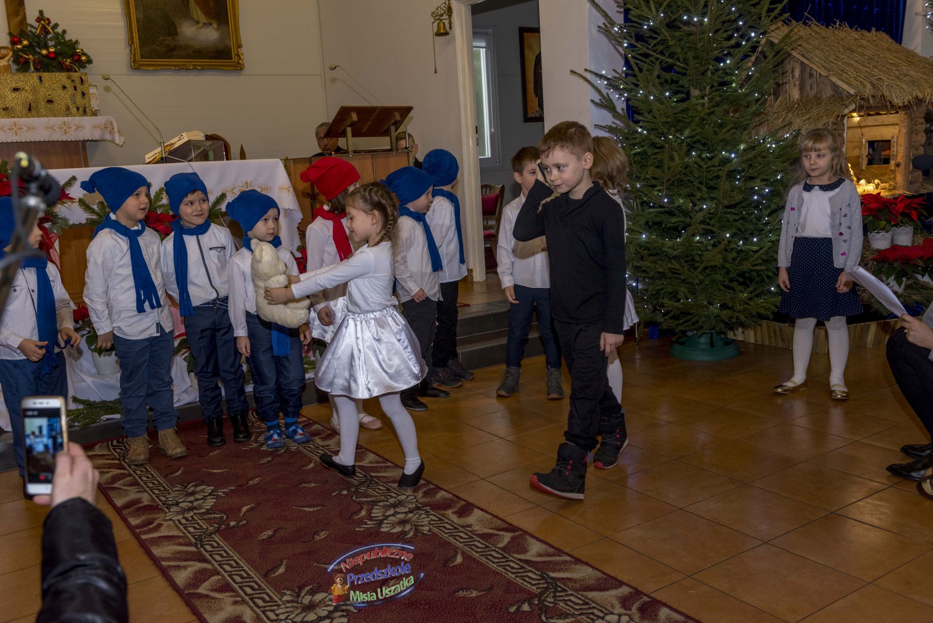 W niedzielę Chrztu Pańskiego, na zakończenie okresu Bożego Narodzenia dzieci z Niepublicznego Przedszkola Misia Uszatka wystawiły u nas przedstawienie bożonarodzeniowe. Odbyło się ono po Mszy św. o godz. 12.00. Przedstawienie zgromadziło dużą rzeszę widzów - parafian i gości spoza. Dyrekcji, wychowawcom i dzieciom składamy serdeczne "Bóg zapłać!" za włóżoną pracę w przygotowanie występu.