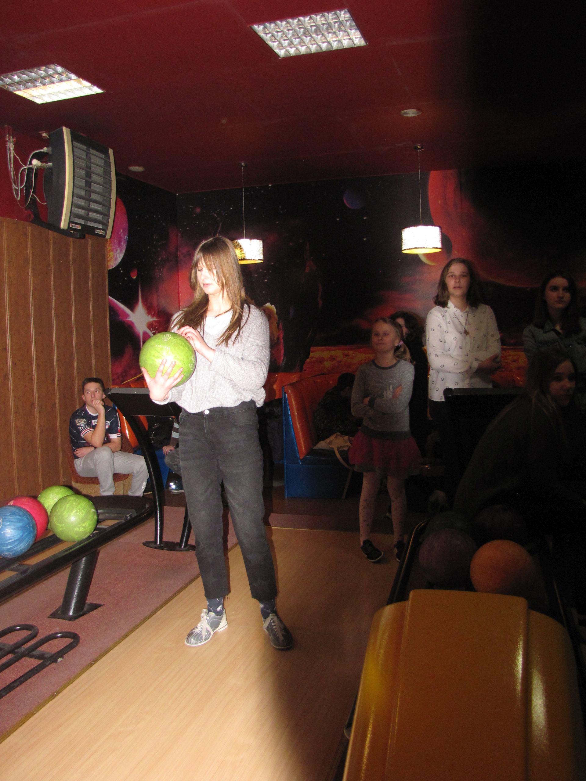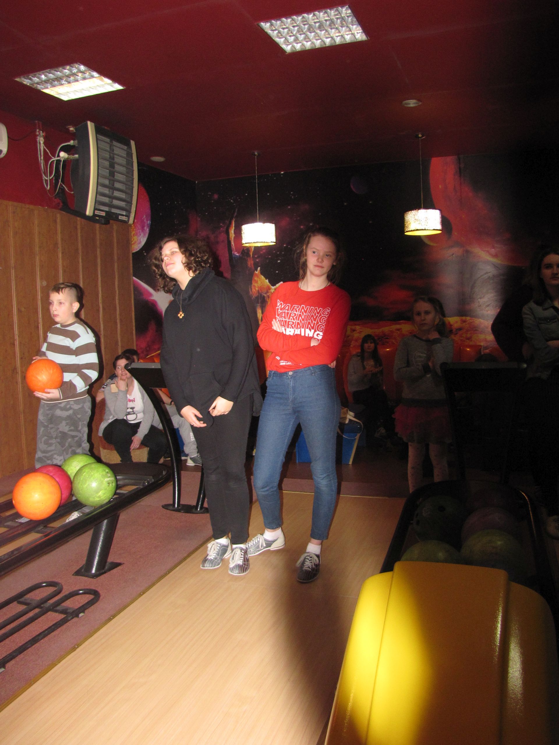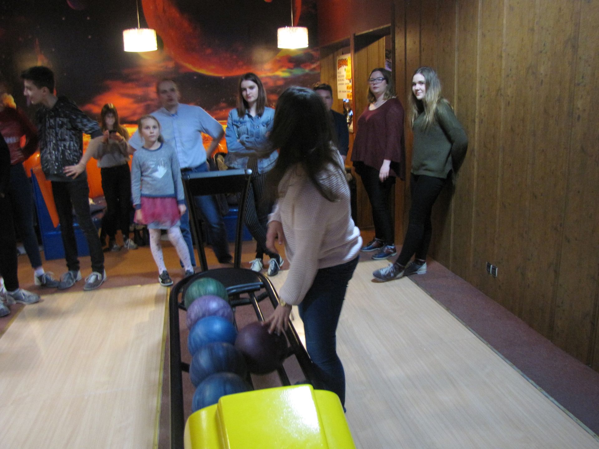 Popołudnie spędziliśmy nie mniej aktywnie. Choć co prawda już nie wszyscy, ale część z nas pojechała na kręgle. Dwie godziny rzucania kulą dają w kość. Na szczęście doborowe towarzystwo i pizza łagodziły dyskomfort płynący z obolałych rąk.