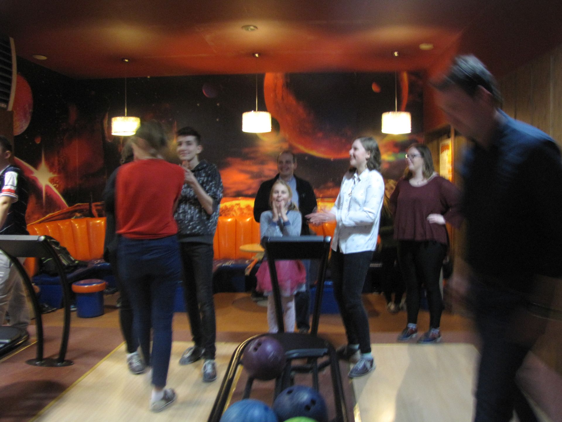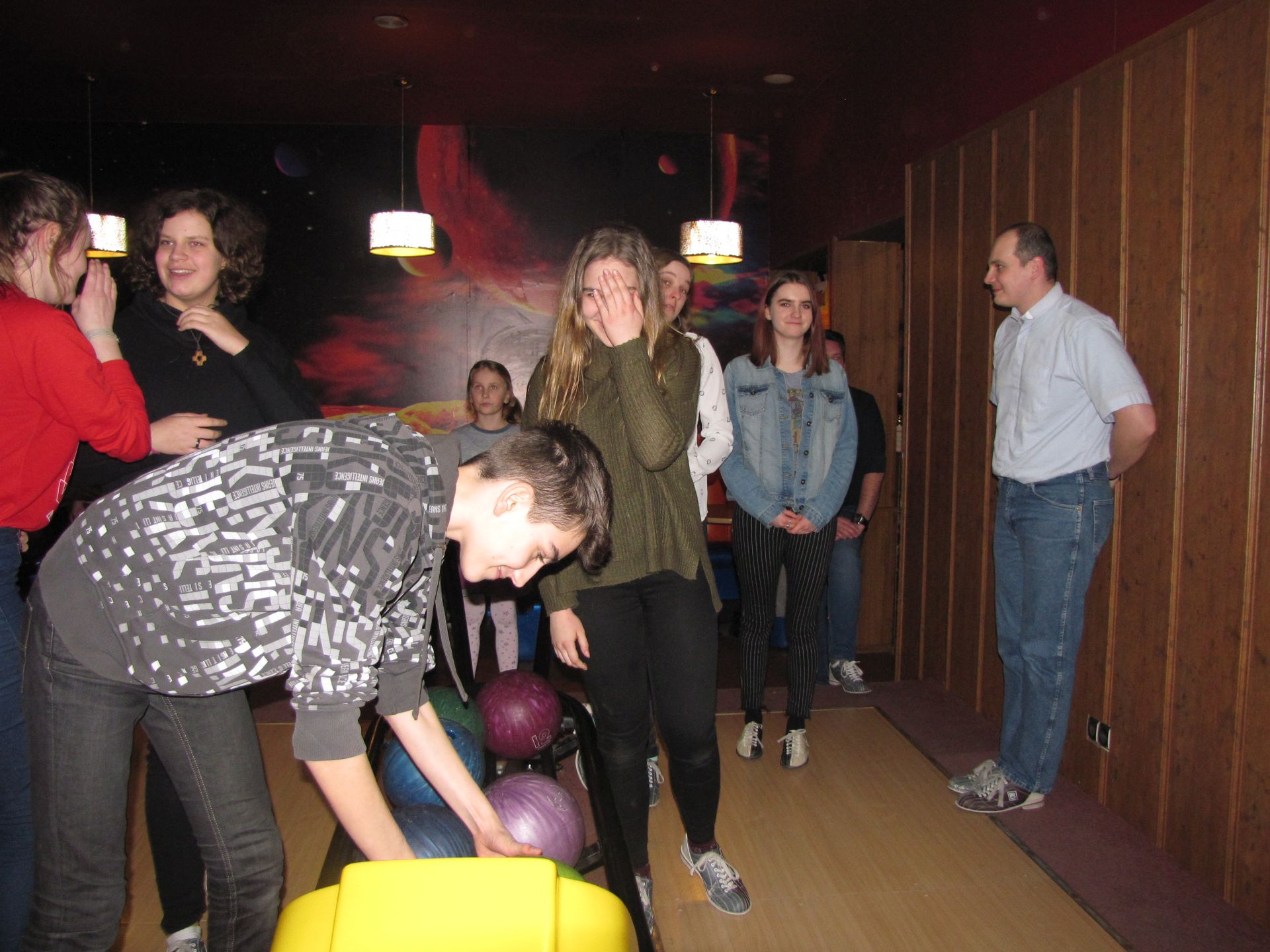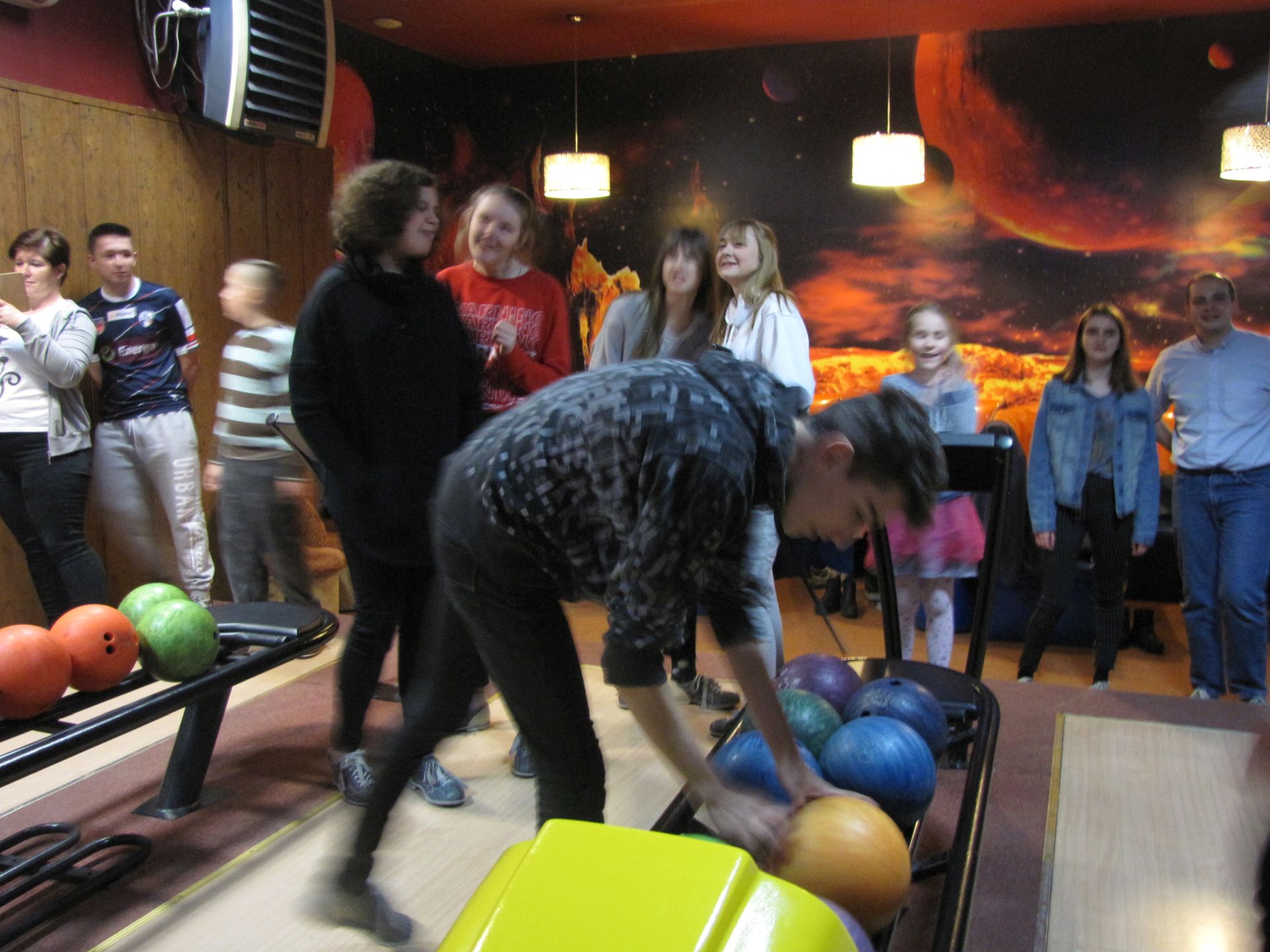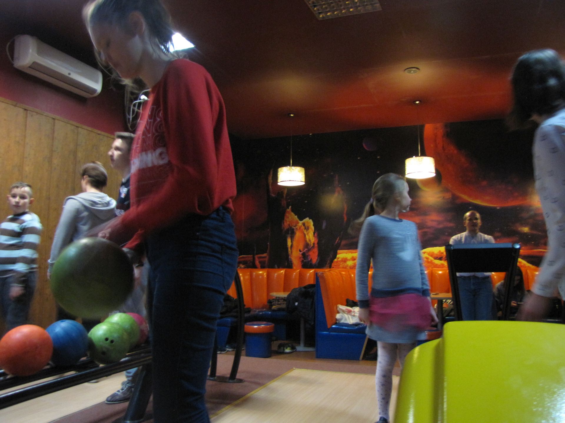 Popołudnie spędziliśmy nie mniej aktywnie. Choć co prawda już nie wszyscy, ale część z nas pojechała na kręgle. Dwie godziny rzucania kulą dają w kość. Na szczęście doborowe towarzystwo i pizza łagodziły dyskomfort płynący z obolałych rąk.