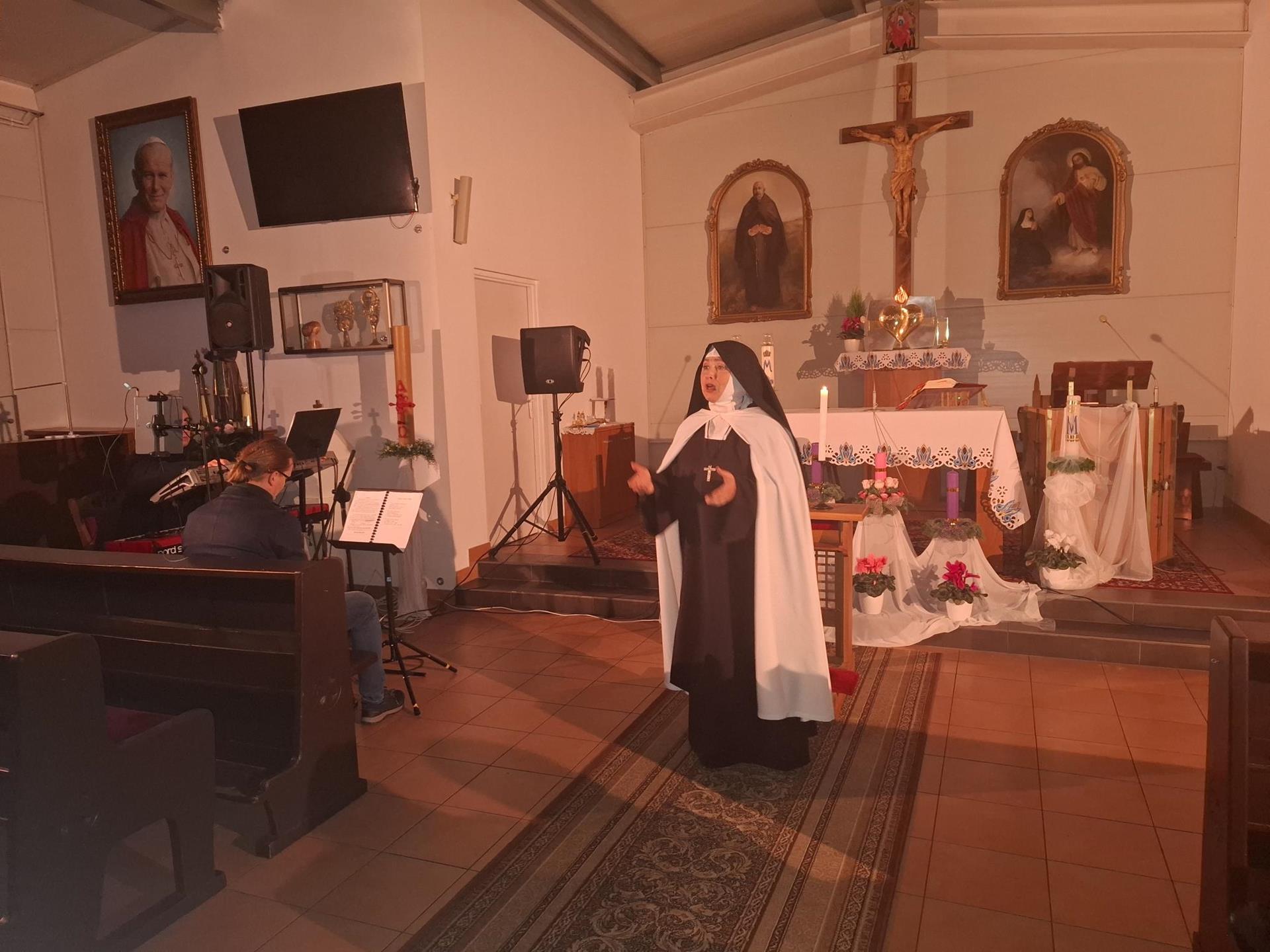W niedzielę 15 grudnia w naszej kaplicy miał miejsce spektakl słowno-muzyczny „Kto szuka Prawdy-szuka Boga” – w oparciu o słowa świętej Edyty Stein Teresy Benedykty od Krzyża, patronki Europy w wykonaniu zespołu Lumen