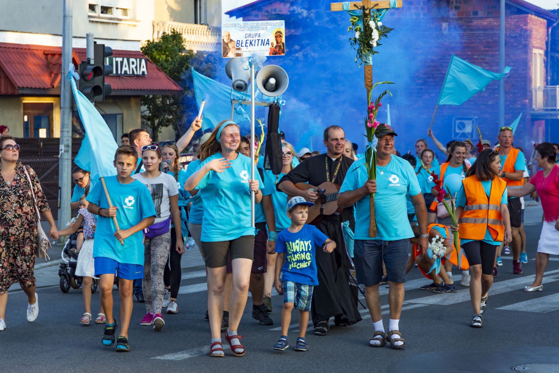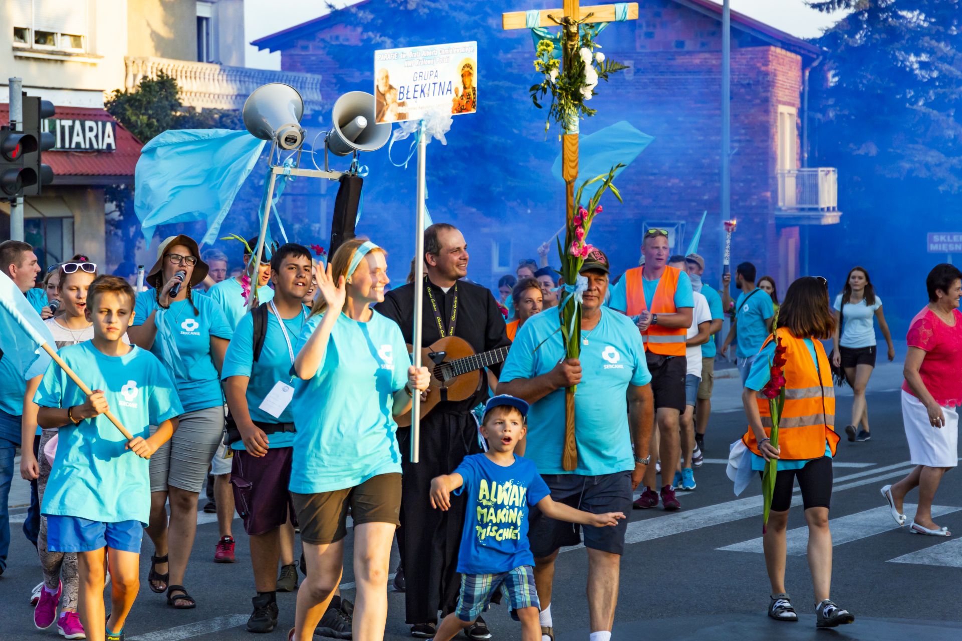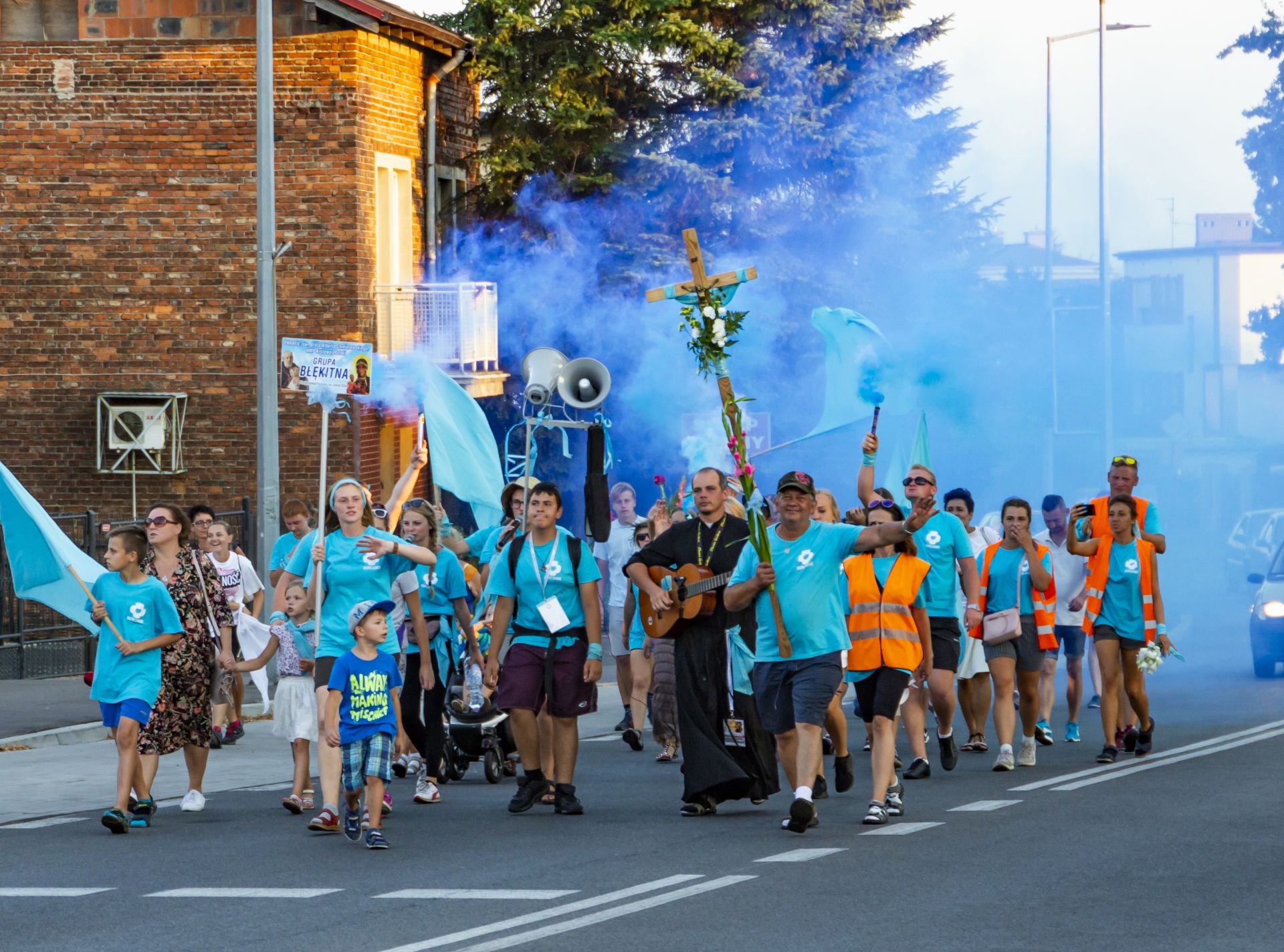 Już po raz drugi z naszej parafii wyruszyła pielgrzymka na Jasną Górę. Choć naszych parafian w grupie "Błękitnej" było bardzo mało, to jednak grupa i tak była dosyć spora - 86 osób zapisanych, a do tego kilkanaście takich które doszły w trakcie. Tegoroczna wędrówka odbywała się pod hasłem "Wolność" i była tematycznie związana z setną rocznicą odzyskania przez Polskę niepodległości. Konferencje w trakcie marszu głosił nam ks. Łukasz Skoracki, poprzedni dyrektor naszego diecezjalnego Radia Rodzina. Jego nauki mówiły o wolności ale bardziej pod kątem wolności wewnętrznej, wolności którą daje Chrystus.