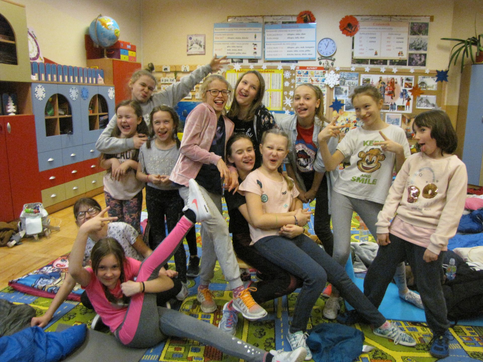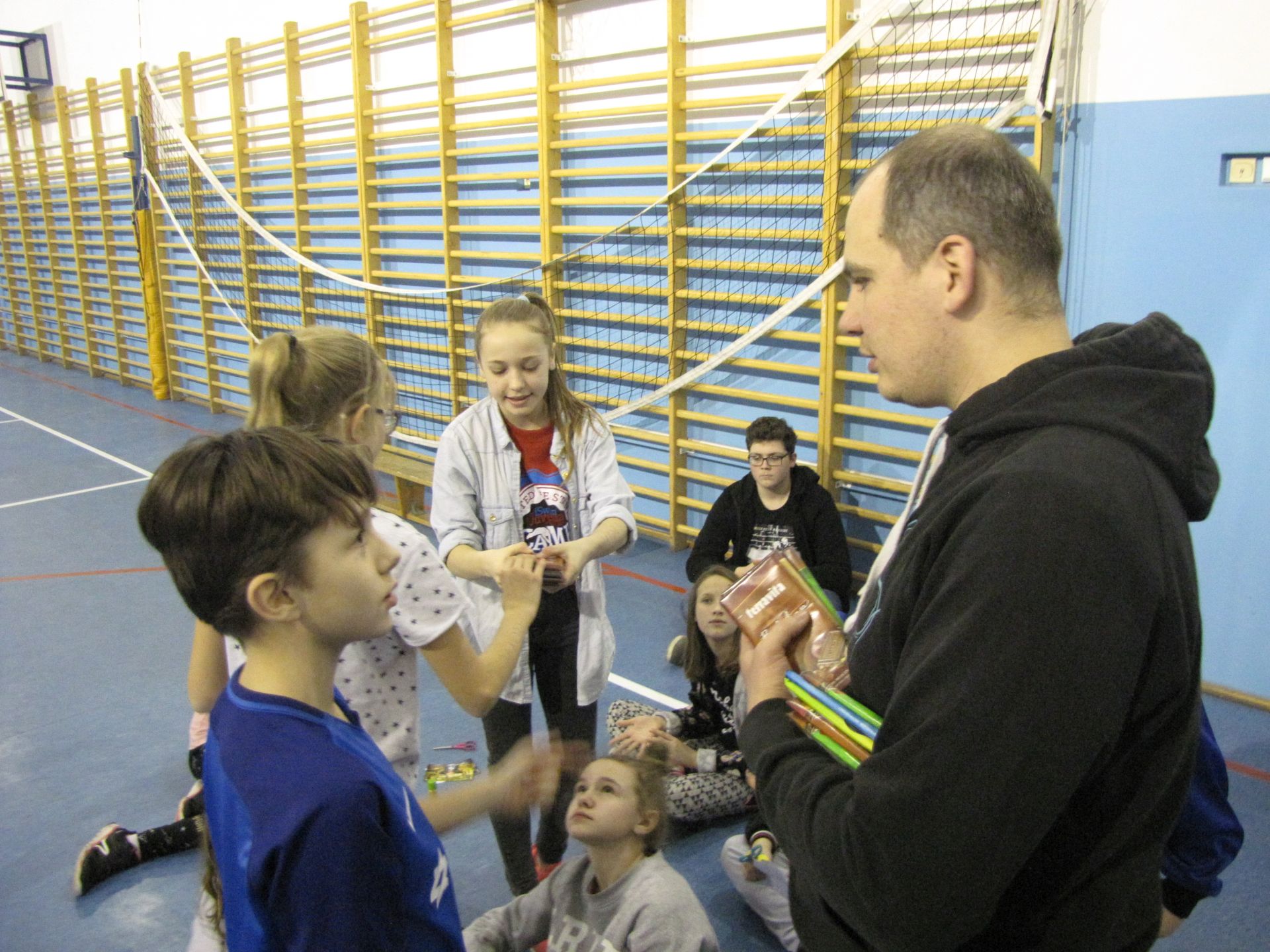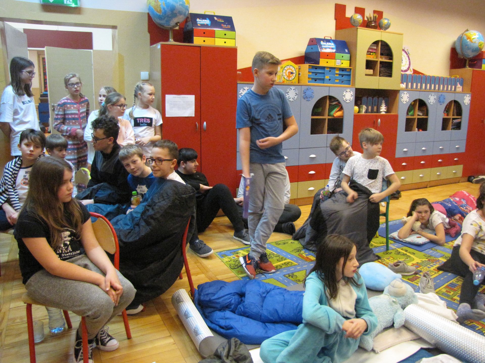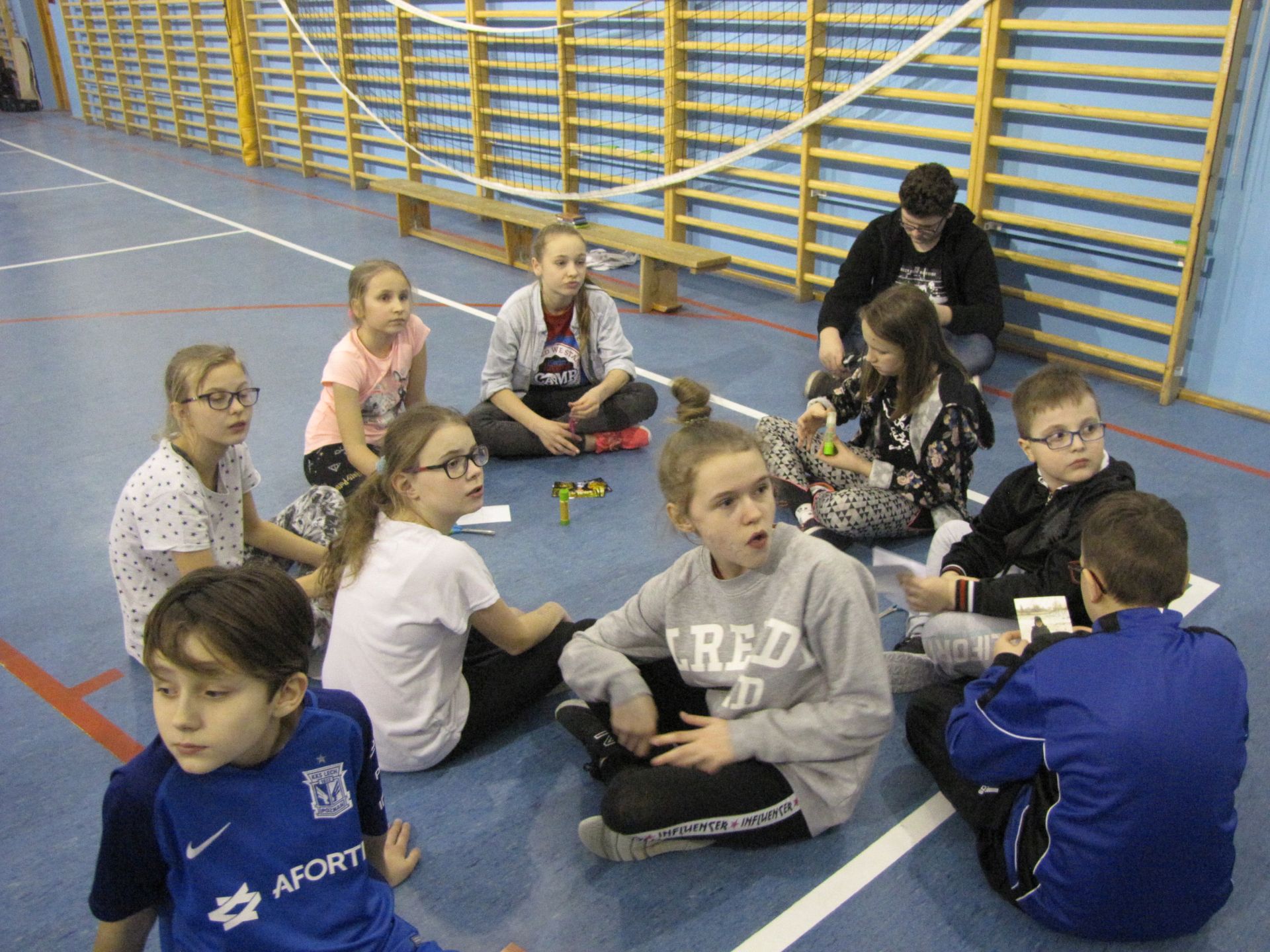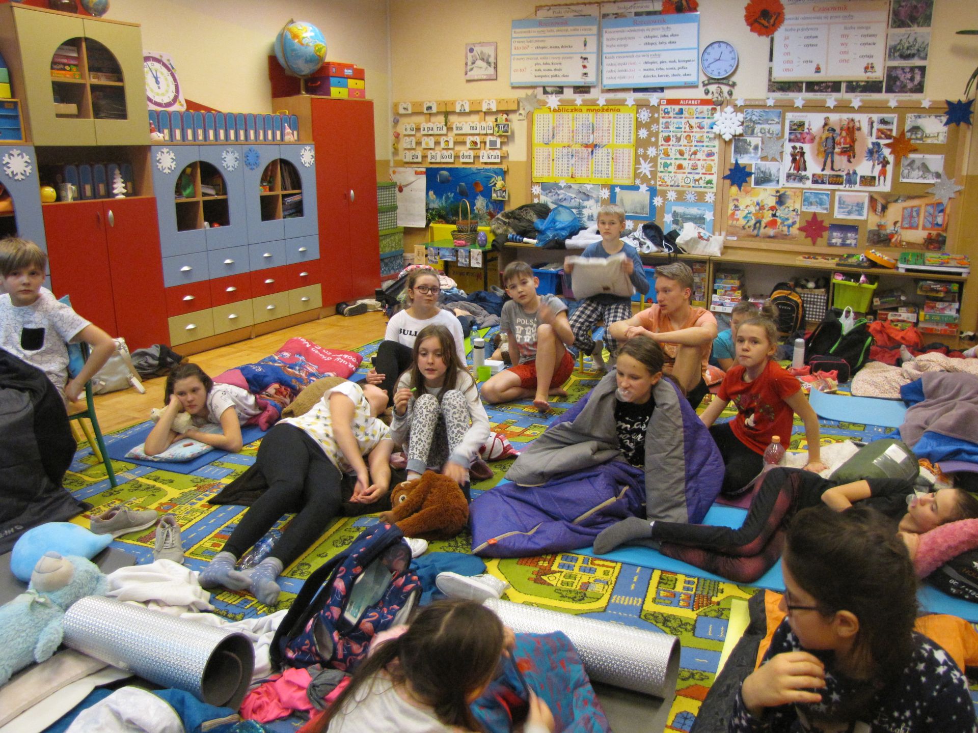 W nocy z 22 na 23 lutego br. w Szkole Podstawowej nr. 11 zorganizowaliśmy noc dla naszej scholi oraz ministrantów. Wszystko odbyło się pod opieką pani Ewy Bartczak i ks. Jakuba, których wspierała młodzież. Dzieci odpowiednio przygotowane, czyli wyposażone w poduszki, śpiwory i oczywiście mnóstwo energii oraz pozytywnego nastawienia przekroczyli próg szkoły w piątkowy wieczór. Przygotowaliśmy dla naszych młodych, aktywnych kolegów i koleżanek wiele atrakcji jak np. zumba, zajęcia plastyczne, na których młodzi mogli wykazać się kreatywnością (stworzyliśmy drzewa genealogiczne ministrantów i scholi), zawody sportowe, które otworzyły naszą noc w szkole i na których mogliśmy rywalizować ze sobą w przyjaznej atmosferze. Podczas przerw poznawaliśmy się, śpiewaliśmy i zwiedzaliśmy zakamarki szkoły. Do godziny 1:00 szaleliśmy na dużej sali gimnastycznej, po czym robiąc się lekko senni, urządziliśmy w jednej z klas salę kinową. „Jak wytresować smoka 3” to była idealna propozycja, by rozśmieszyć, wzruszyć i zainteresować młodych widzów. Po wielu wrażeniach zmorzył nas sen. Czas spędzony wspólnie dał nam wszystkim wiele radości i uśmiechu.