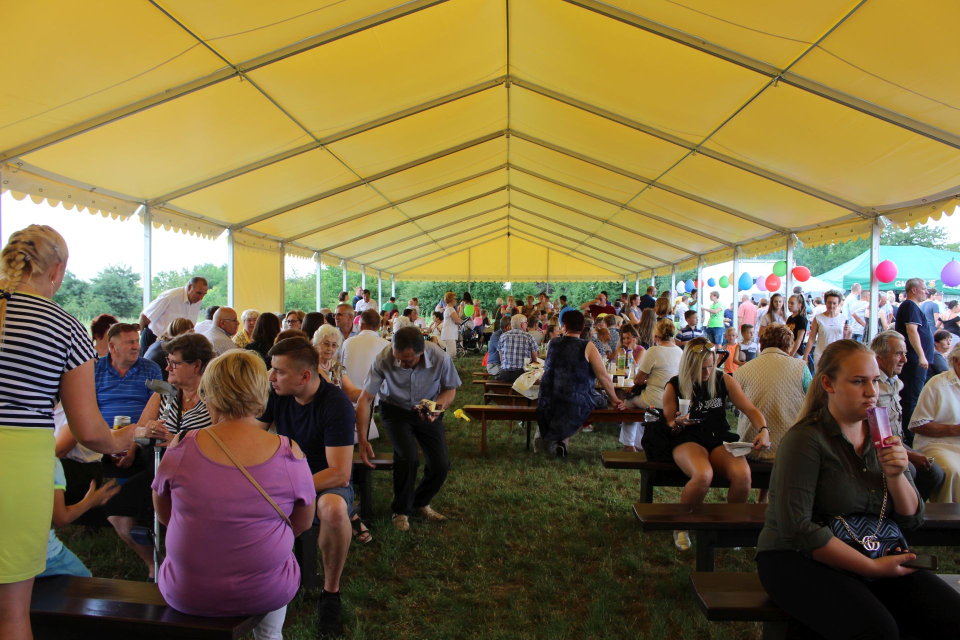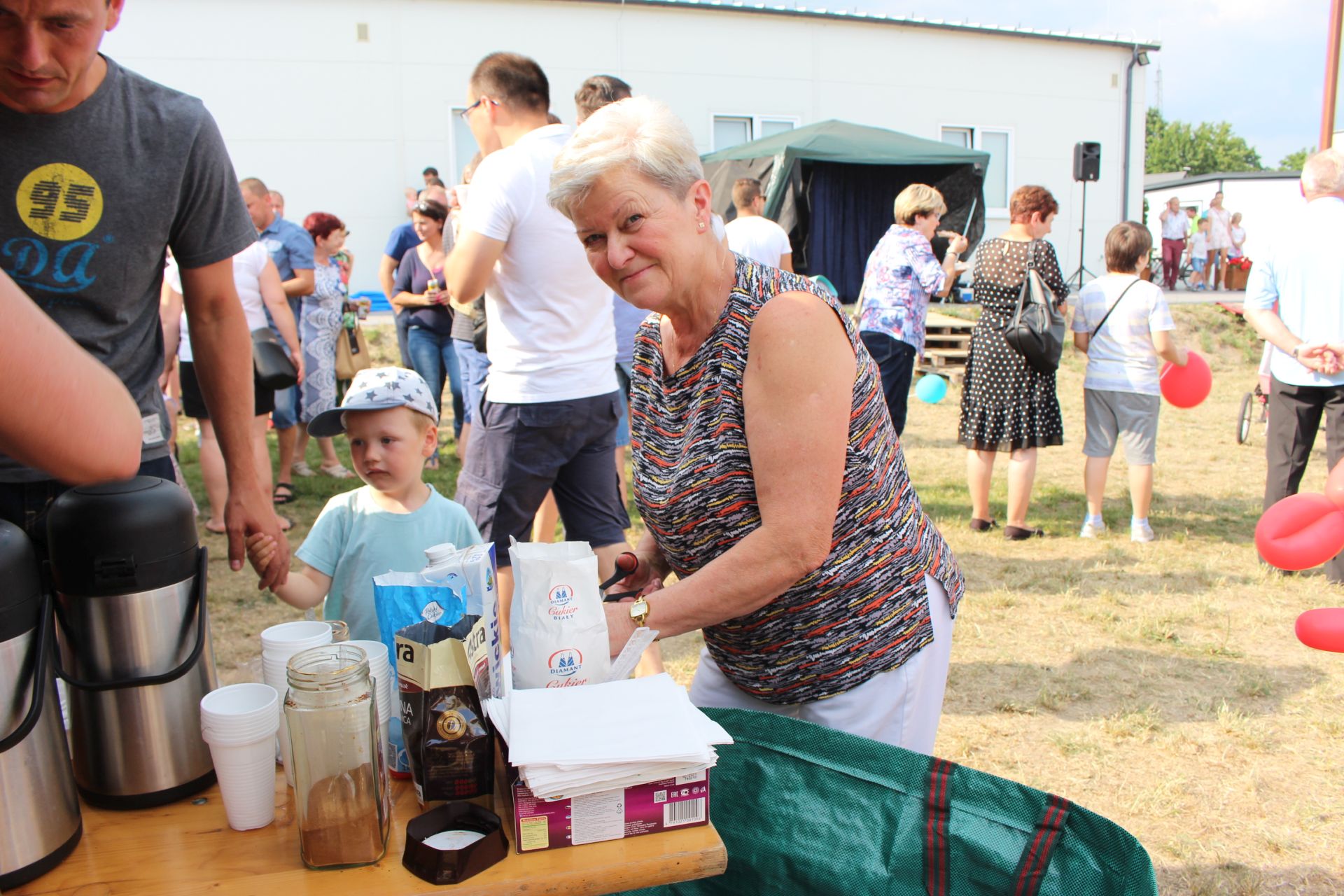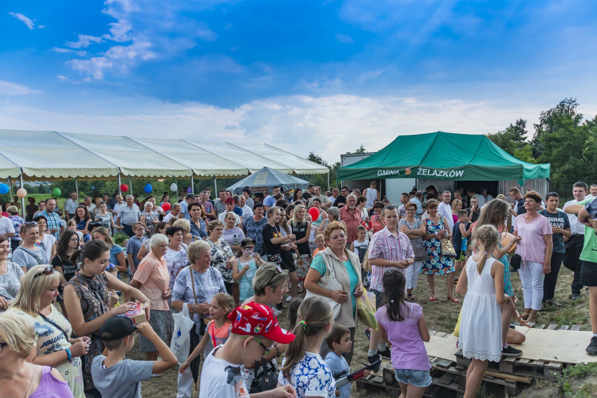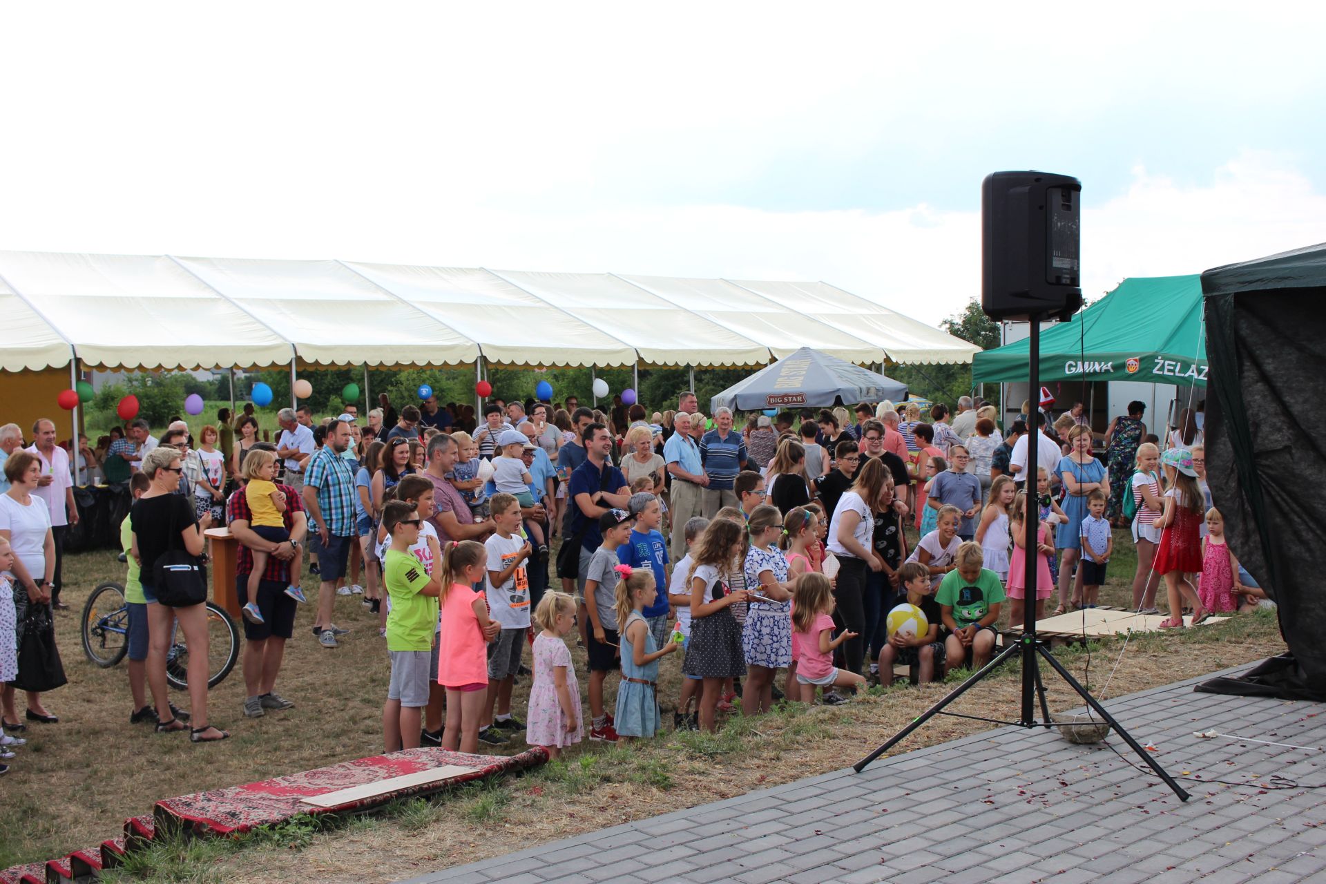 Po południu na łące za kaplicą odbył się festyn parafialny. Było mnóstwo atrakcji przygotowanych dla dzieci - karuzele, iluzjonista, klaun, malowanie twarzy, robienie biżuterii, oraz różne gry i zabawy. Dla każdego też było coś do jedzenia - kiełbaski z grilla, ciasta, szaszłyki z owoców oraz przepyszny chleb ze smalcem. Każdy kto chciał - i dla kogo starczyło losów - mógł również wziąć udział w loterii fantowej. Okazało się, że zainteresowanie loterią było tak duże, że przygotowane 500 losów rozeszło się bardzo szybko. Dochód z całego festynu przeznaczony jest na budowę naszego kościoła.