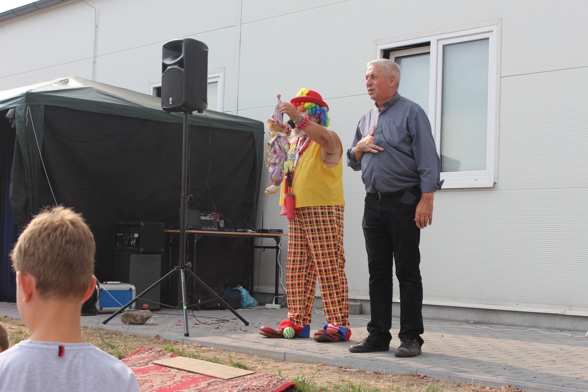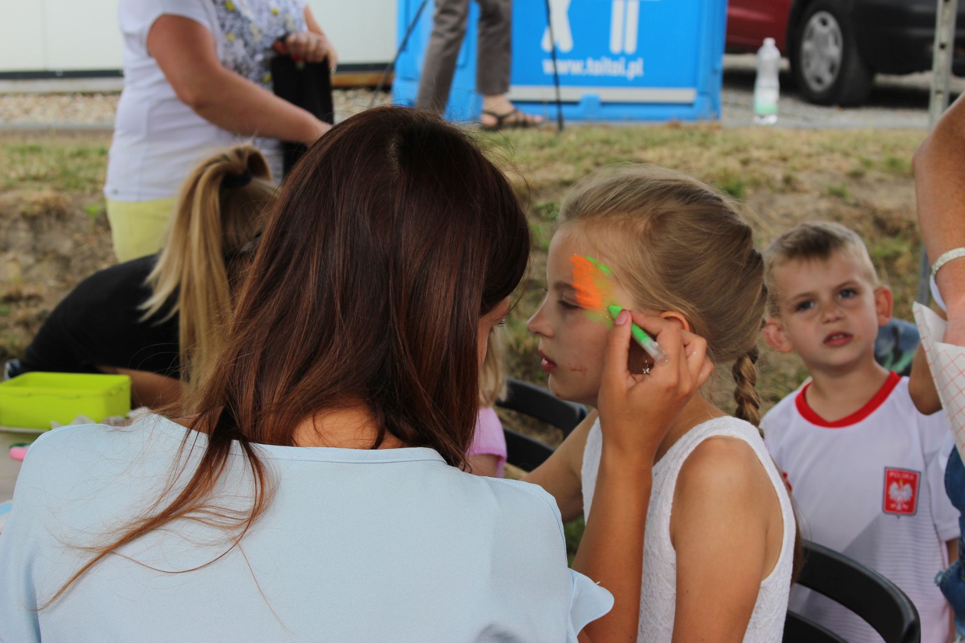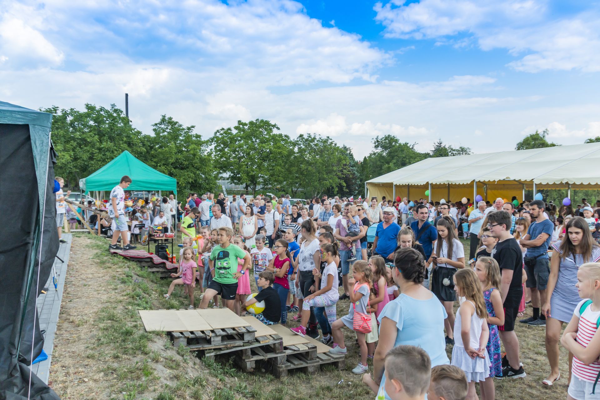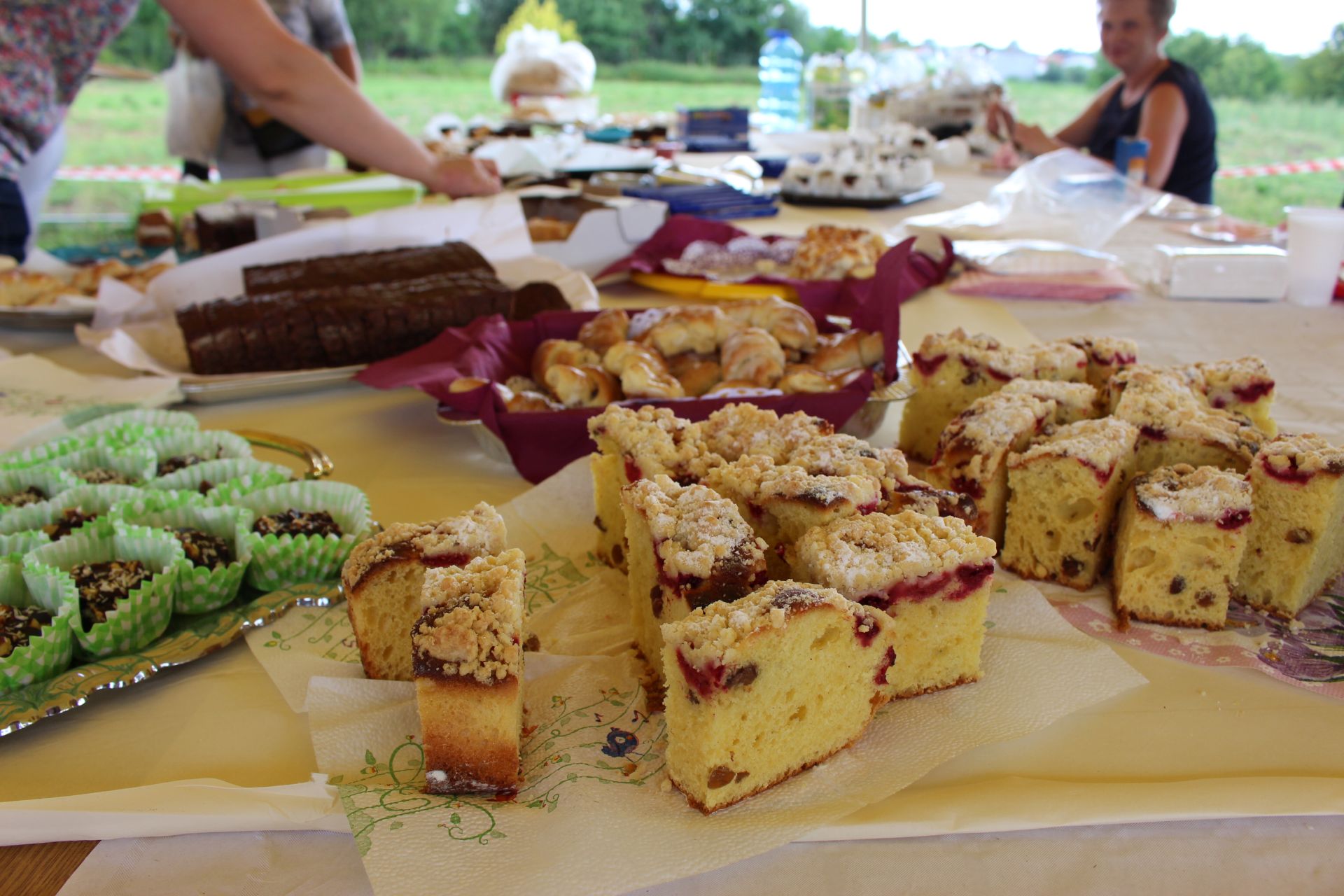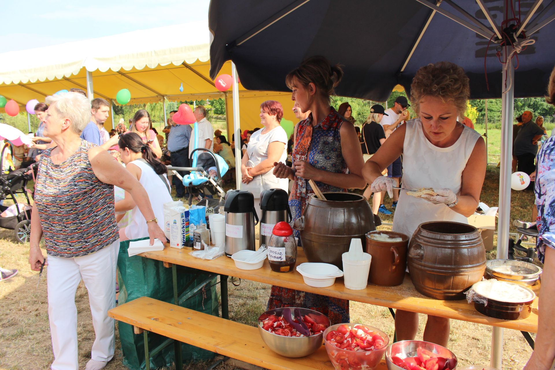 Po południu na łące za kaplicą odbył się festyn parafialny. Było mnóstwo atrakcji przygotowanych dla dzieci - karuzele, iluzjonista, klaun, malowanie twarzy, robienie biżuterii, oraz różne gry i zabawy. Dla każdego też było coś do jedzenia - kiełbaski z grilla, ciasta, szaszłyki z owoców oraz przepyszny chleb ze smalcem. Każdy kto chciał - i dla kogo starczyło losów - mógł również wziąć udział w loterii fantowej. Okazało się, że zainteresowanie loterią było tak duże, że przygotowane 500 losów rozeszło się bardzo szybko. Dochód z całego festynu przeznaczony jest na budowę naszego kościoła.