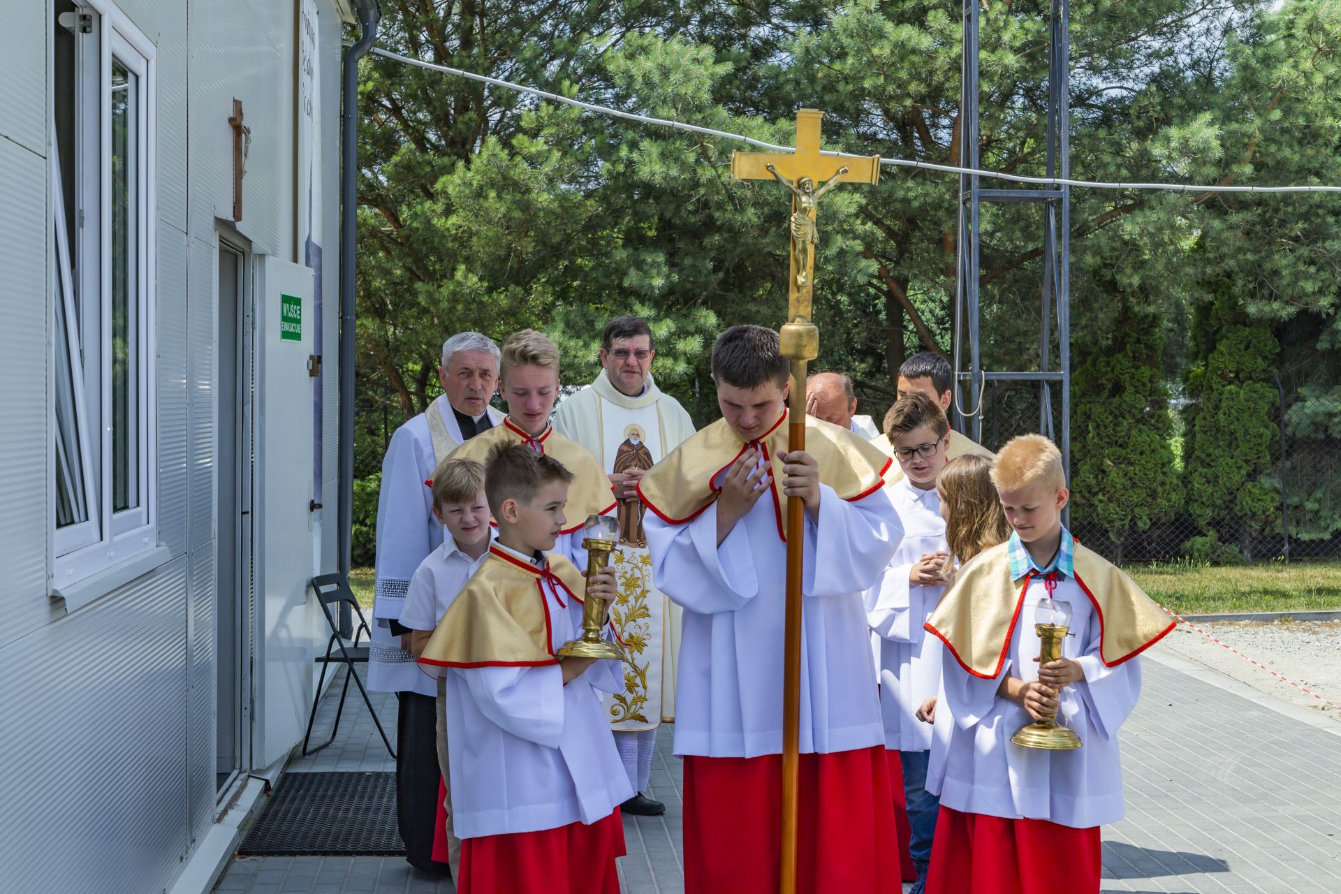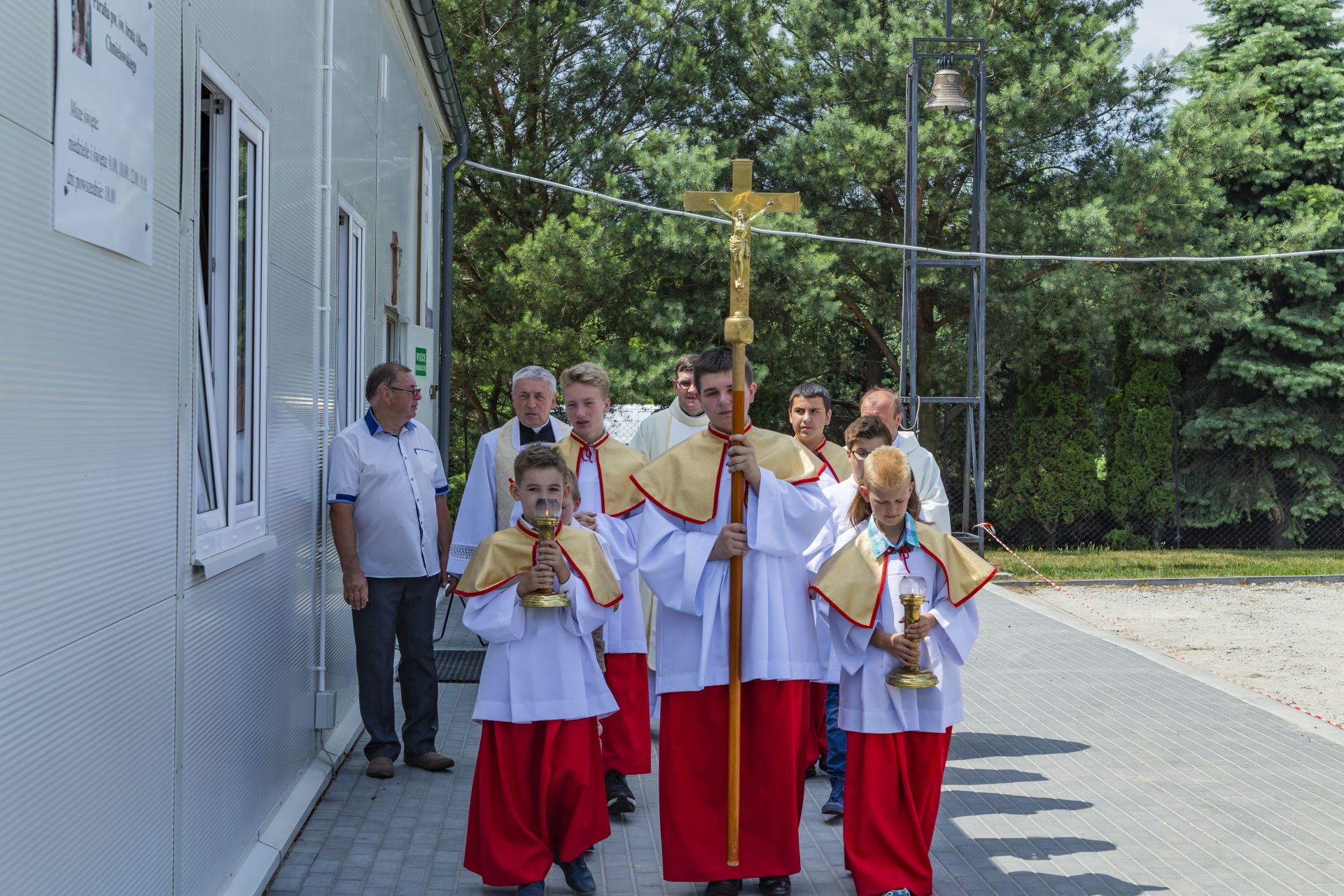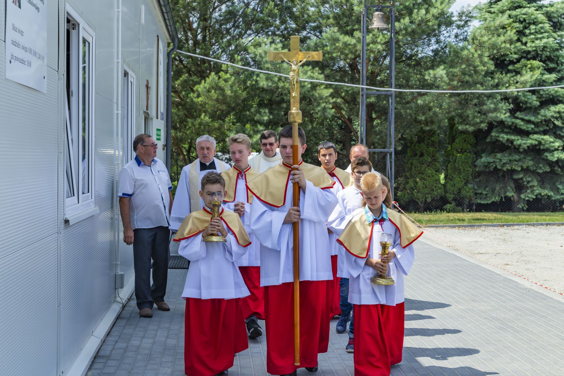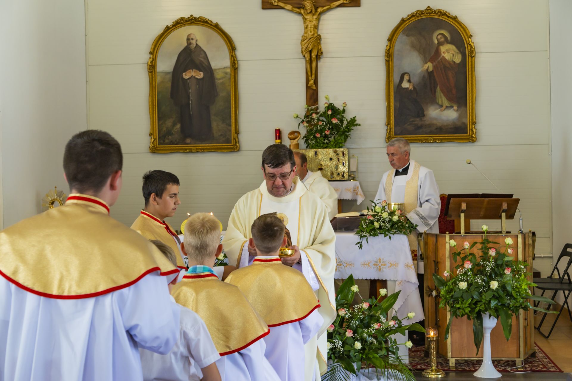 Po południu na łące za kaplicą odbył się festyn parafialny. Było mnóstwo atrakcji przygotowanych dla dzieci - karuzele, iluzjonista, klaun, malowanie twarzy, robienie biżuterii, oraz różne gry i zabawy. Dla każdego też było coś do jedzenia - kiełbaski z grilla, ciasta, szaszłyki z owoców oraz przepyszny chleb ze smalcem. Każdy kto chciał - i dla kogo starczyło losów - mógł również wziąć udział w loterii fantowej. Okazało się, że zainteresowanie loterią było tak duże, że przygotowane 500 losów rozeszło się bardzo szybko. Dochód z całego festynu przeznaczony jest na budowę naszego kościoła.