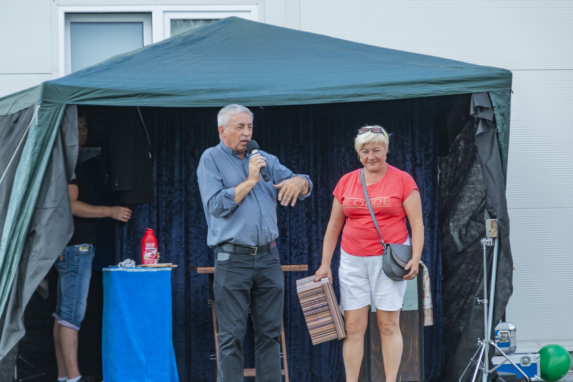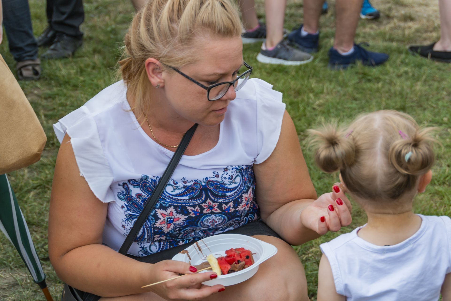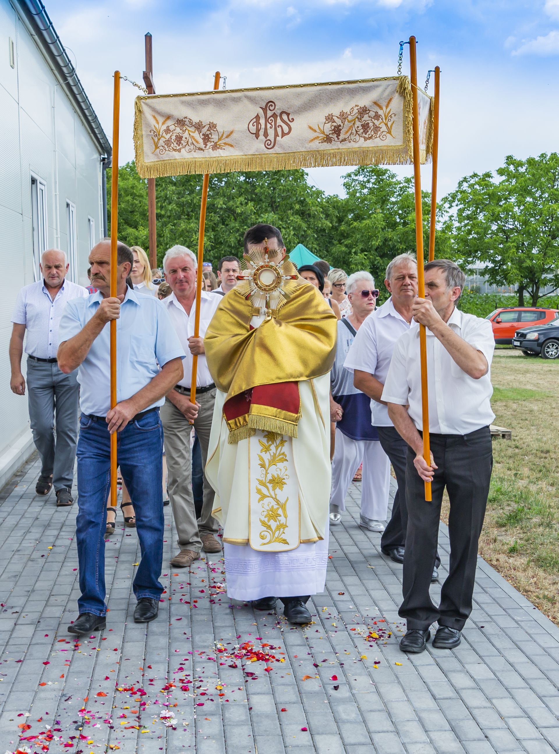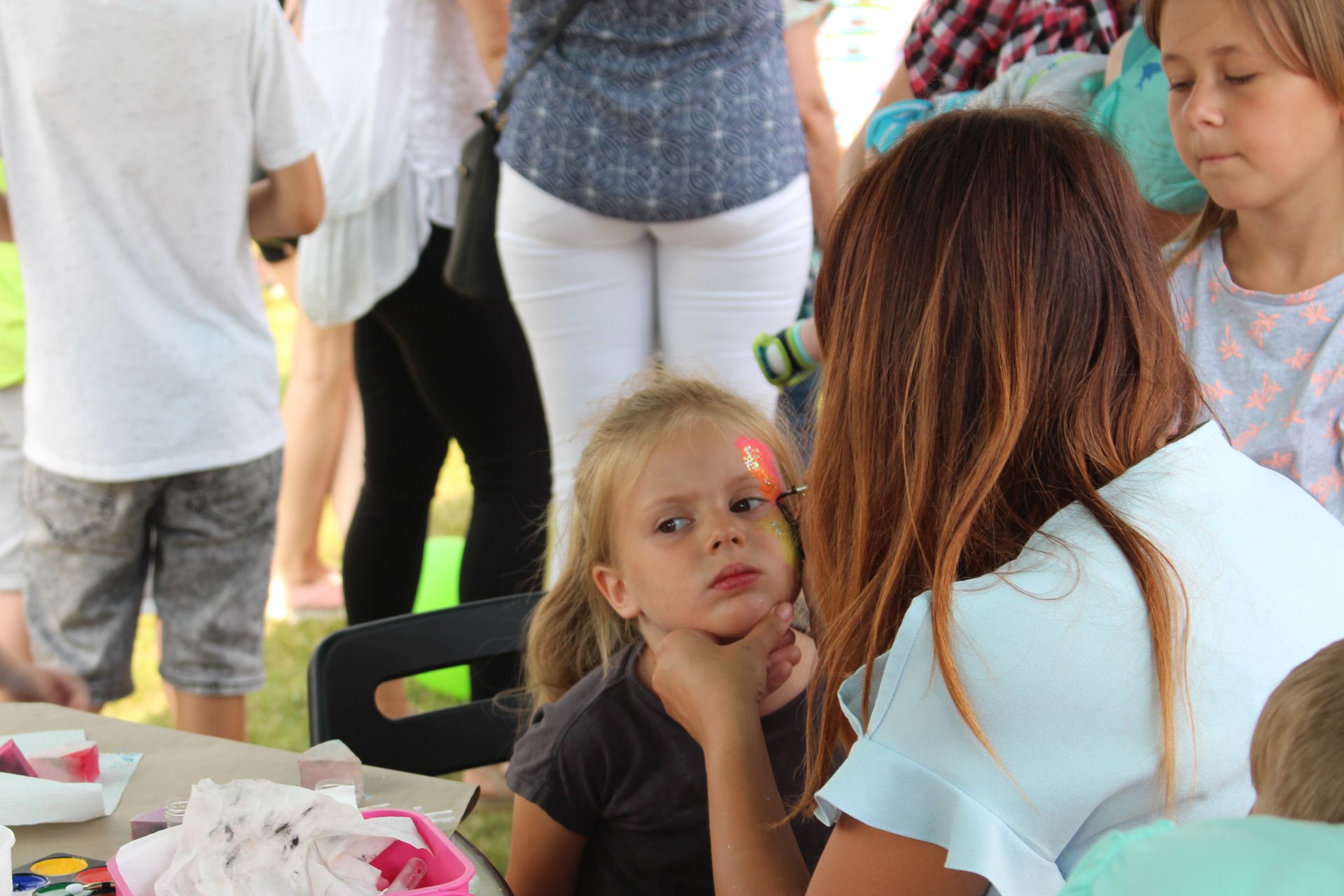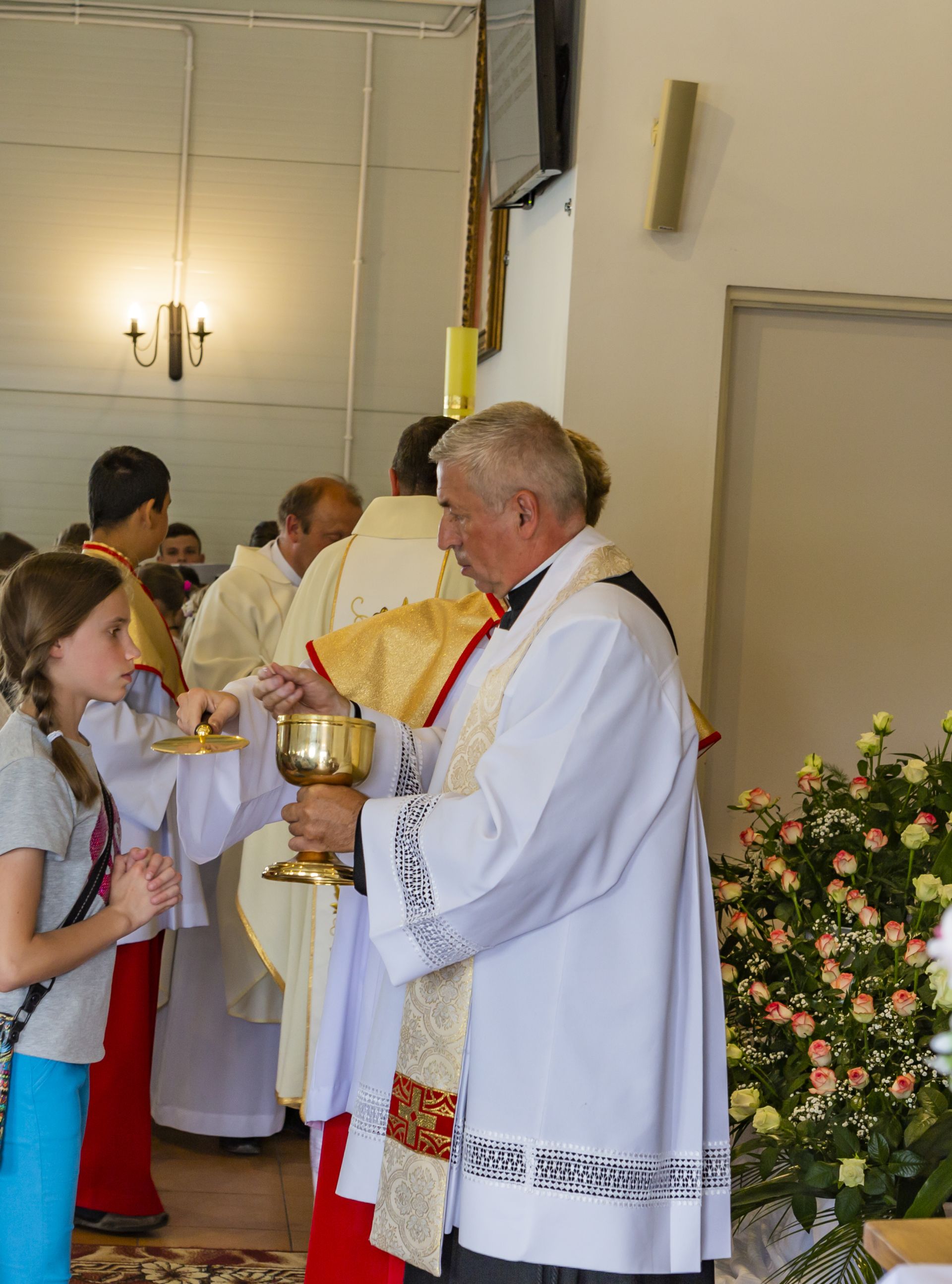 Po południu na łące za kaplicą odbył się festyn parafialny. Było mnóstwo atrakcji przygotowanych dla dzieci - karuzele, iluzjonista, klaun, malowanie twarzy, robienie biżuterii, oraz różne gry i zabawy. Dla każdego też było coś do jedzenia - kiełbaski z grilla, ciasta, szaszłyki z owoców oraz przepyszny chleb ze smalcem. Każdy kto chciał - i dla kogo starczyło losów - mógł również wziąć udział w loterii fantowej. Okazało się, że zainteresowanie loterią było tak duże, że przygotowane 500 losów rozeszło się bardzo szybko. Dochód z całego festynu przeznaczony jest na budowę naszego kościoła.