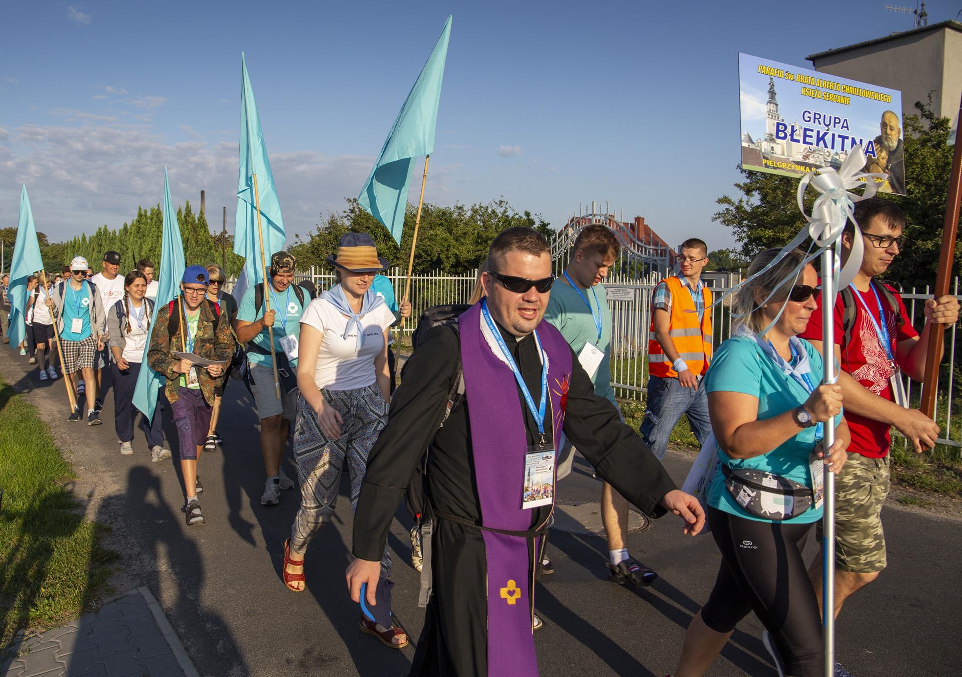 W piątek 9 sierpnia Mszą św. o godz. 6.00 pielgrzymi z grupy Błękitnej rozpoczęli pieszą wędrówkę do tronu Matki na Jasnej Górze. W tym roku grupa liczy aż 126 osób. Przewodnikiem grupy jest nowy wikariusz parafii św. brata Alberta ks. Maciej Rutkowicz
