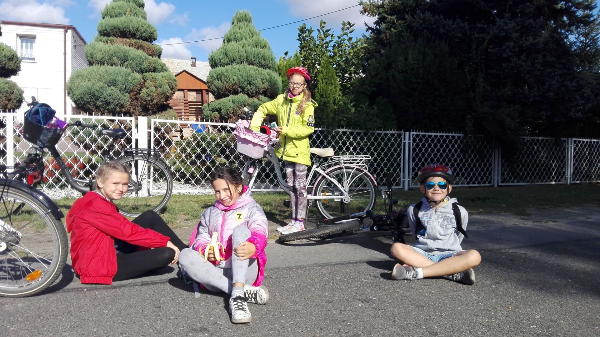 O godzinie 9 zebraliśmy się pod kaplicą. Było nas łącznie 18 osób, więc niemała grupa. Trasa była spora, bo około 40 km, ale wszyscy dzielnie się spisali i dali radę dojechać. Na miejscu chcieliśmy zobaczyć jeszcze zwierzęta w parku przy zamku, ale duża i ciemna chmura nas przegoniła do restauracji. Jak się okazało - słusznie. Gdy byliśmy na pizzy to zaczęło padać. Po posiłku na zwierzęta było już zbyt późno, więc pojechaliśmy na plac zabaw. Zmęczeni, ale bardzo radośni około 16 wróciliśmy do Kalisz.
