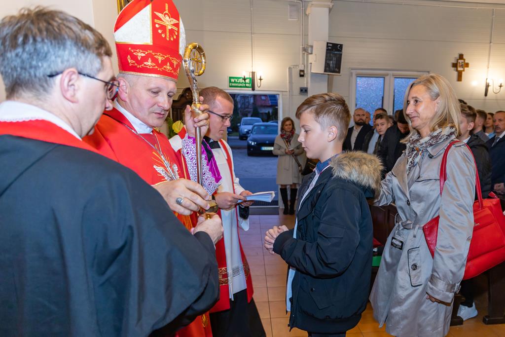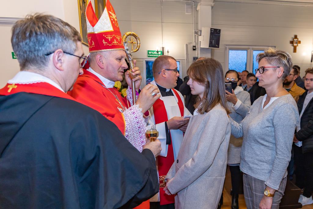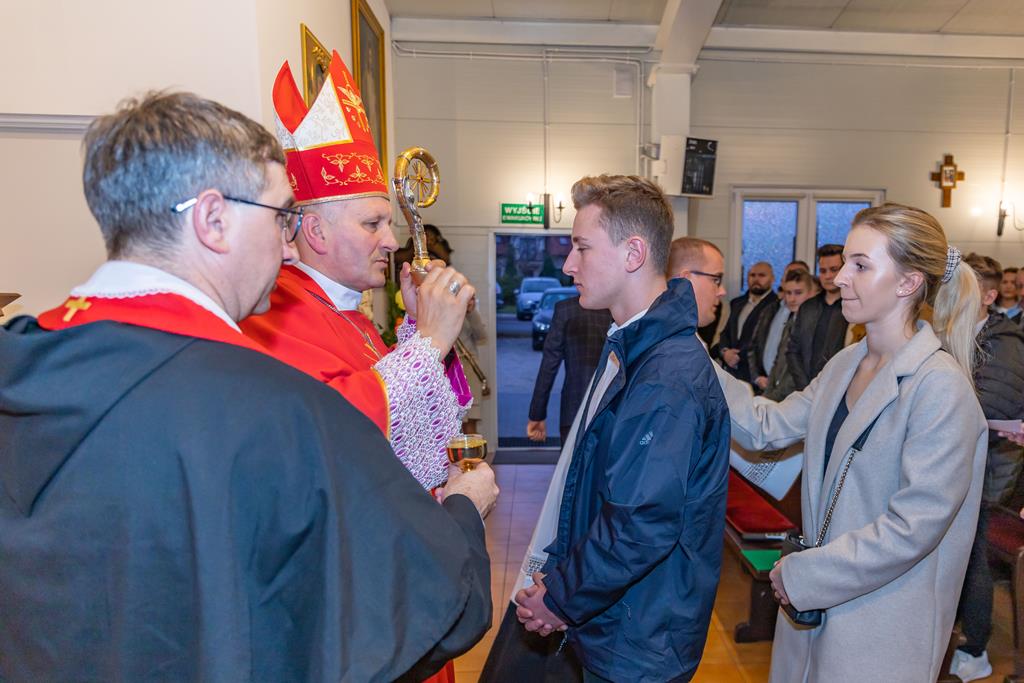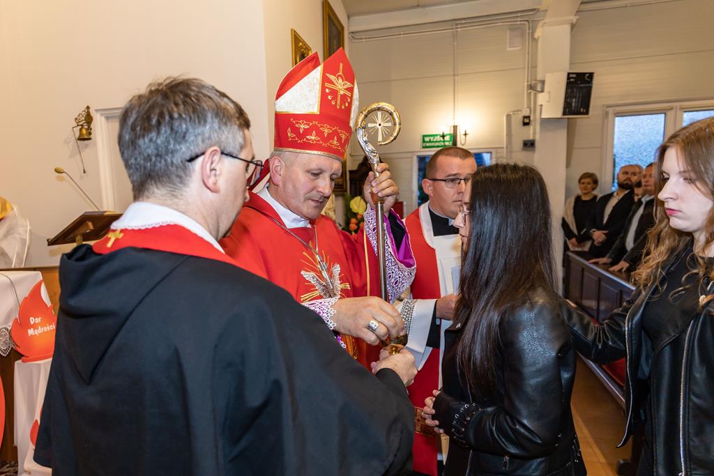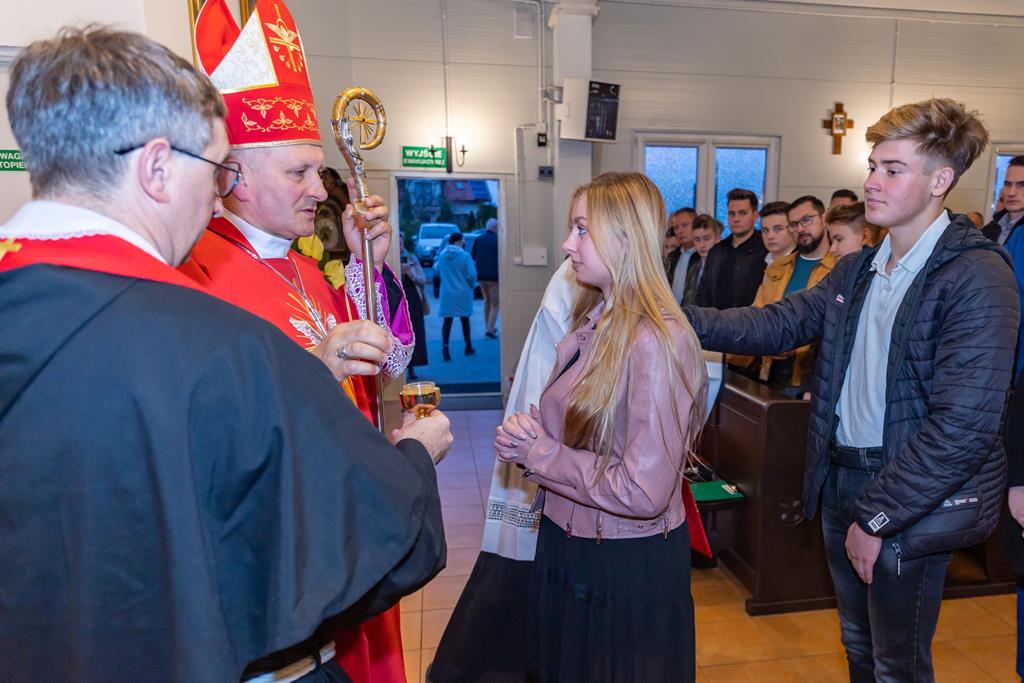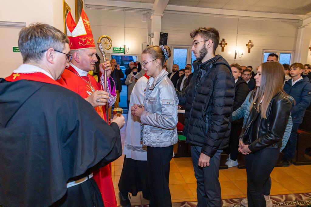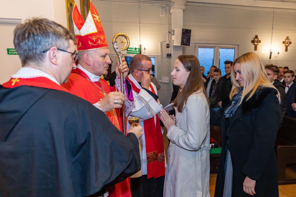 W środę 27 października podczas Mszy św. o godz. 17.00 ksiądz biskup Łukasz Buzun udzielił 65 młodym parafianom Sakramentu Bierzmowania. Bierzmowanie jest sakramentem, przez który już wcześniej ochrzczeni otrzymują dar samego Ducha Świętego, jeszcze bardziej dojrzale łączą się z Kościołem i mocniej są zobowiązani jako prawdziwi świadkowie Chrystusa do szerzenia i obrony wiary słowem i czynem.