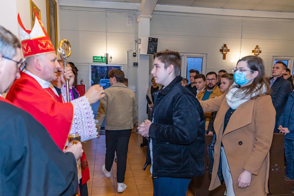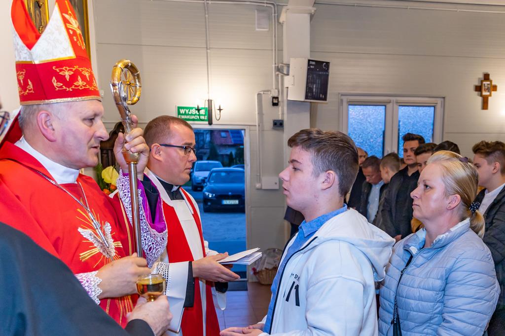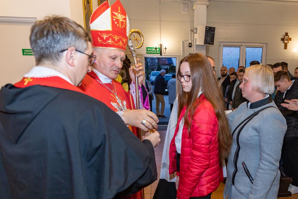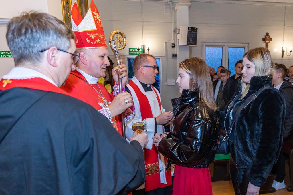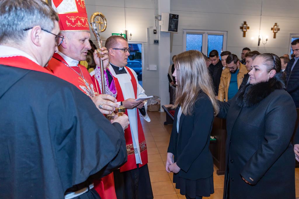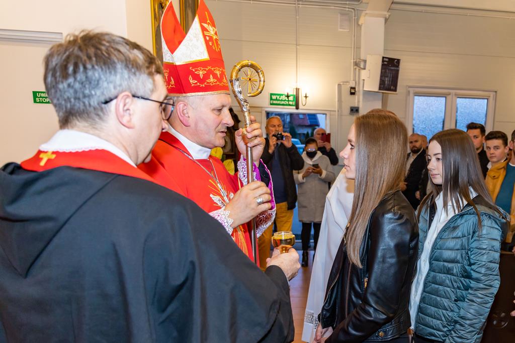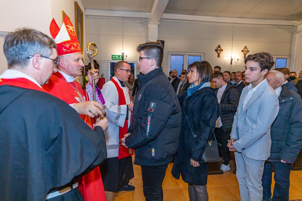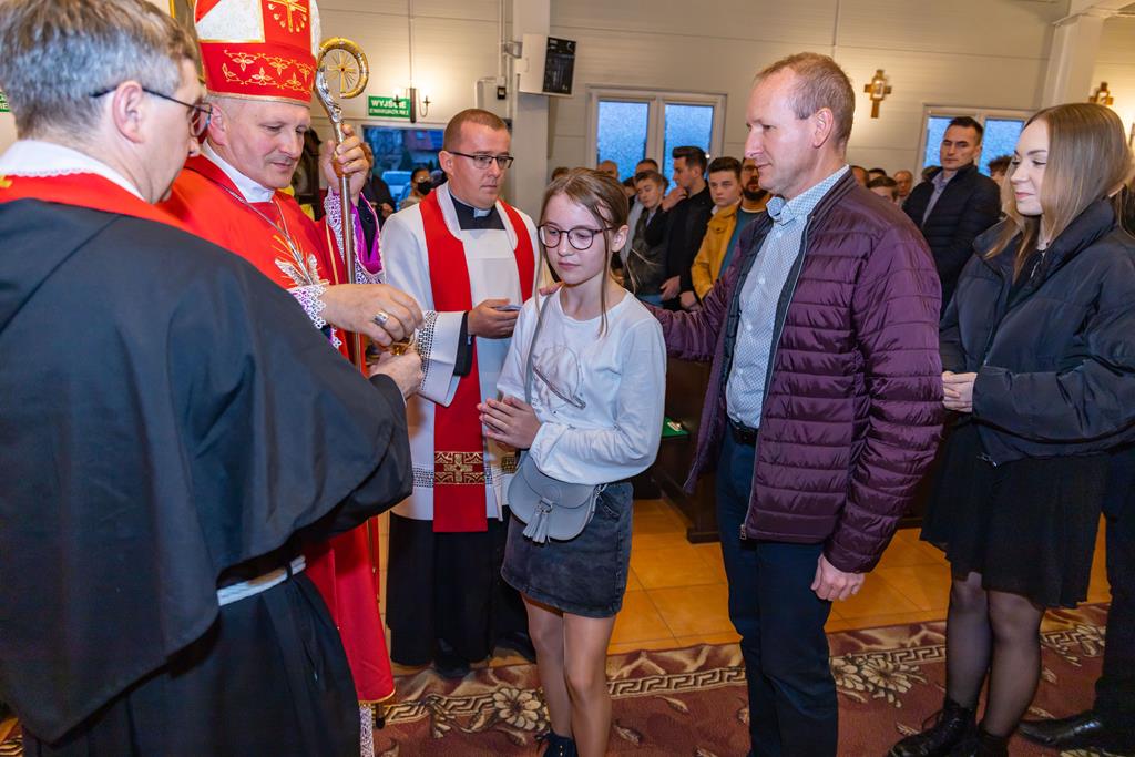 W środę 27 października podczas Mszy św. o godz. 17.00 ksiądz biskup Łukasz Buzun udzielił 65 młodym parafianom Sakramentu Bierzmowania. Bierzmowanie jest sakramentem, przez który już wcześniej ochrzczeni otrzymują dar samego Ducha Świętego, jeszcze bardziej dojrzale łączą się z Kościołem i mocniej są zobowiązani jako prawdziwi świadkowie Chrystusa do szerzenia i obrony wiary słowem i czynem.