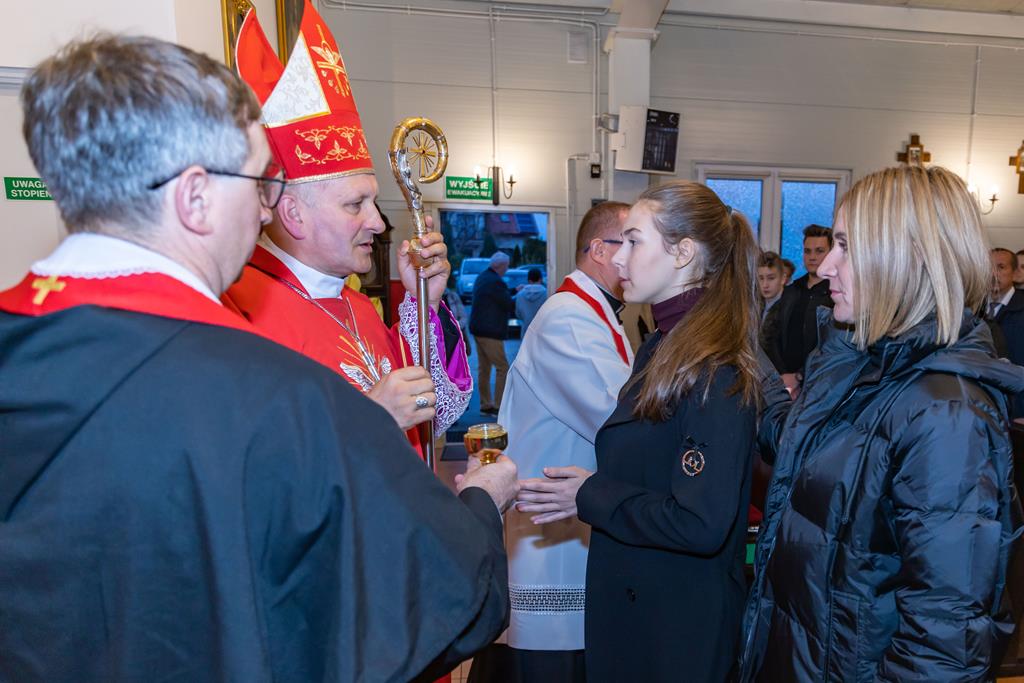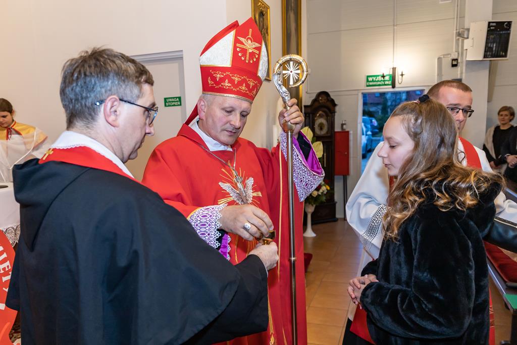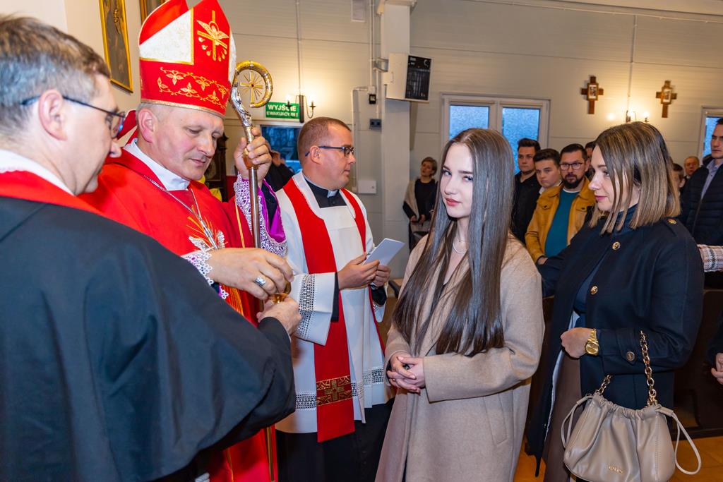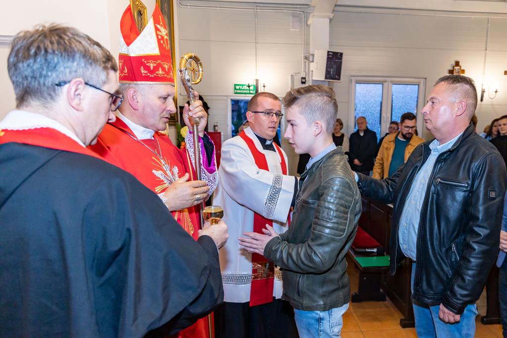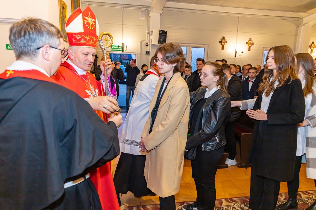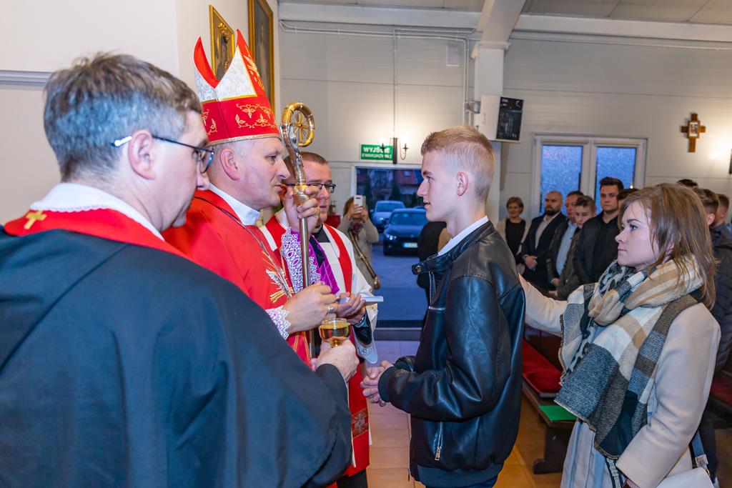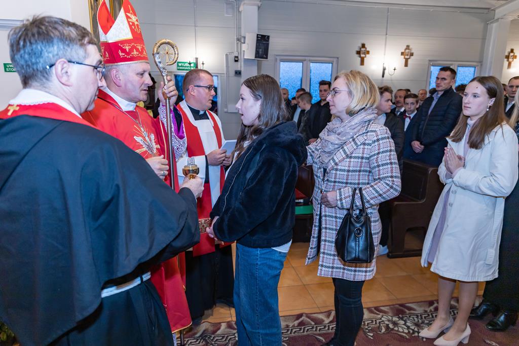 W środę 27 października podczas Mszy św. o godz. 17.00 ksiądz biskup Łukasz Buzun udzielił 65 młodym parafianom Sakramentu Bierzmowania. Bierzmowanie jest sakramentem, przez który już wcześniej ochrzczeni otrzymują dar samego Ducha Świętego, jeszcze bardziej dojrzale łączą się z Kościołem i mocniej są zobowiązani jako prawdziwi świadkowie Chrystusa do szerzenia i obrony wiary słowem i czynem.