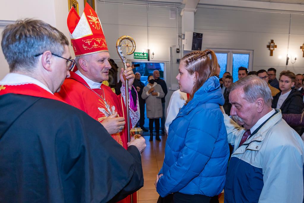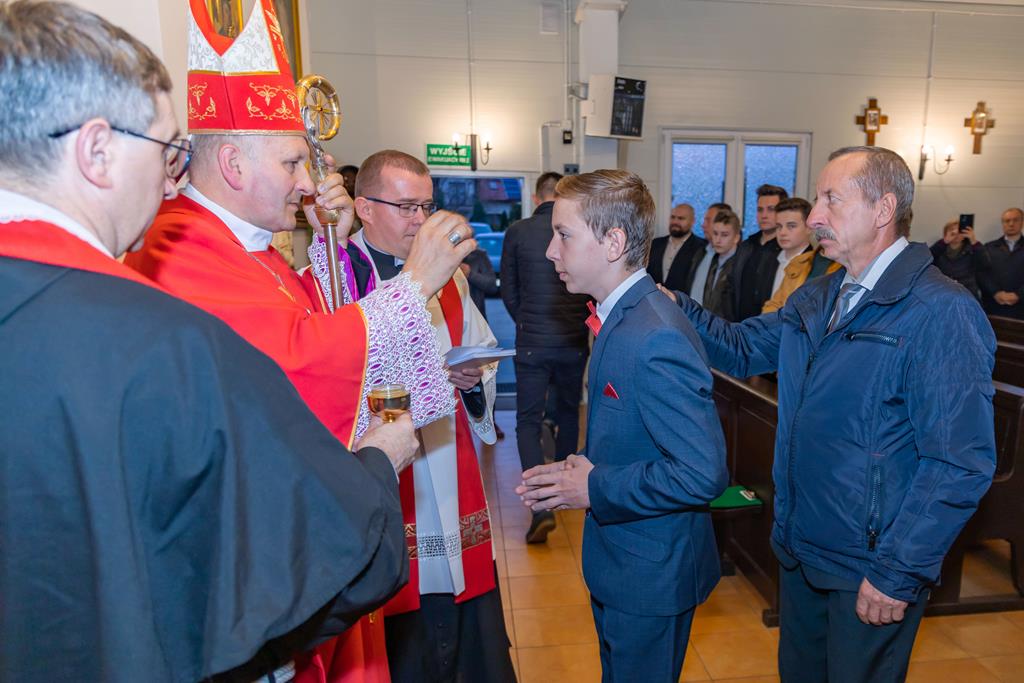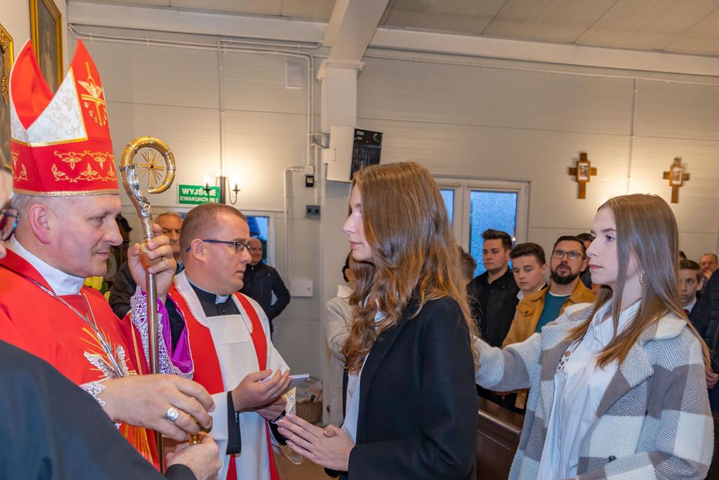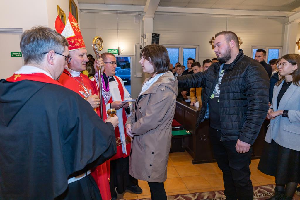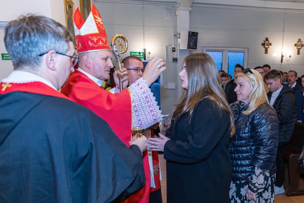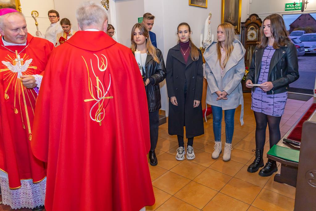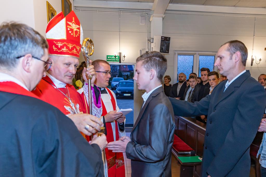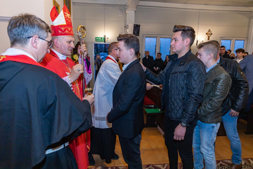 W środę 27 października podczas Mszy św. o godz. 17.00 ksiądz biskup Łukasz Buzun udzielił 65 młodym parafianom Sakramentu Bierzmowania. Bierzmowanie jest sakramentem, przez który już wcześniej ochrzczeni otrzymują dar samego Ducha Świętego, jeszcze bardziej dojrzale łączą się z Kościołem i mocniej są zobowiązani jako prawdziwi świadkowie Chrystusa do szerzenia i obrony wiary słowem i czynem.