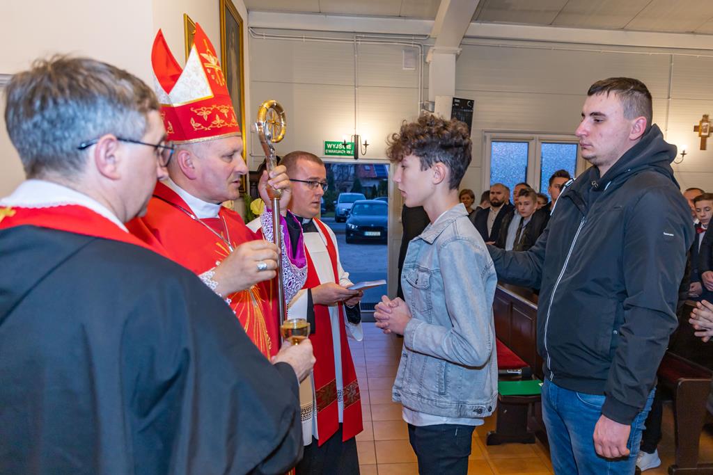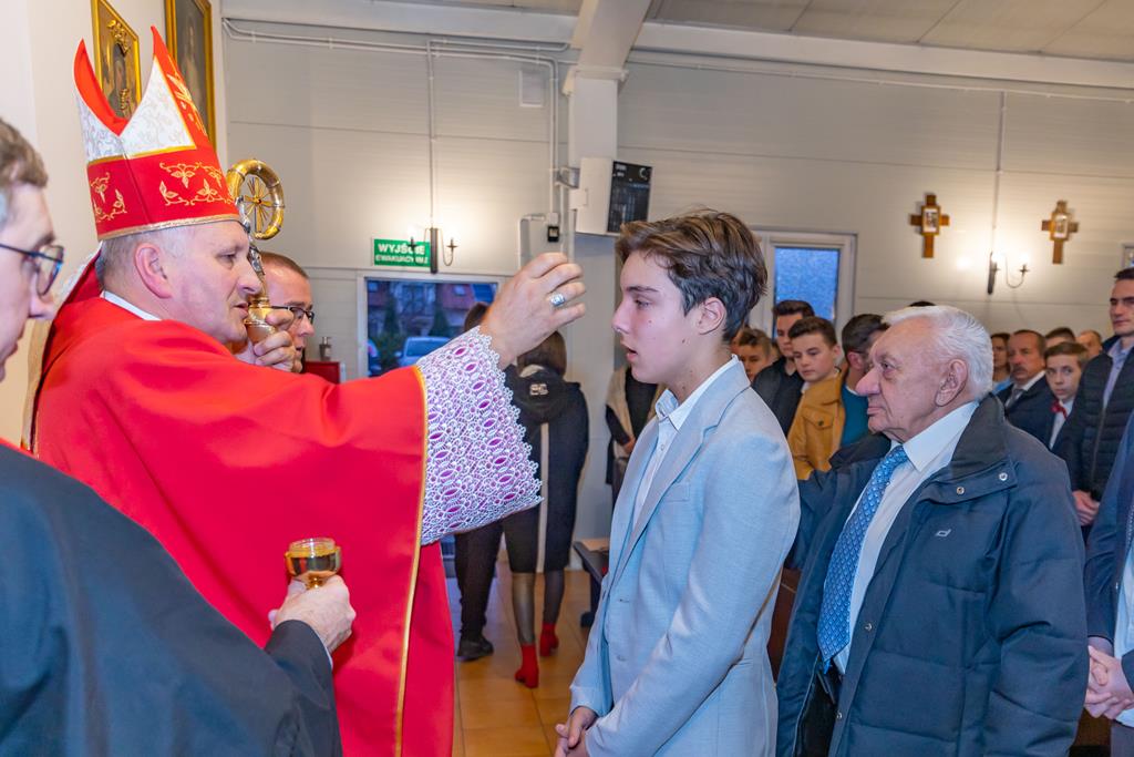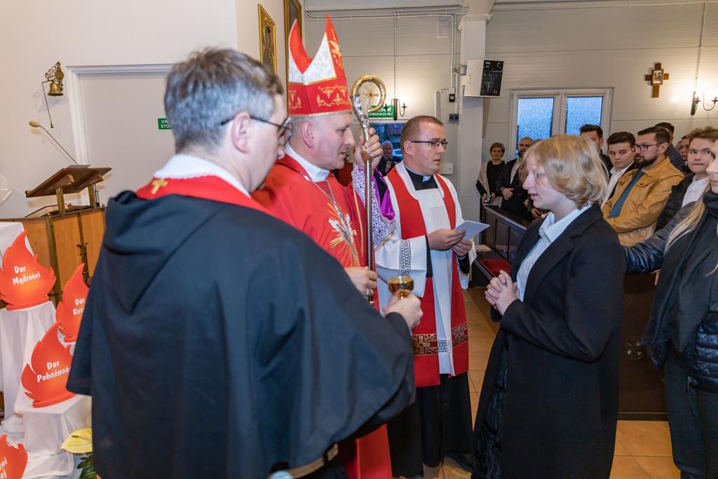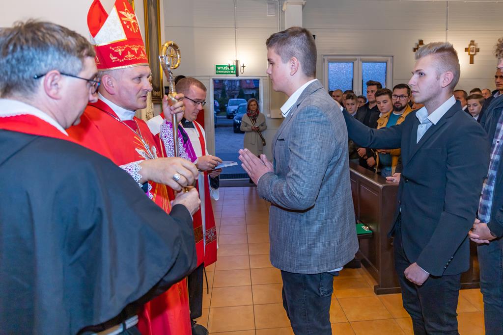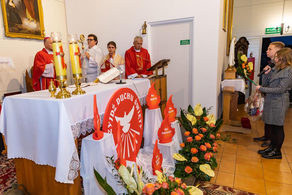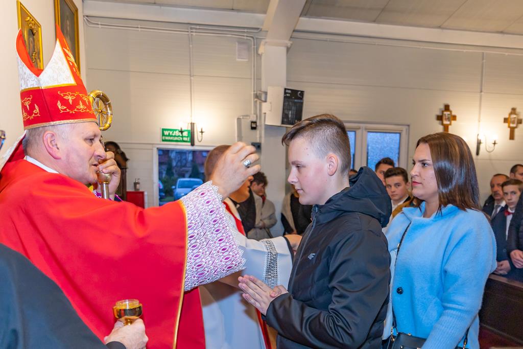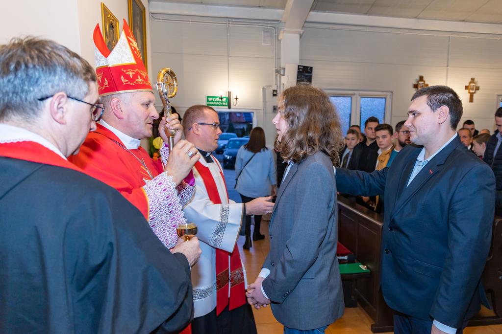 W środę 27 października podczas Mszy św. o godz. 17.00 ksiądz biskup Łukasz Buzun udzielił 65 młodym parafianom Sakramentu Bierzmowania. Bierzmowanie jest sakramentem, przez który już wcześniej ochrzczeni otrzymują dar samego Ducha Świętego, jeszcze bardziej dojrzale łączą się z Kościołem i mocniej są zobowiązani jako prawdziwi świadkowie Chrystusa do szerzenia i obrony wiary słowem i czynem.