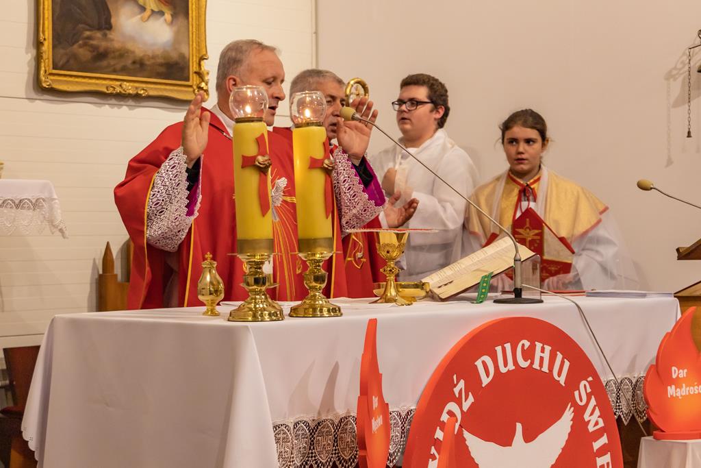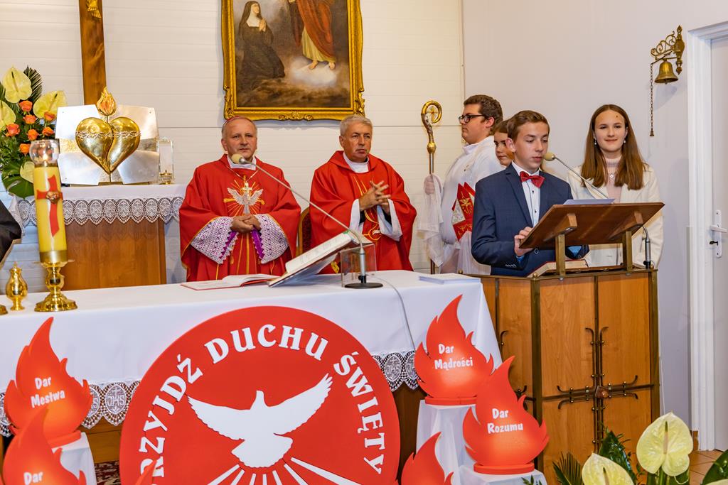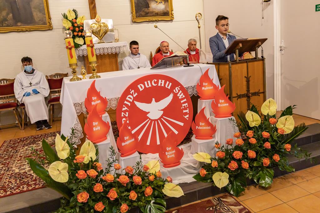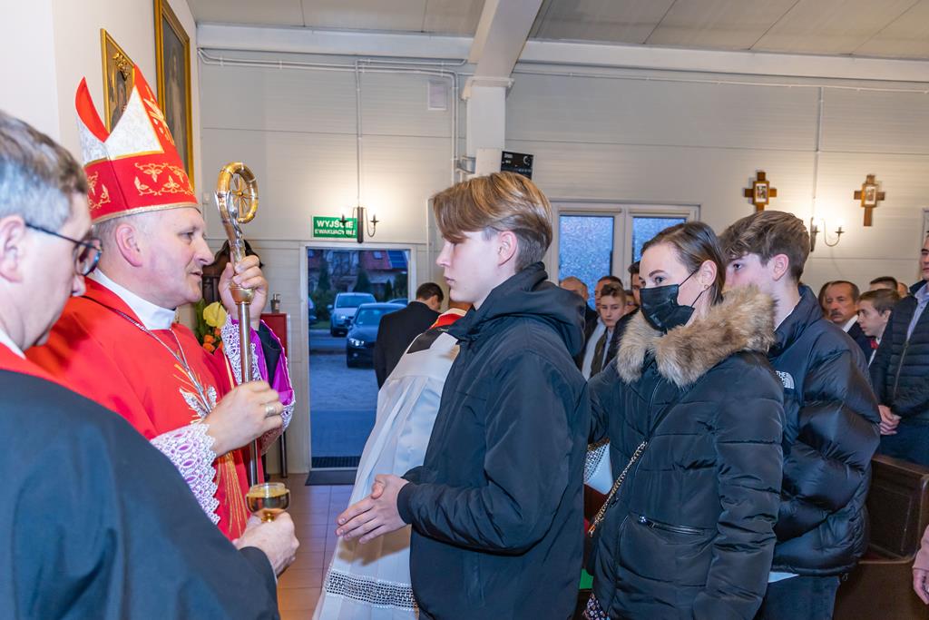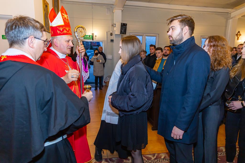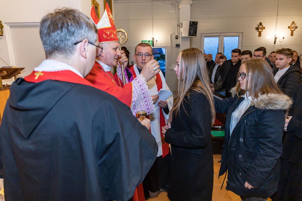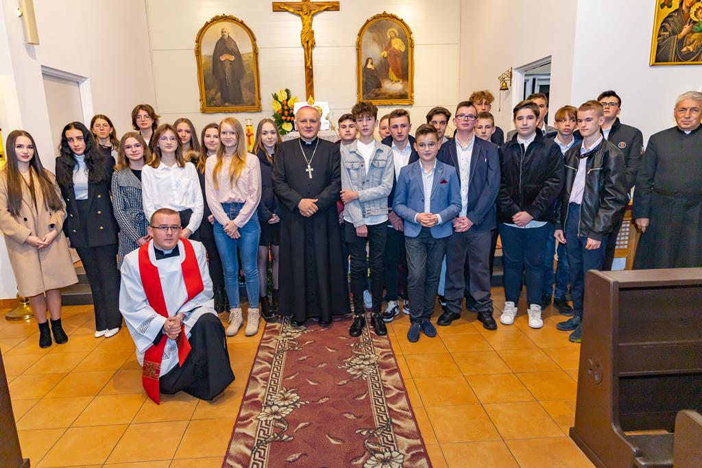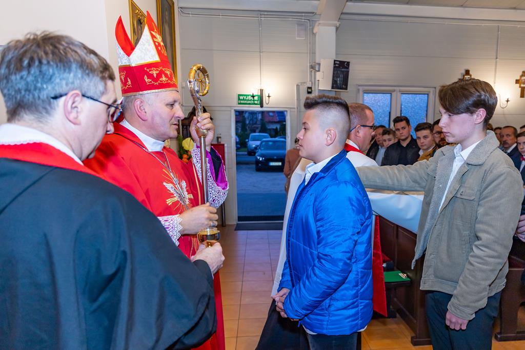 W środę 27 października podczas Mszy św. o godz. 17.00 ksiądz biskup Łukasz Buzun udzielił 65 młodym parafianom Sakramentu Bierzmowania. Bierzmowanie jest sakramentem, przez który już wcześniej ochrzczeni otrzymują dar samego Ducha Świętego, jeszcze bardziej dojrzale łączą się z Kościołem i mocniej są zobowiązani jako prawdziwi świadkowie Chrystusa do szerzenia i obrony wiary słowem i czynem.