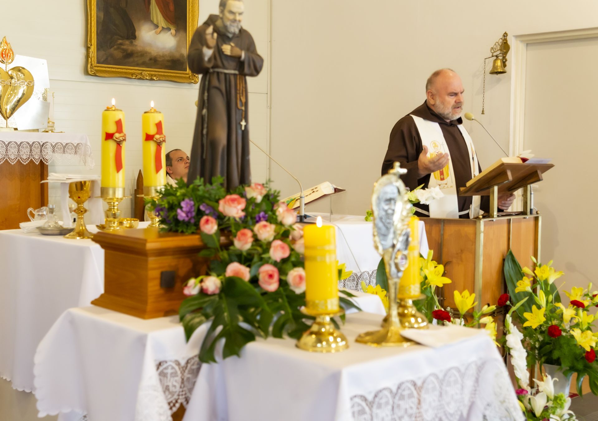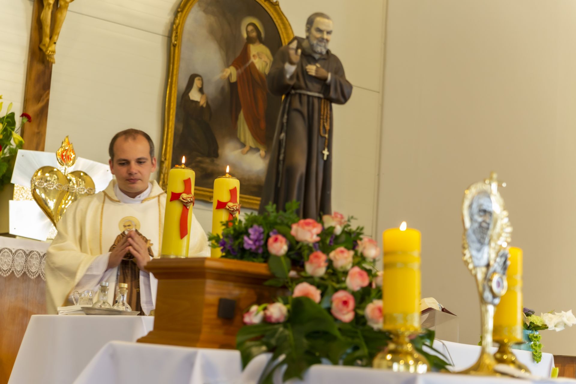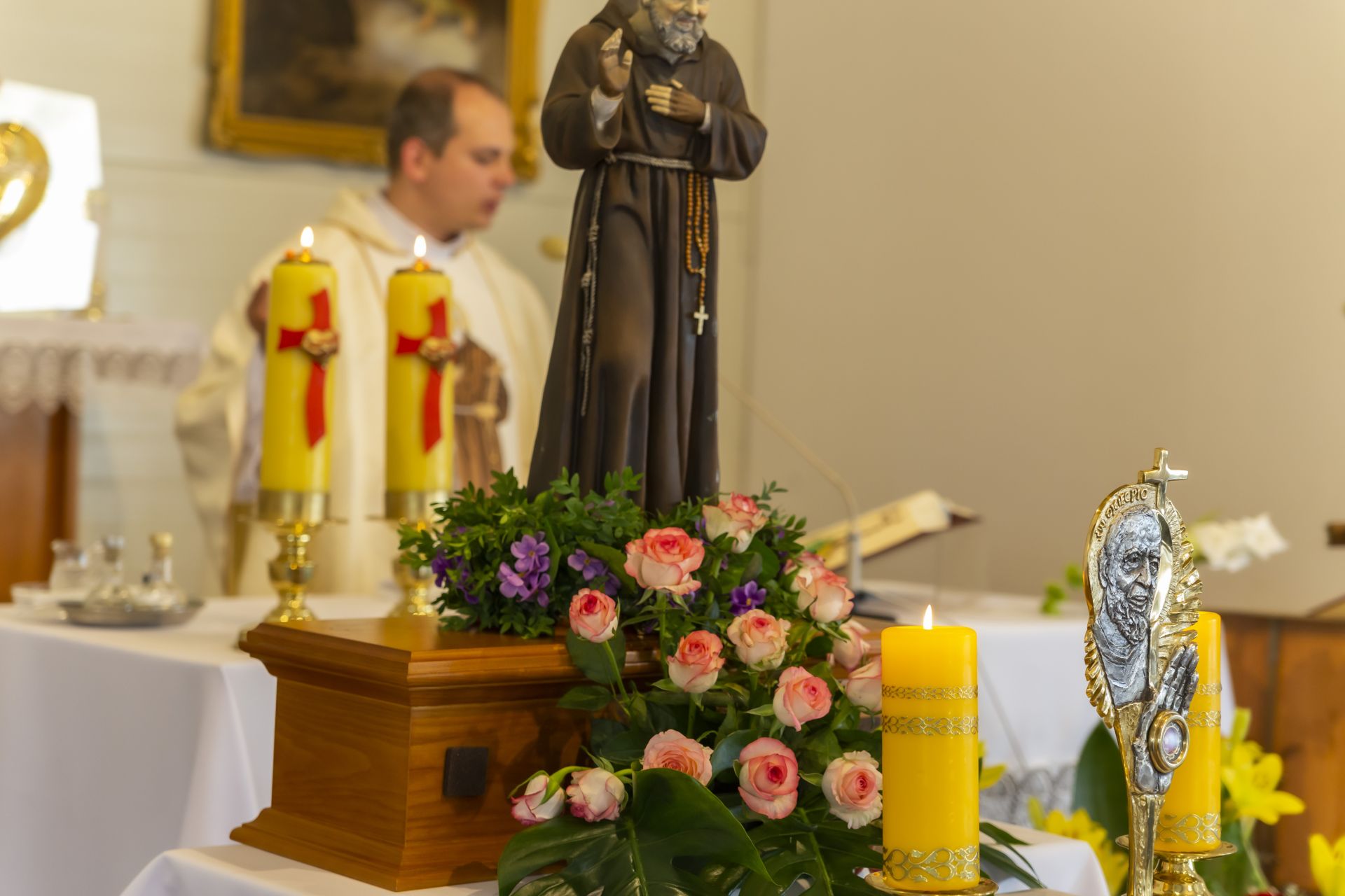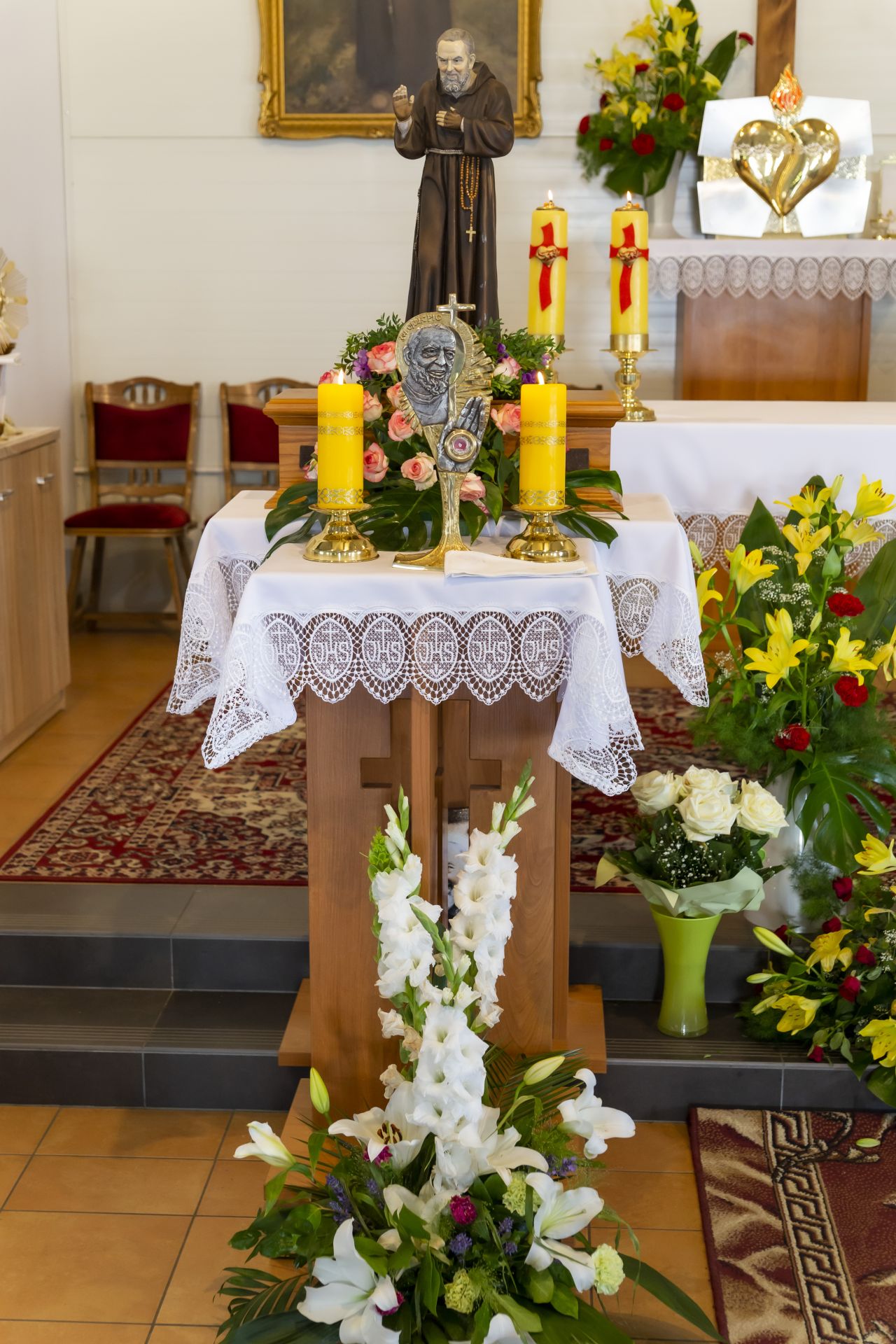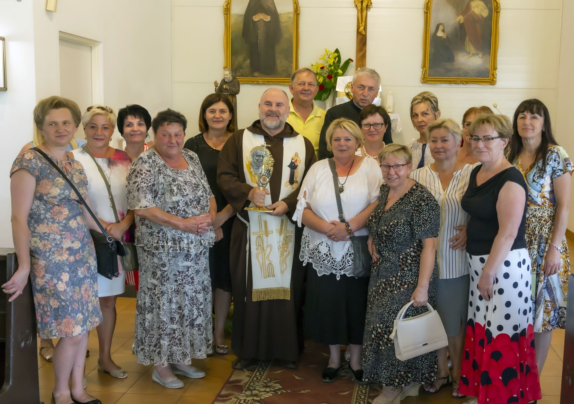W niedzielę 23 czerwca uroczyście wprowadzono do naszej kaplicy relikwie św. Ojca Pio, dokonał tego krajowy duszpasterz grup modlitewnych Ojca Pio, kapucyn ojciec Roman Rusek. W homiliach głoszonych podczas wszystkich Mszy św. przybliżył on sylwetkę Świętego, a po Mszach św. parafianie mogli oddać cześć relikwiom