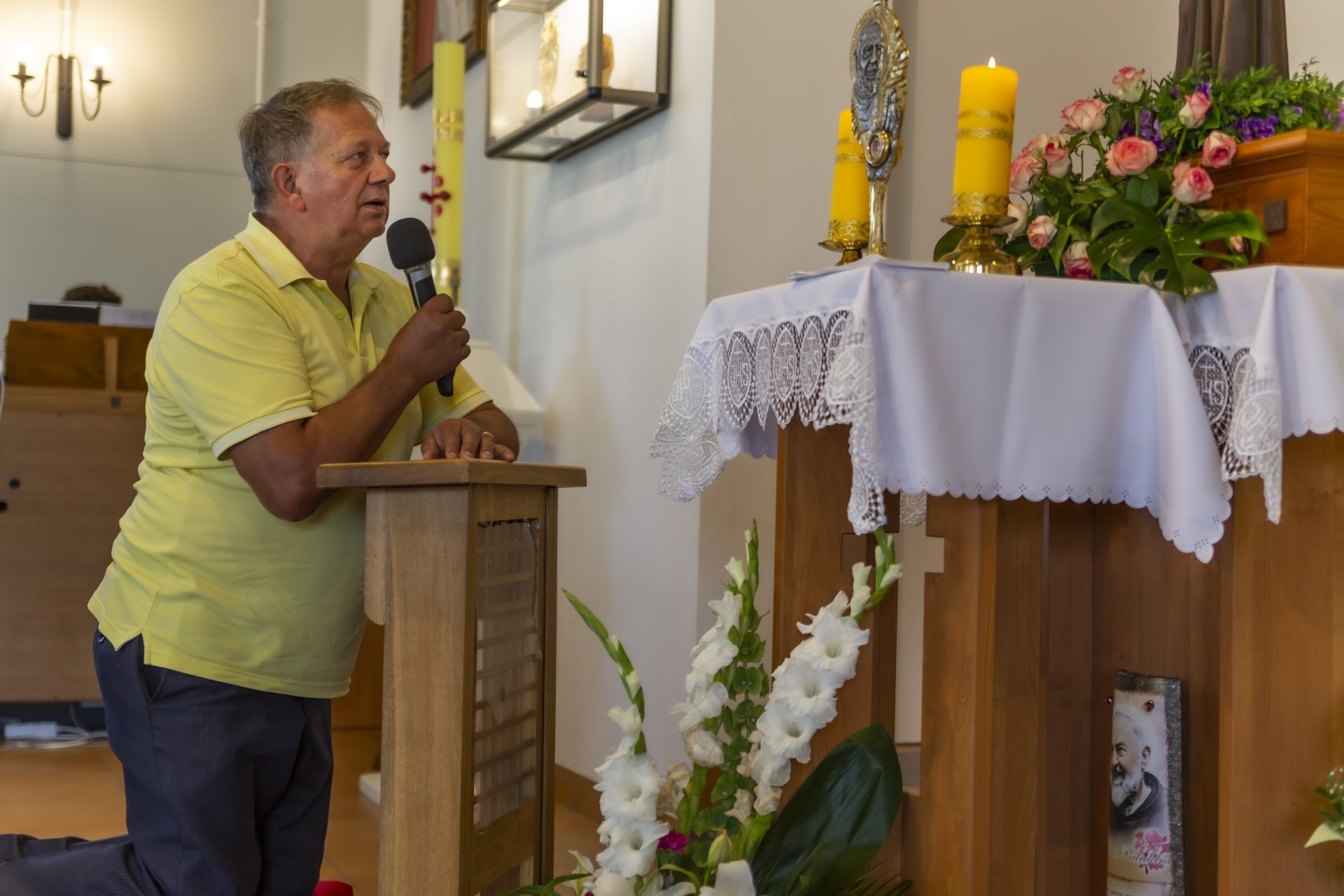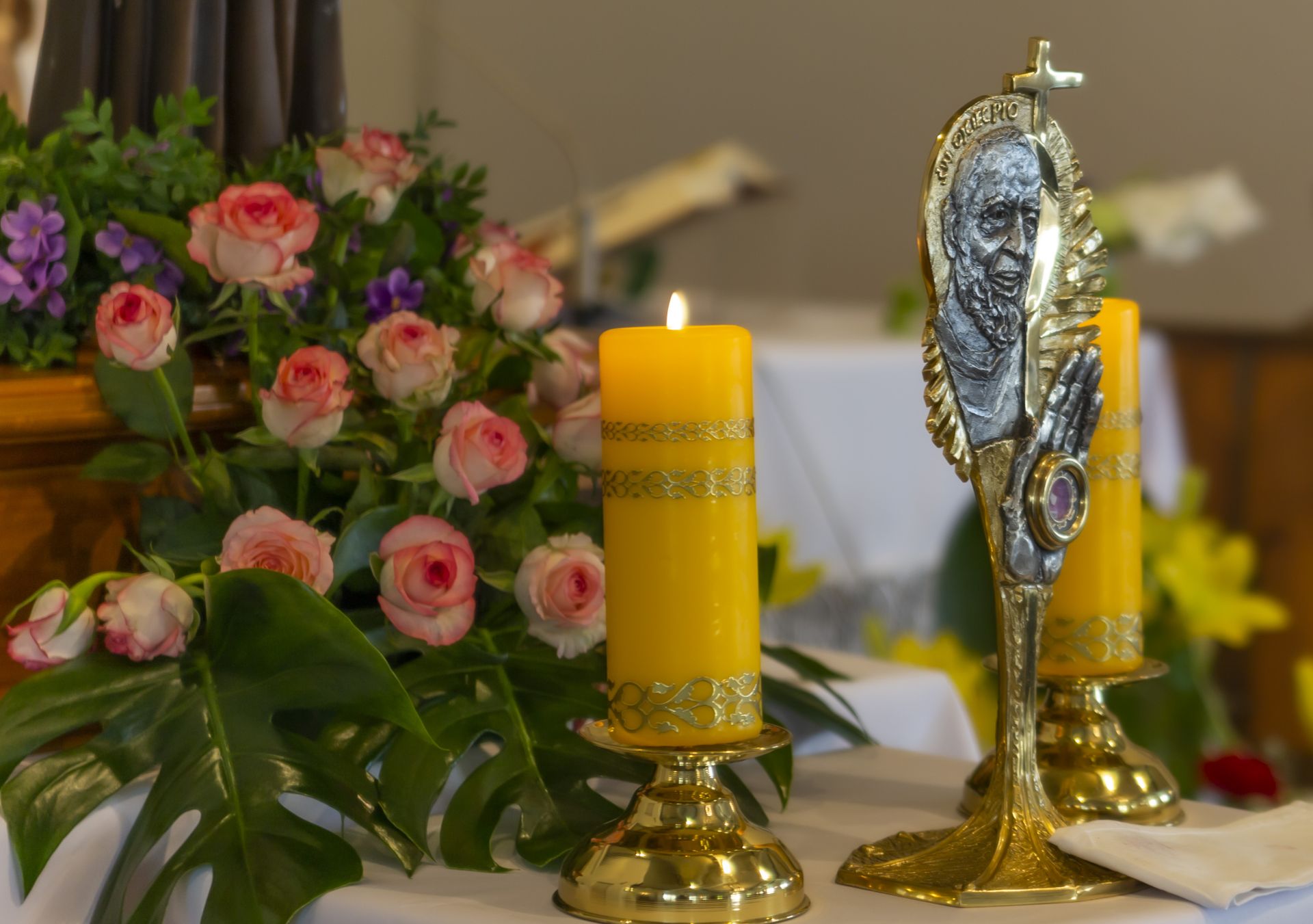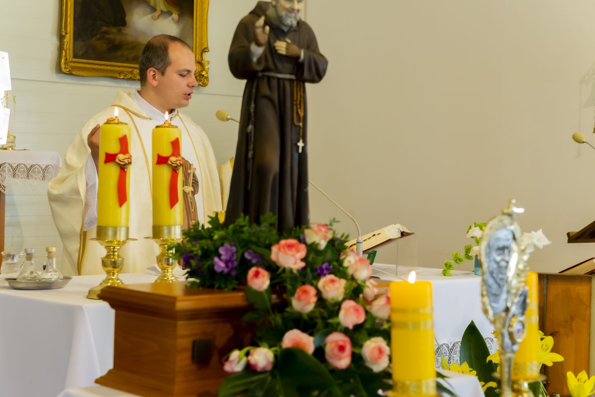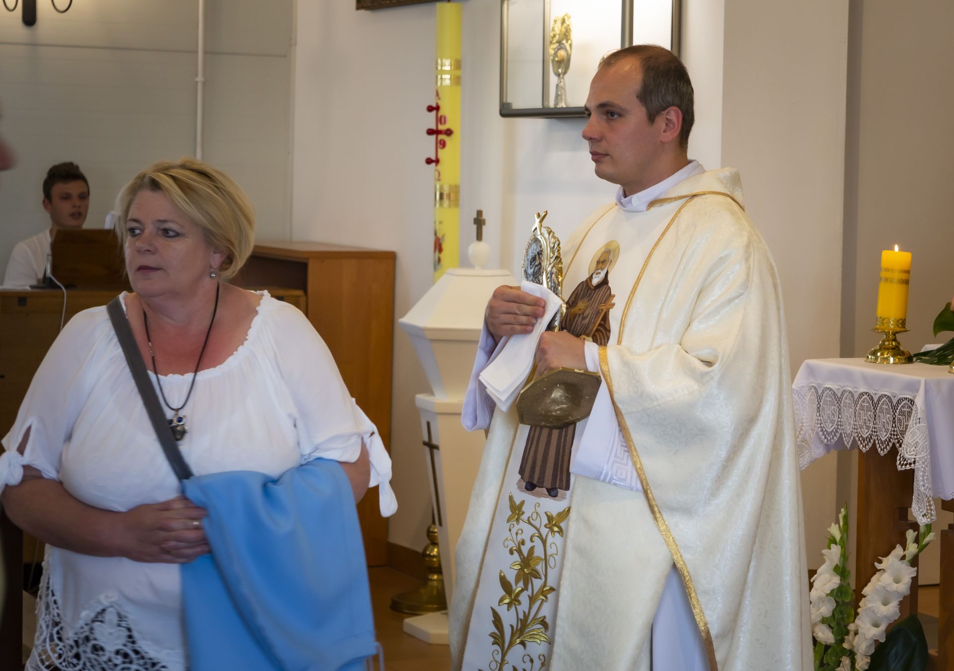 W niedzielę 23 czerwca uroczyście wprowadzono do naszej kaplicy relikwie św. Ojca Pio, dokonał tego krajowy duszpasterz grup modlitewnych Ojca Pio, kapucyn ojciec Roman Rusek. W homiliach głoszonych podczas wszystkich Mszy św. przybliżył on sylwetkę Świętego, a po Mszach św. parafianie mogli oddać cześć relikwiom