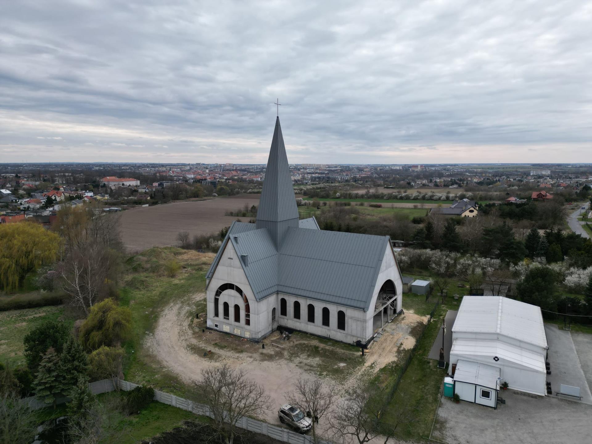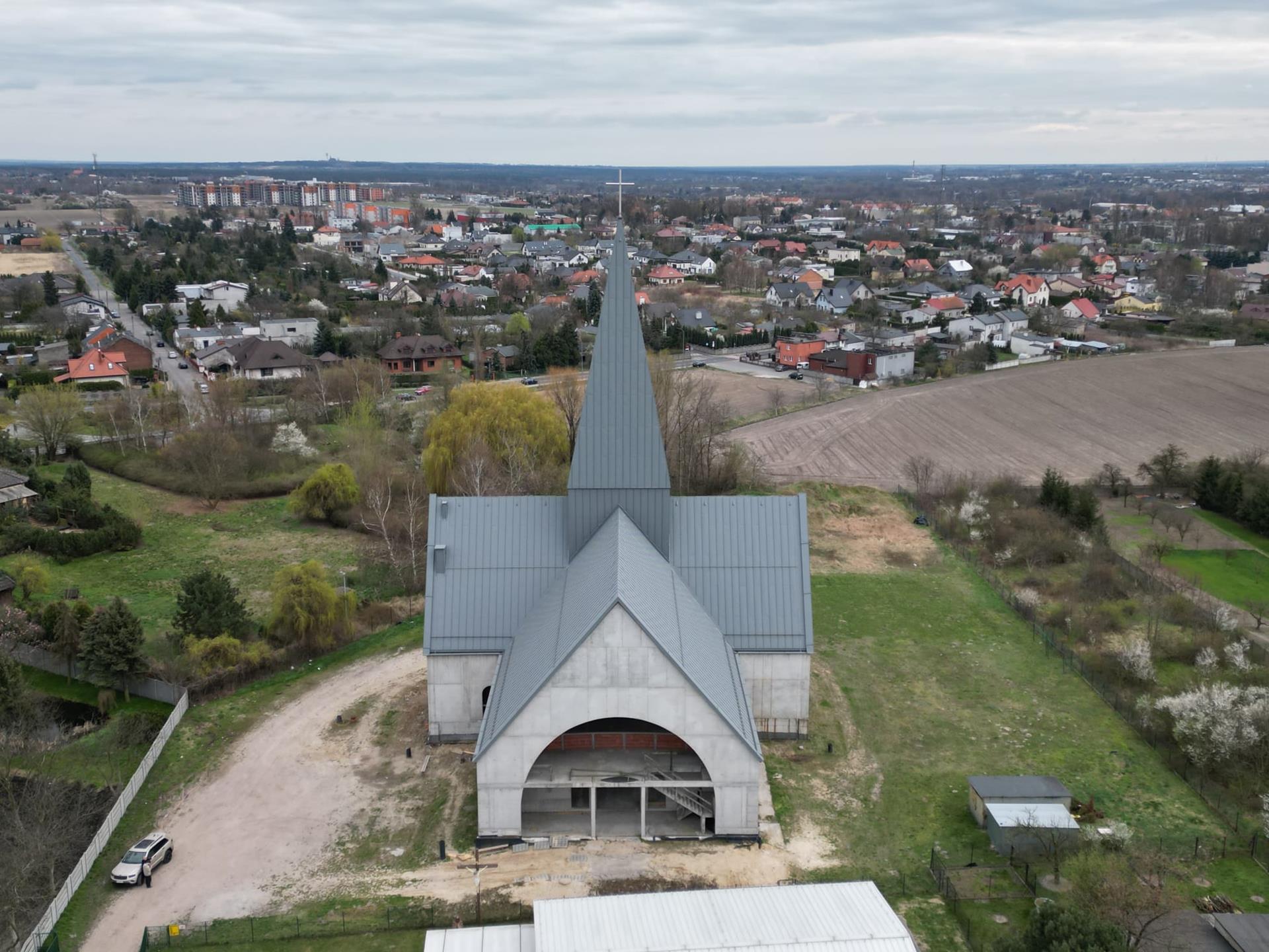 W poniedziałek 8 kwietnia 2025 r. zostały zakończone prace związane z montażem drewnianej konstrukcji sufitu oraz dachu i wieży naszego kościoła.